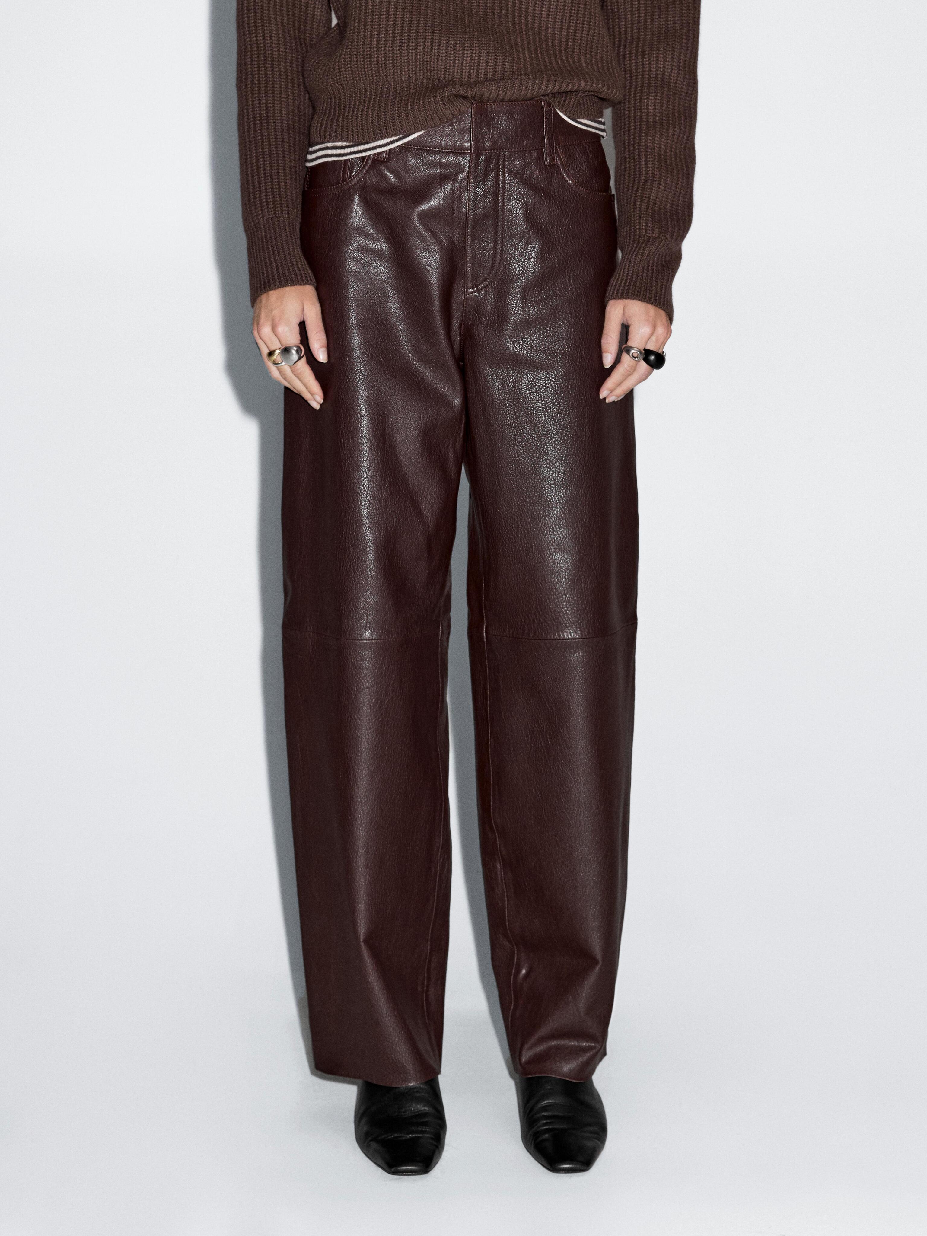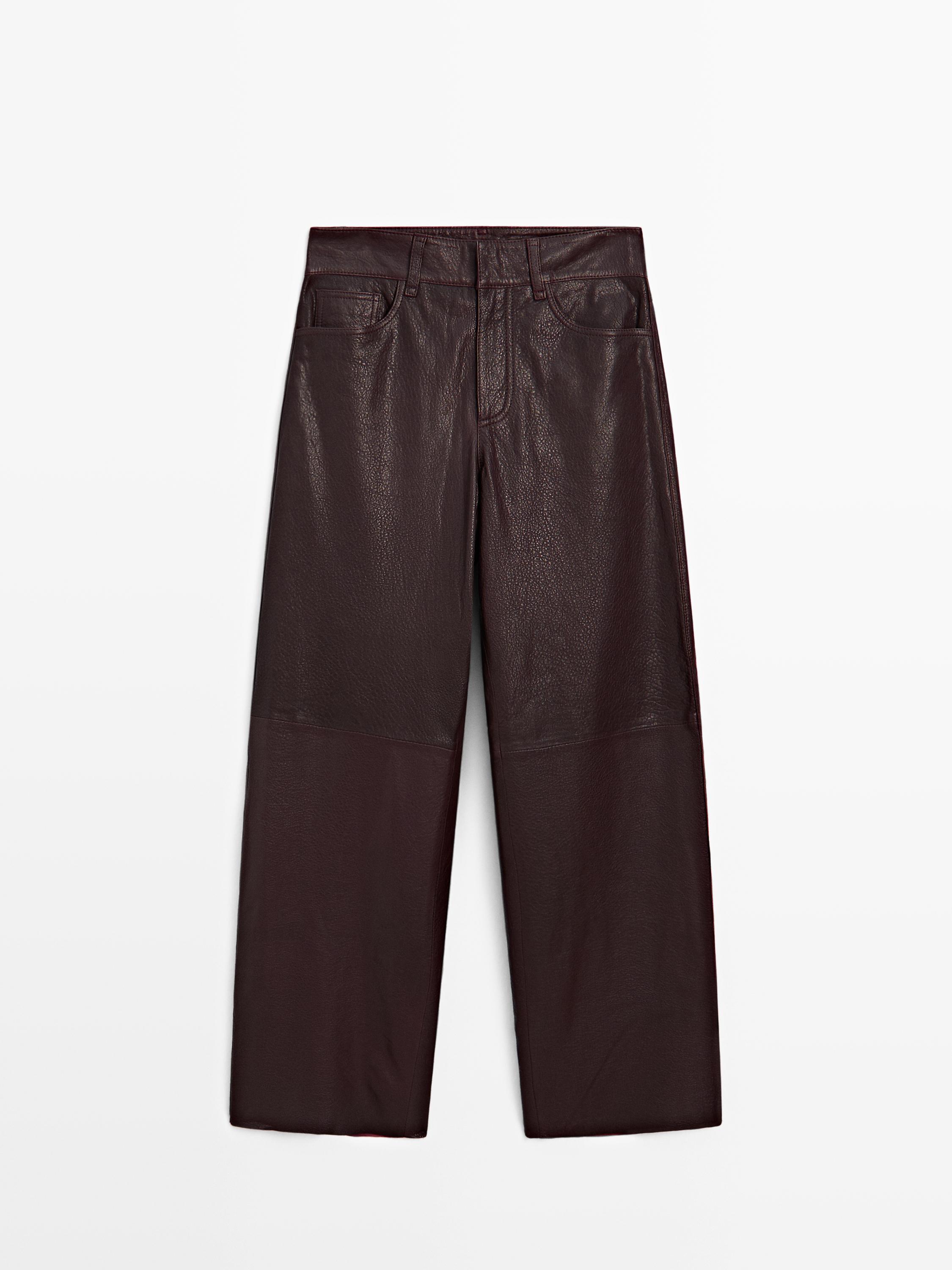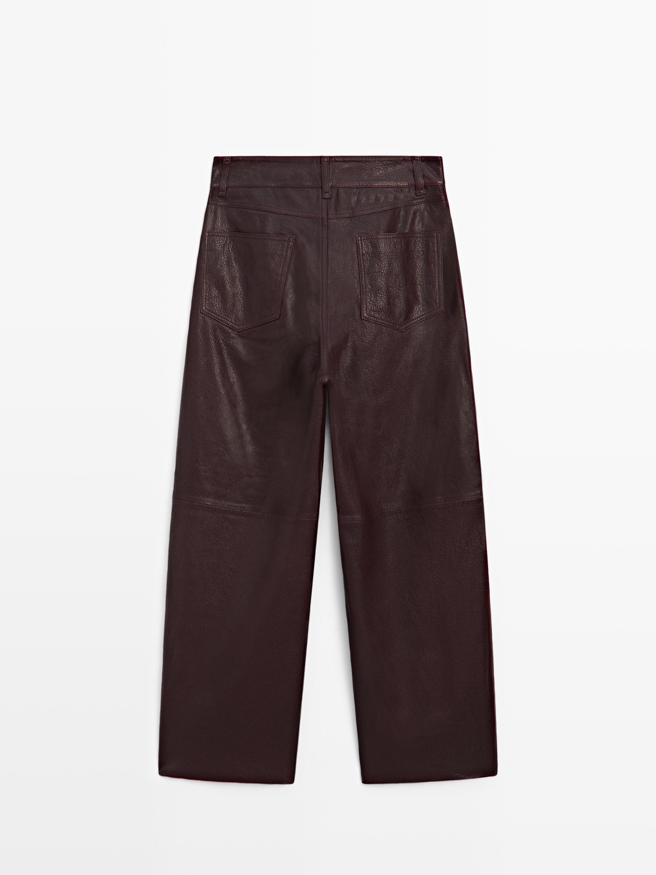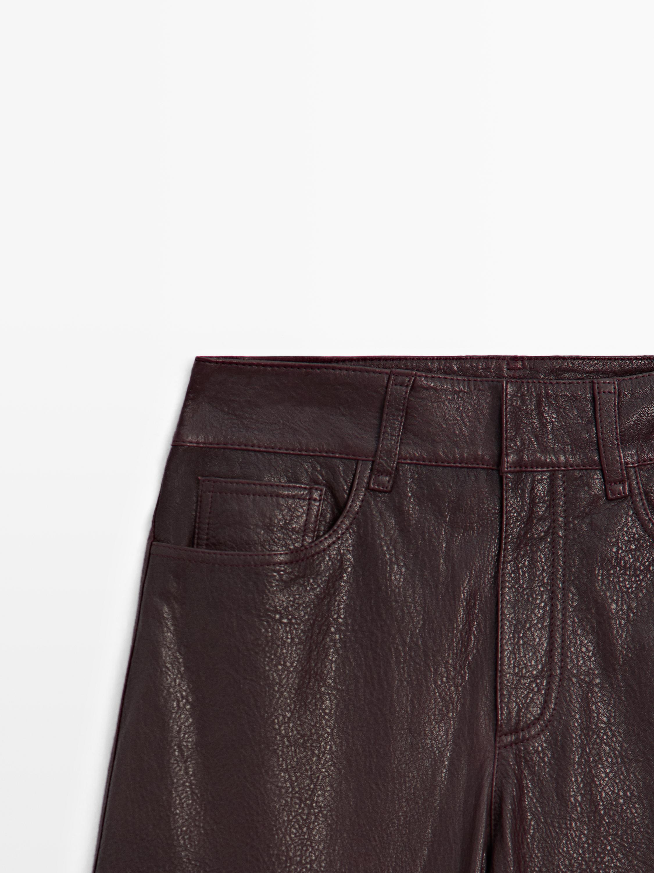 Massimo Dutti Брюки из овчины с отделкой наппа, коричневый