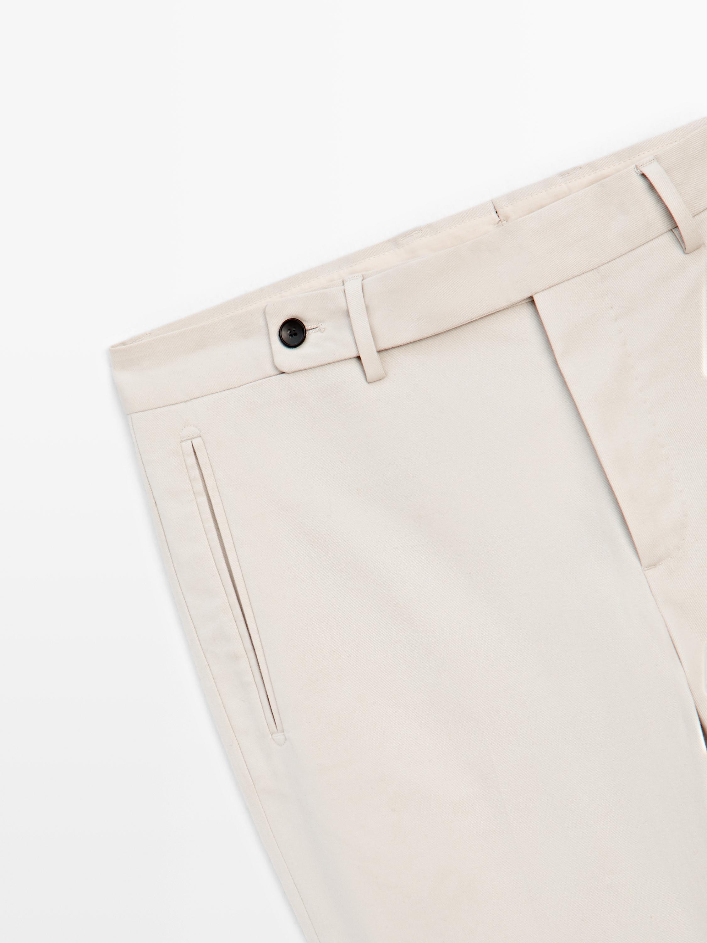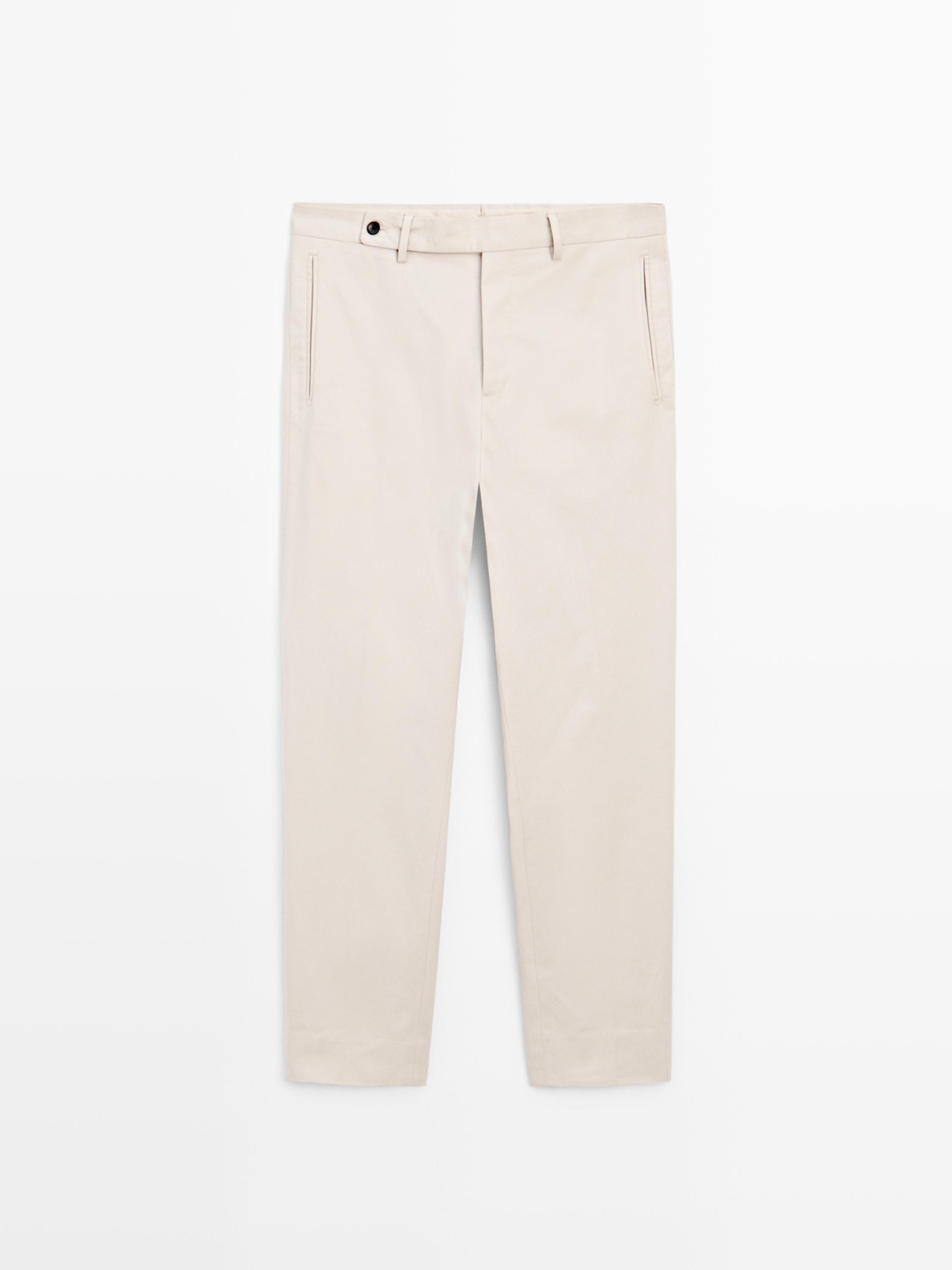 Massimo Dutti Брюки из смесовой хлопковой саржи, песочный