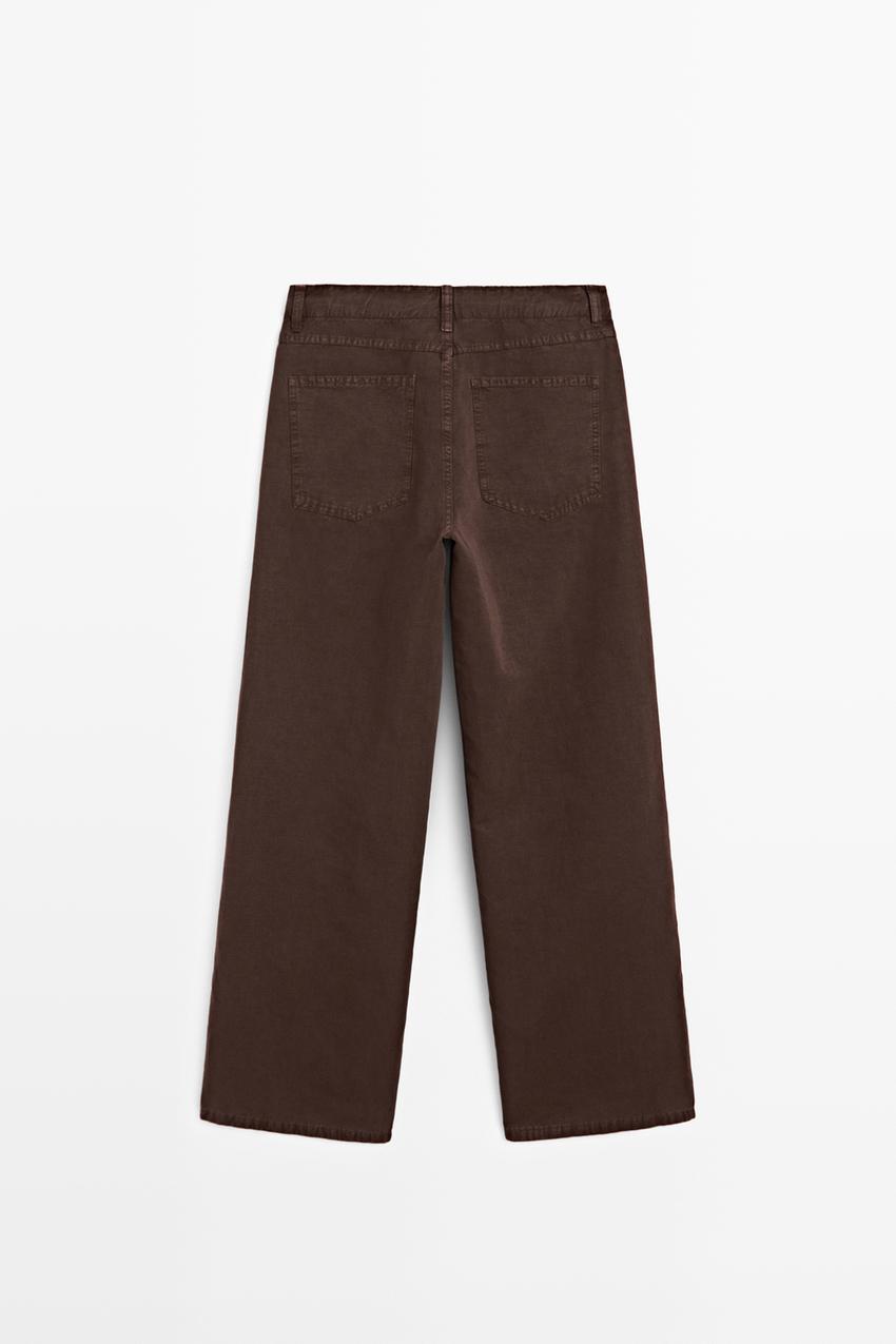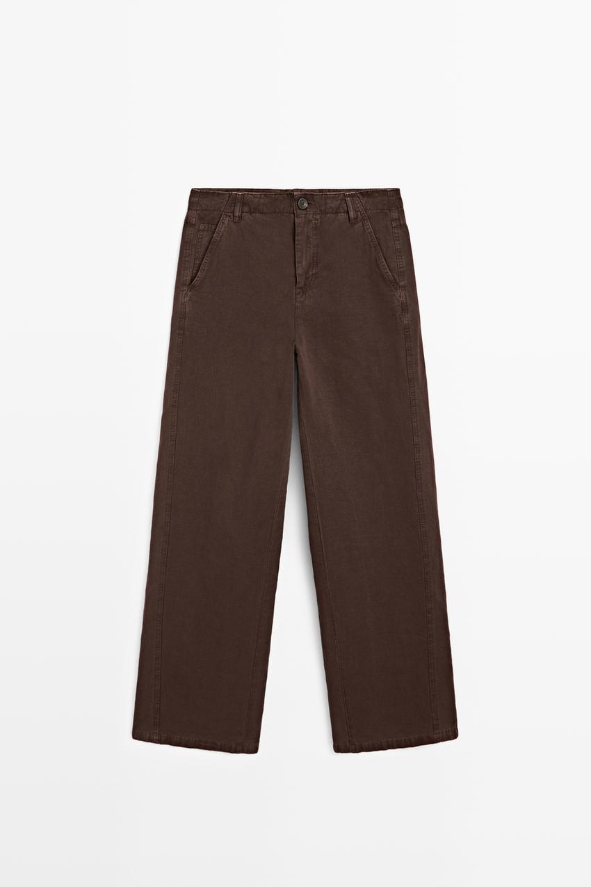 Massimo Dutti Брюки из смесовой льняной ткани с декоративной строчкой, шоколадный