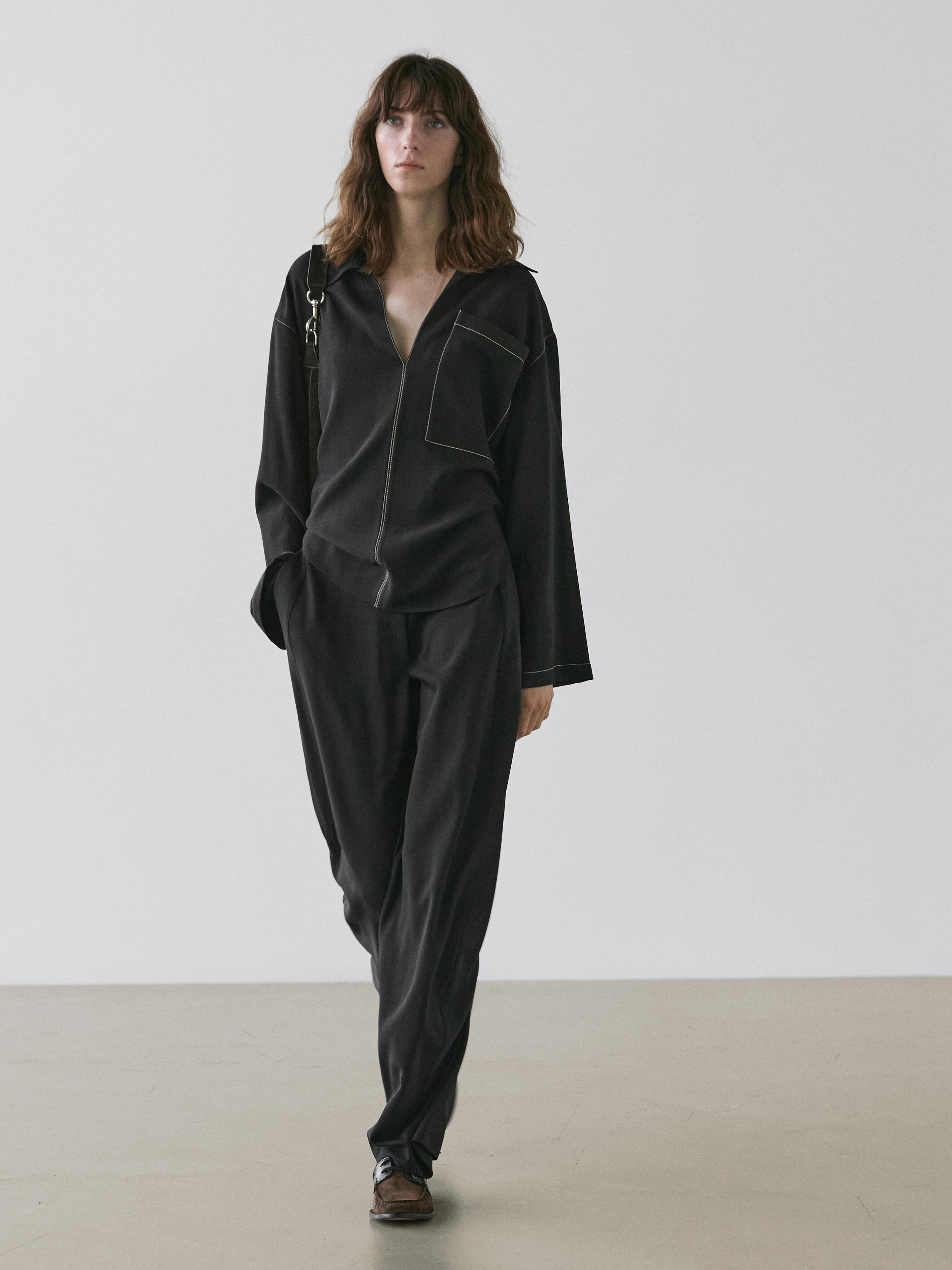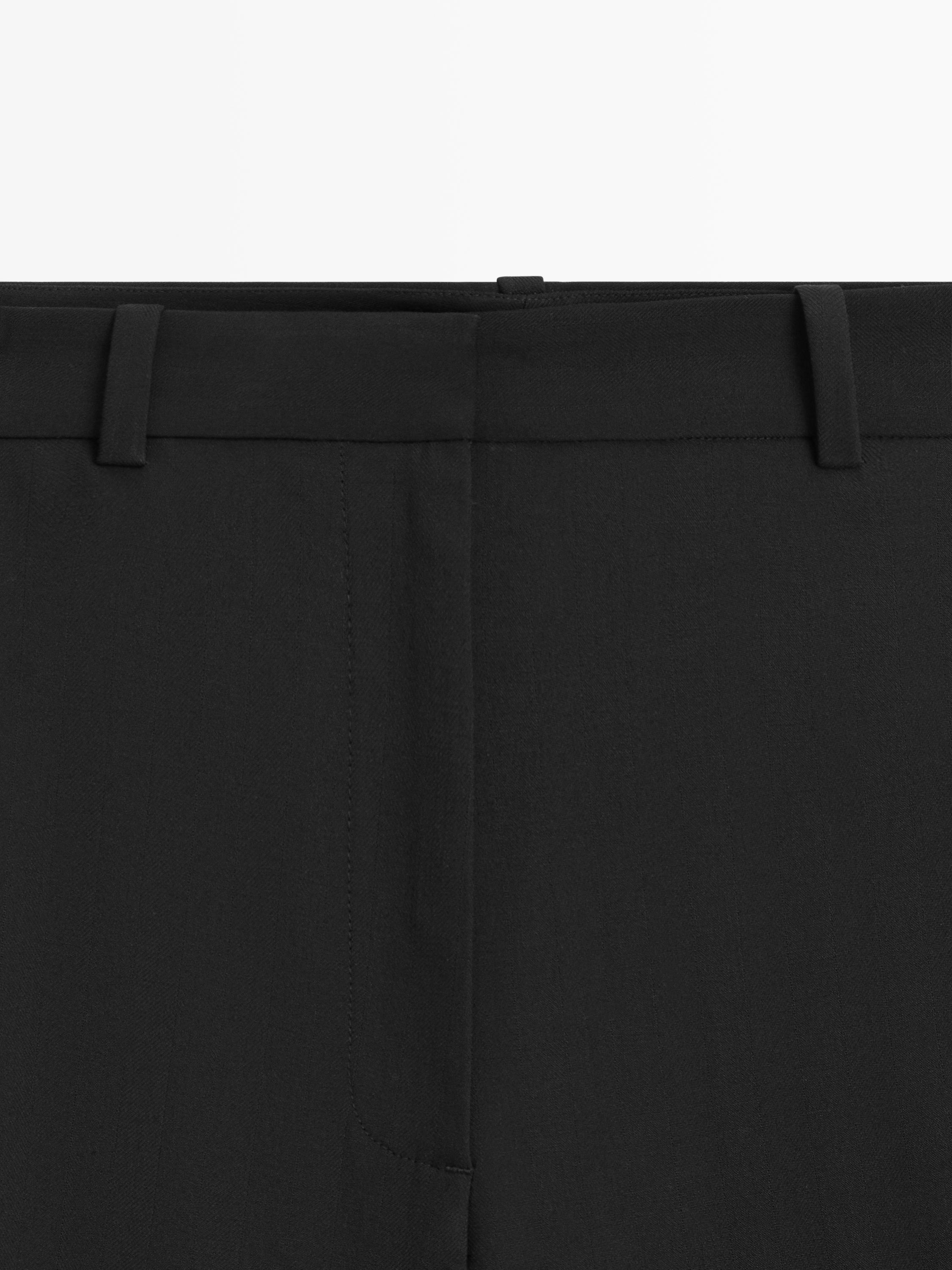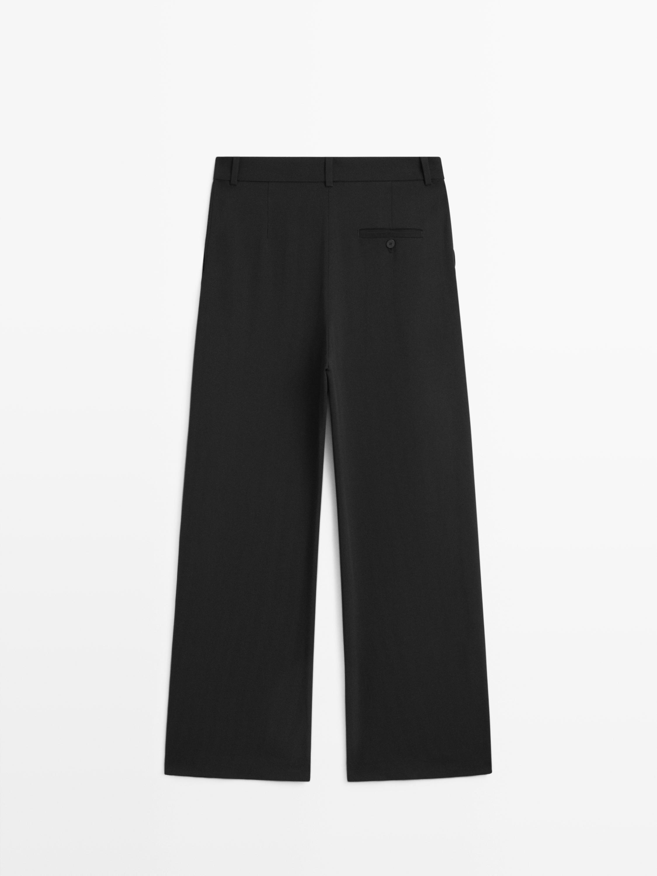 Massimo Dutti Брюки из смесовой шерсти с декоративной строчкой, черный
