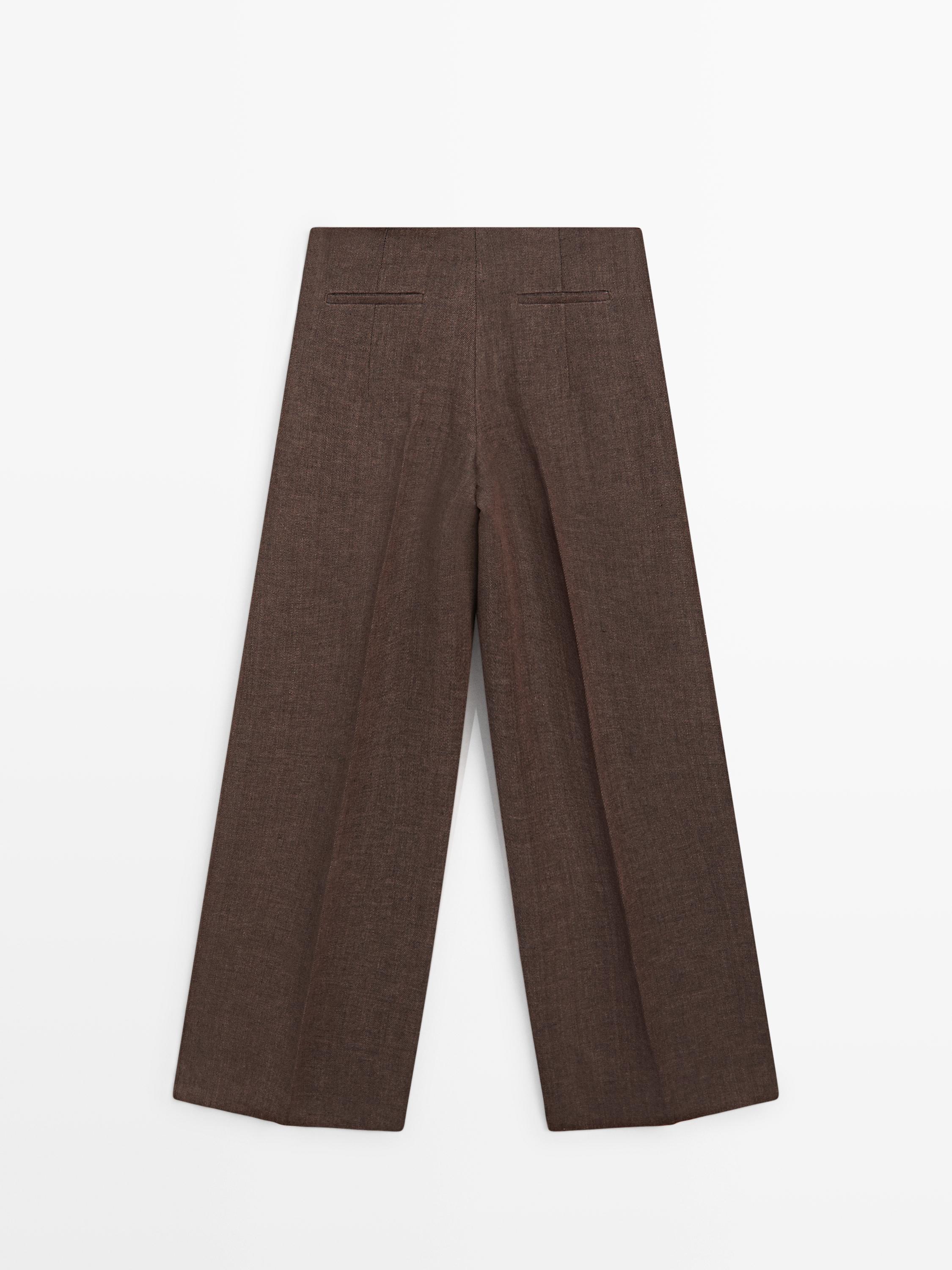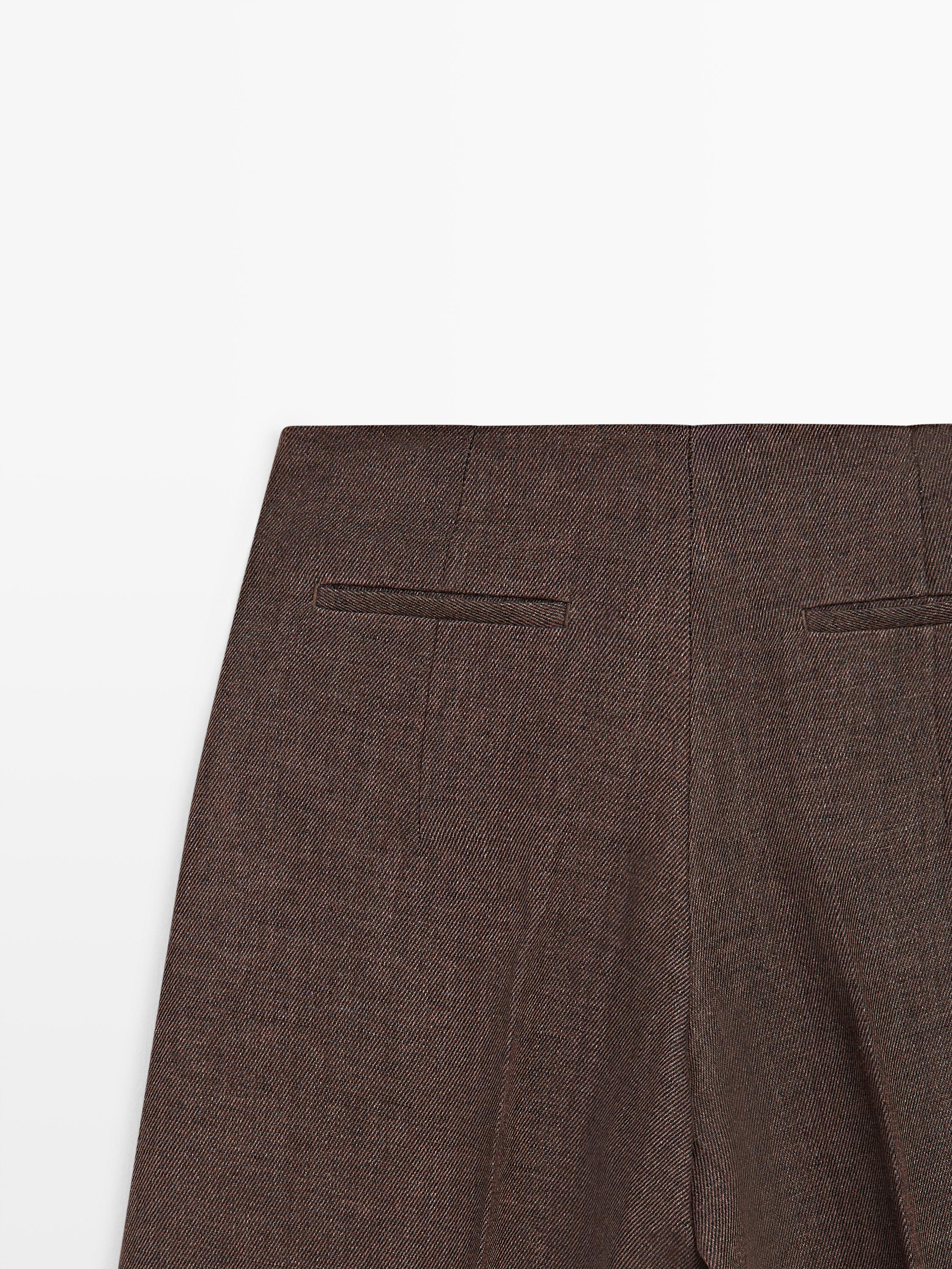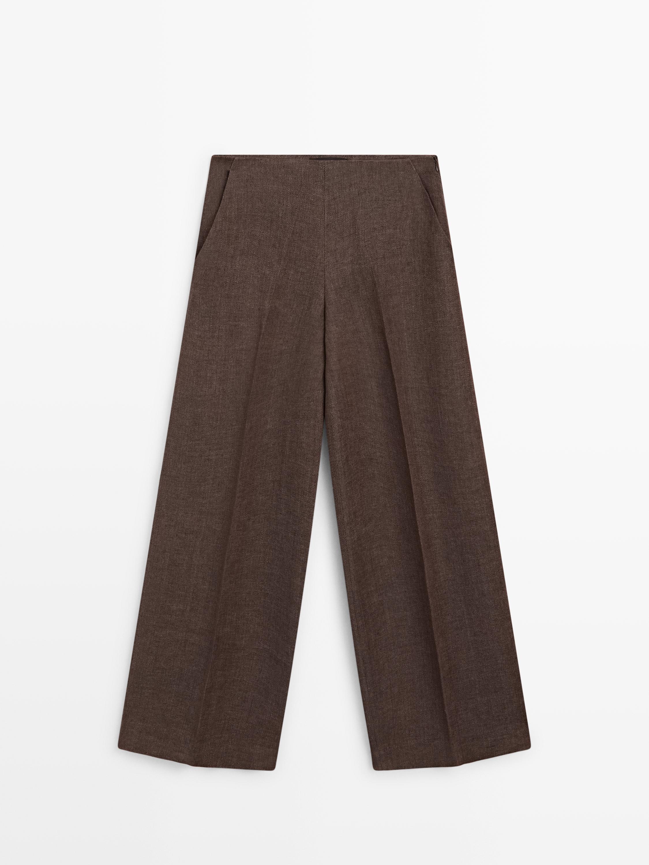 Massimo Dutti Брюки из струящегося льна, коричневый
