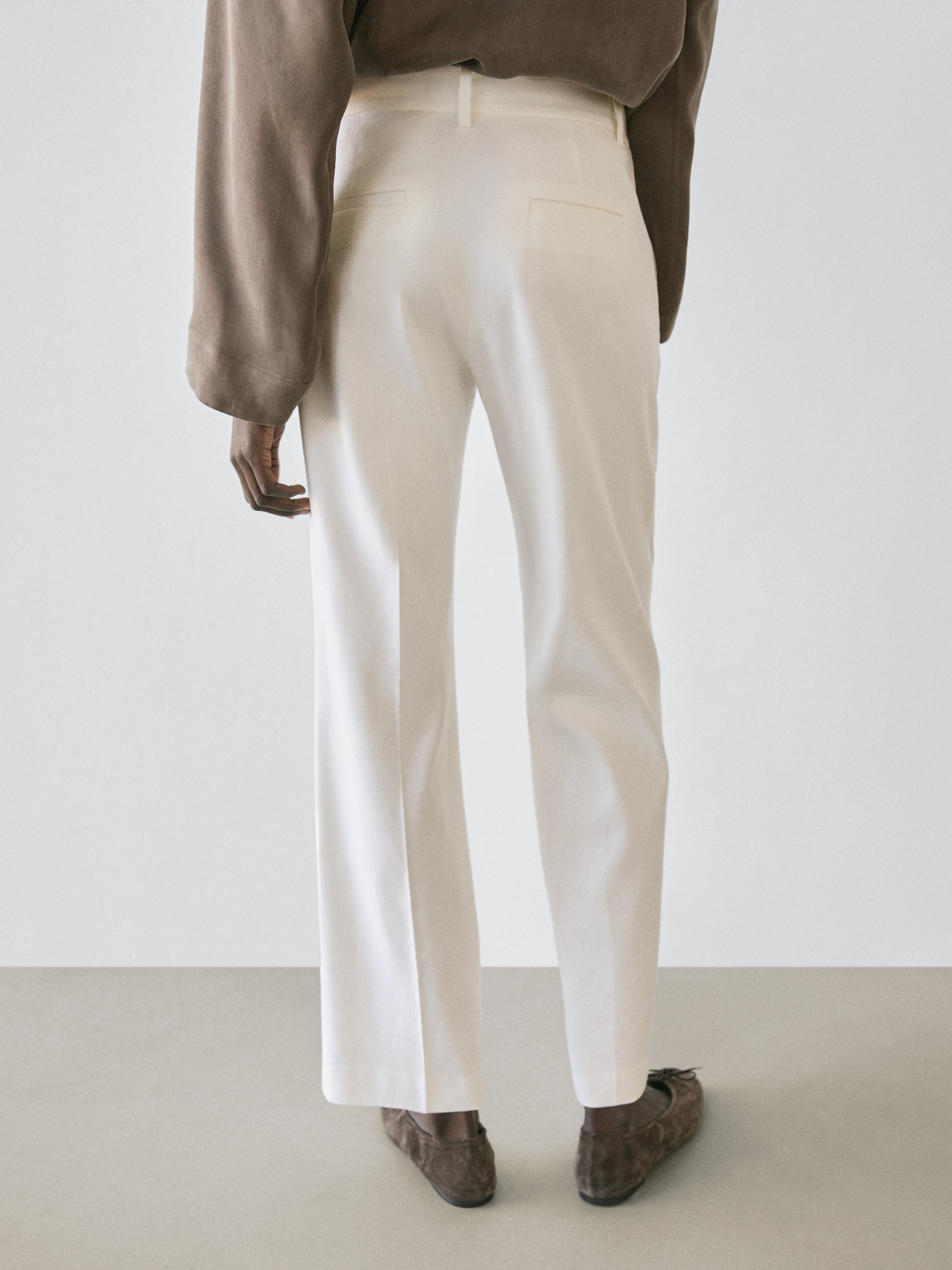 Massimo Dutti Брюки прямого кроя из смесового льна, белый
