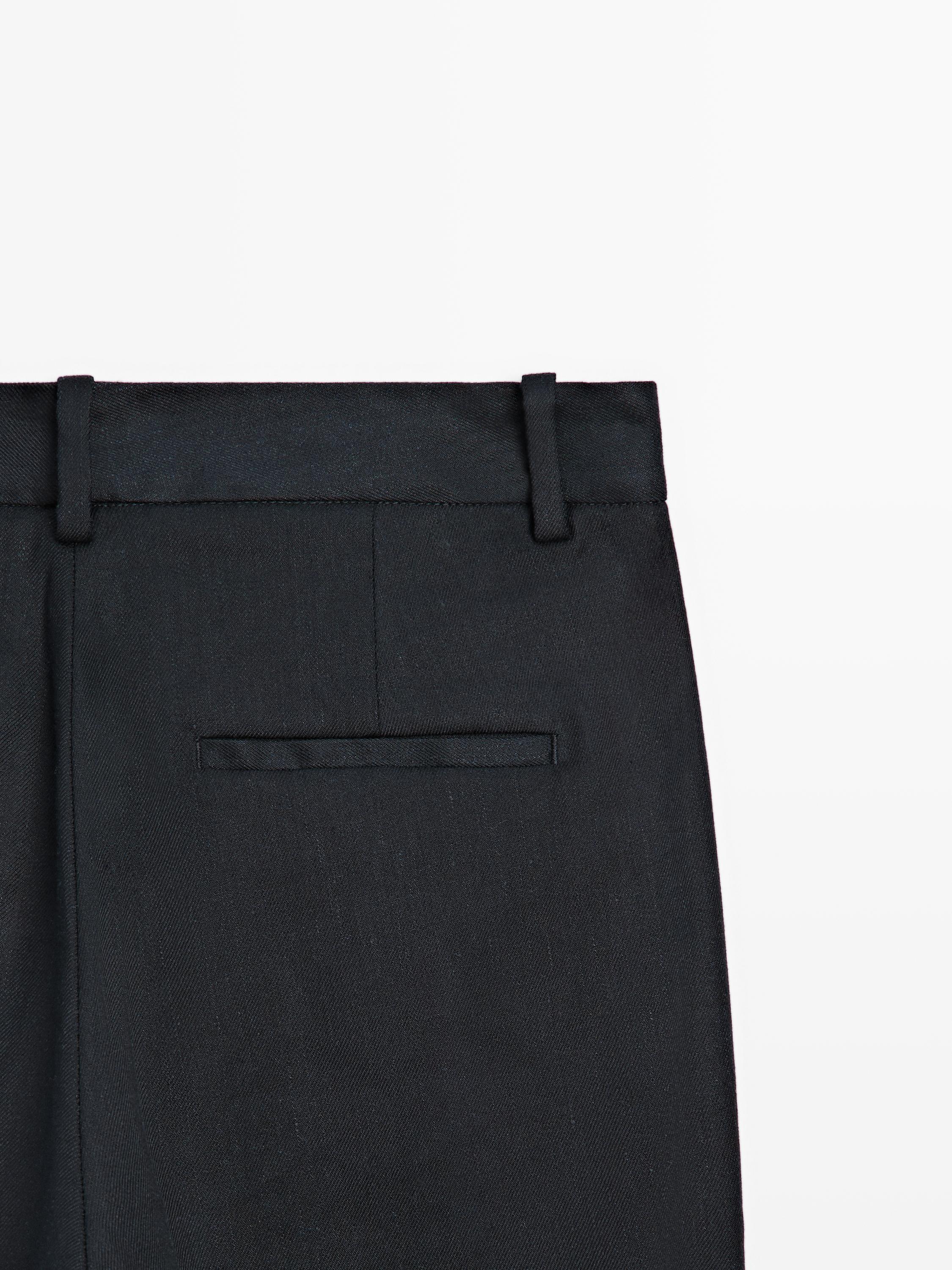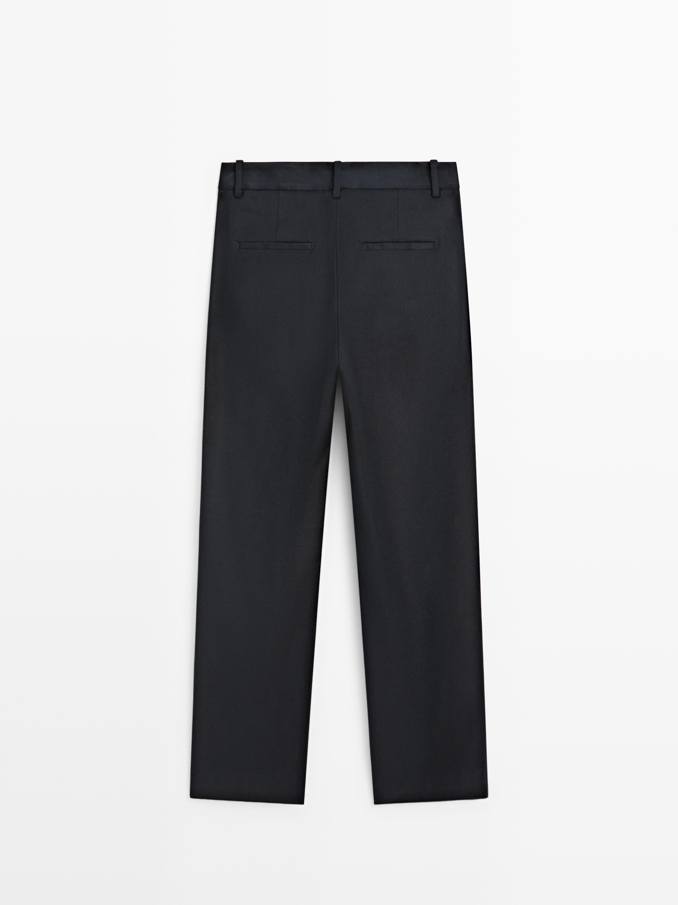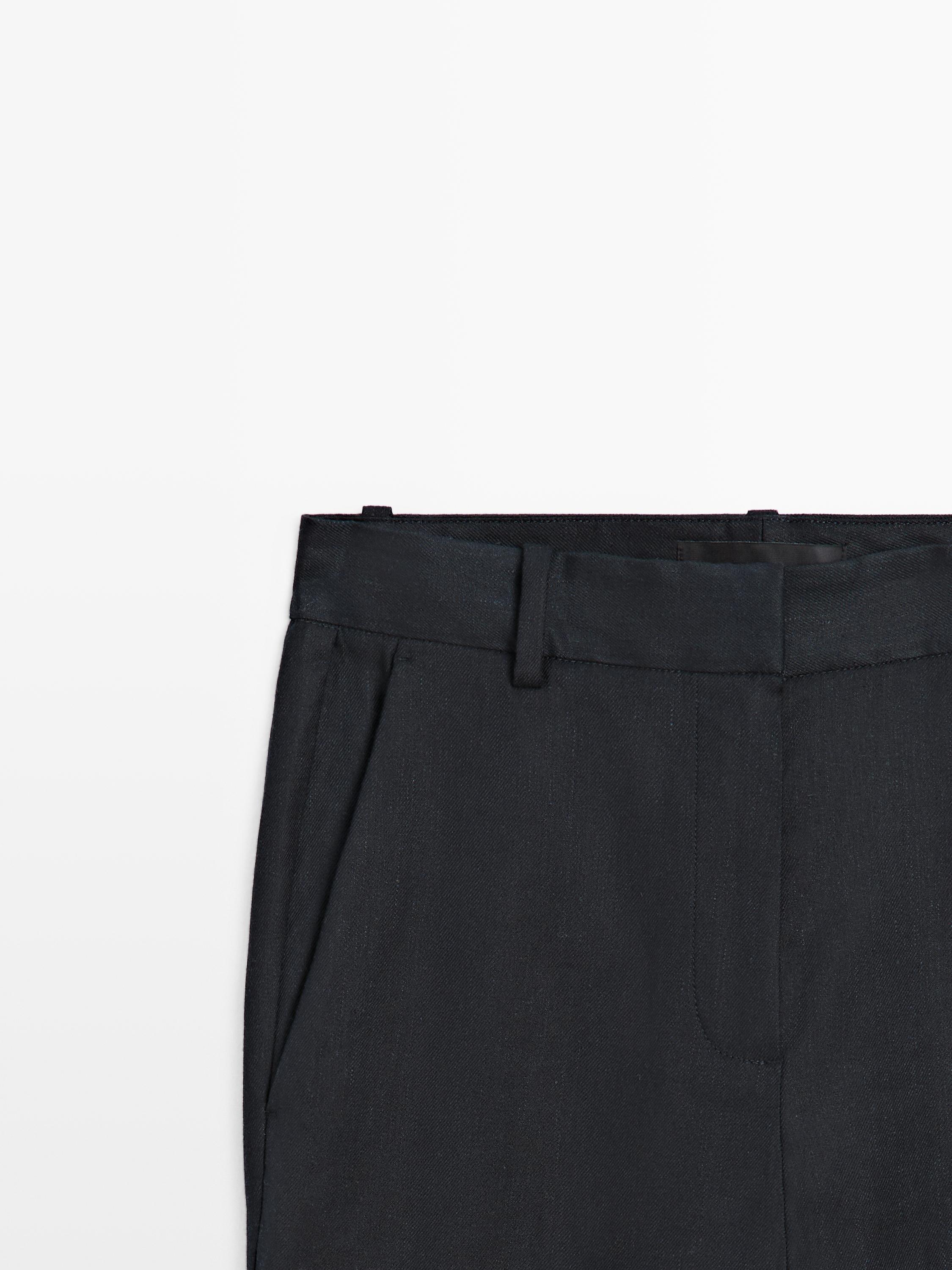 Massimo Dutti Брюки прямого кроя из смесового льна, темно-синий