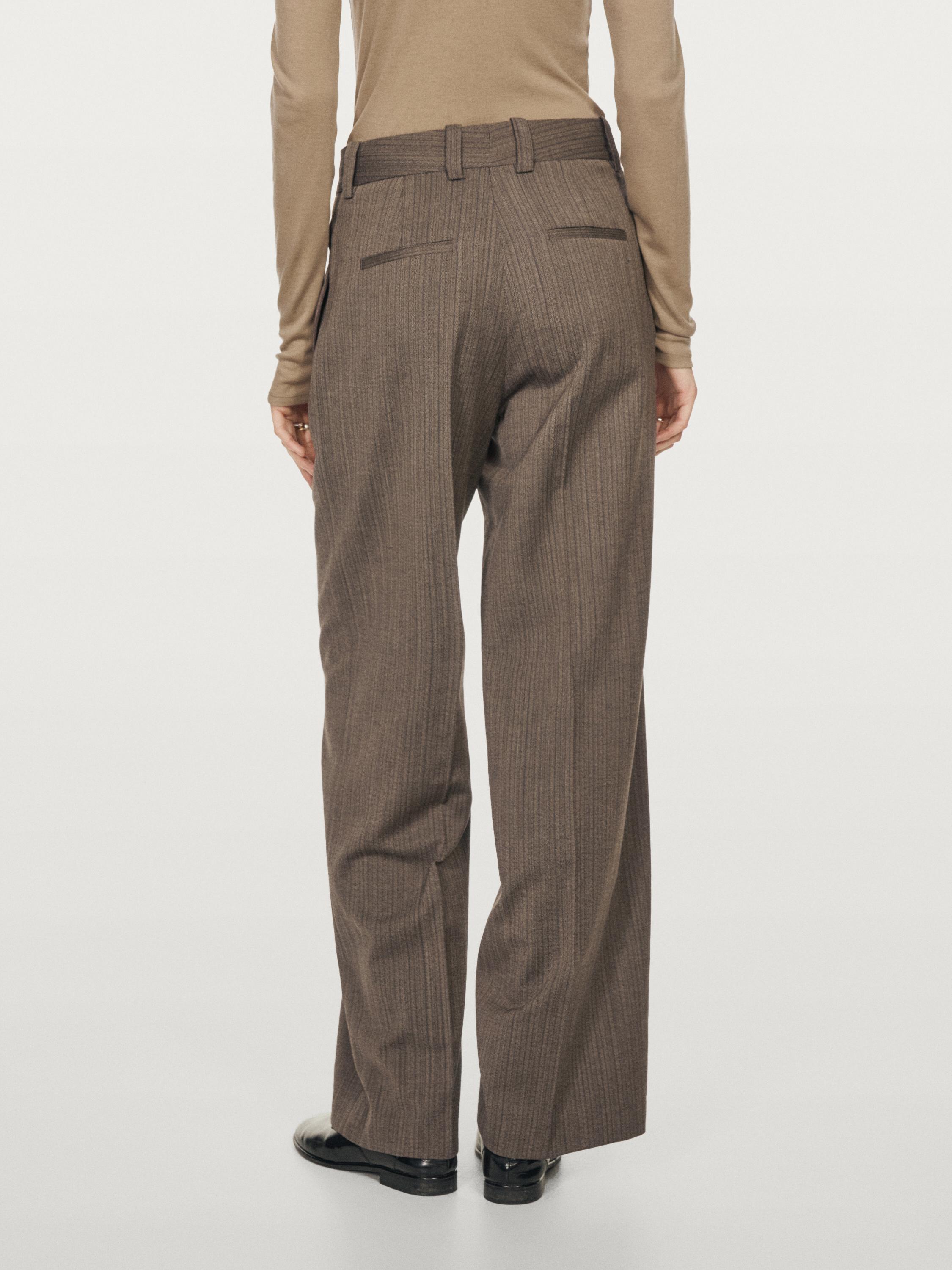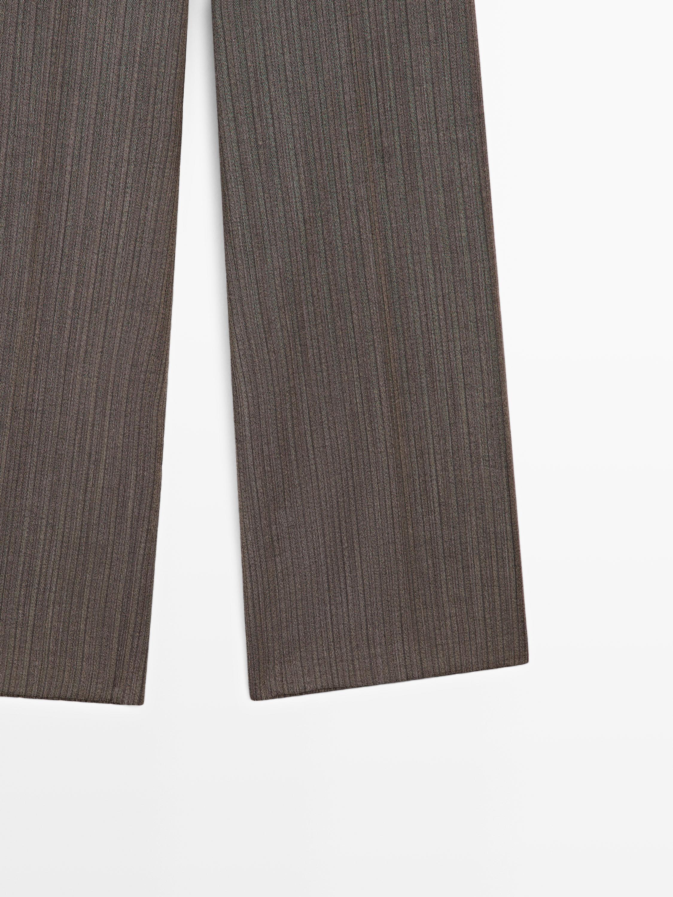 Massimo Dutti Брюки прямого кроя с узором «ёлочка» из 100% шерсти, шоколадный