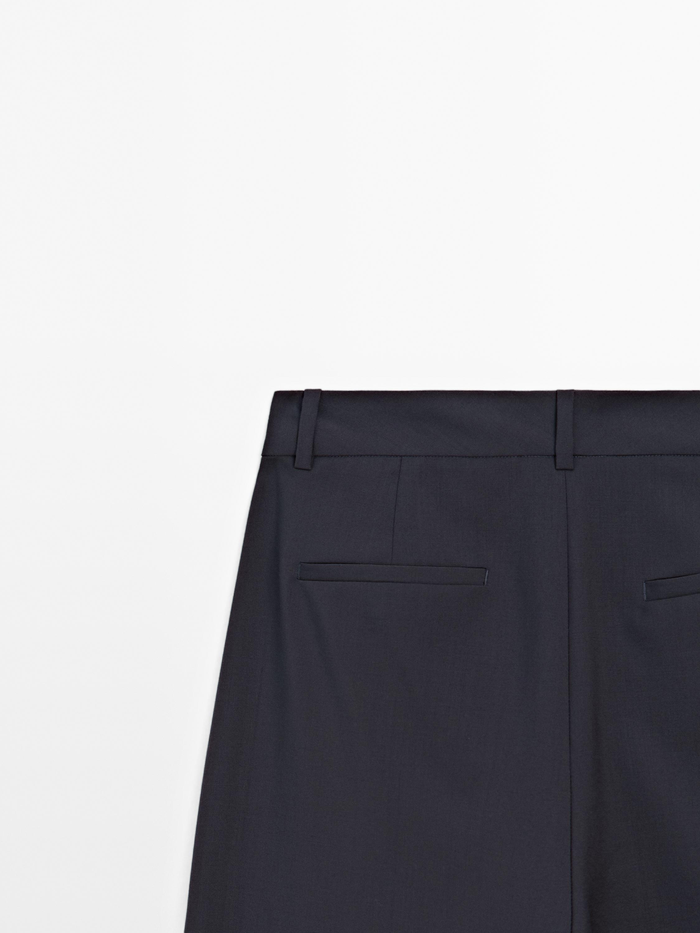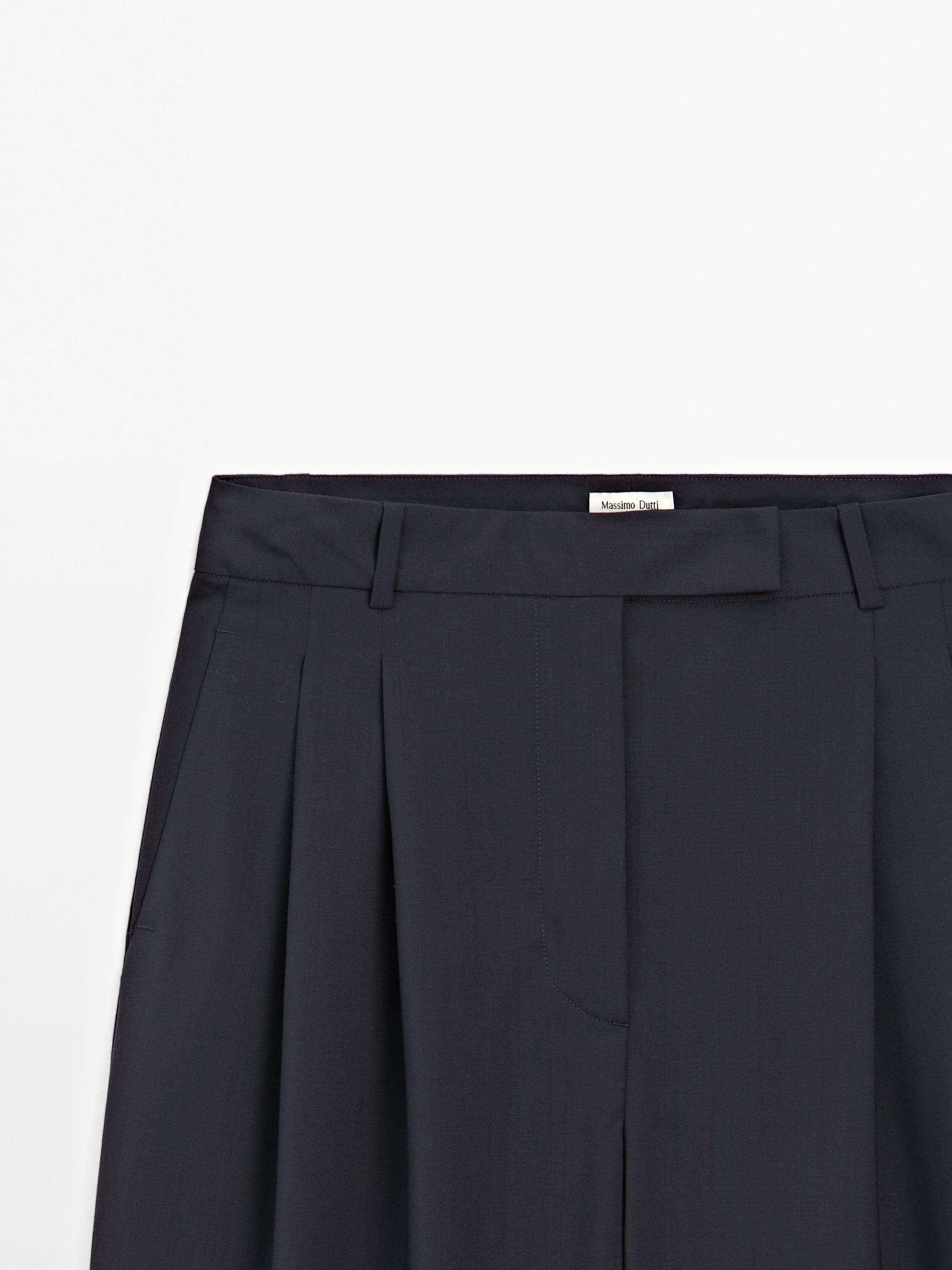 Massimo Dutti Брюки с двойными вытачками из 100% шерсти - STUDIO, темно-синий