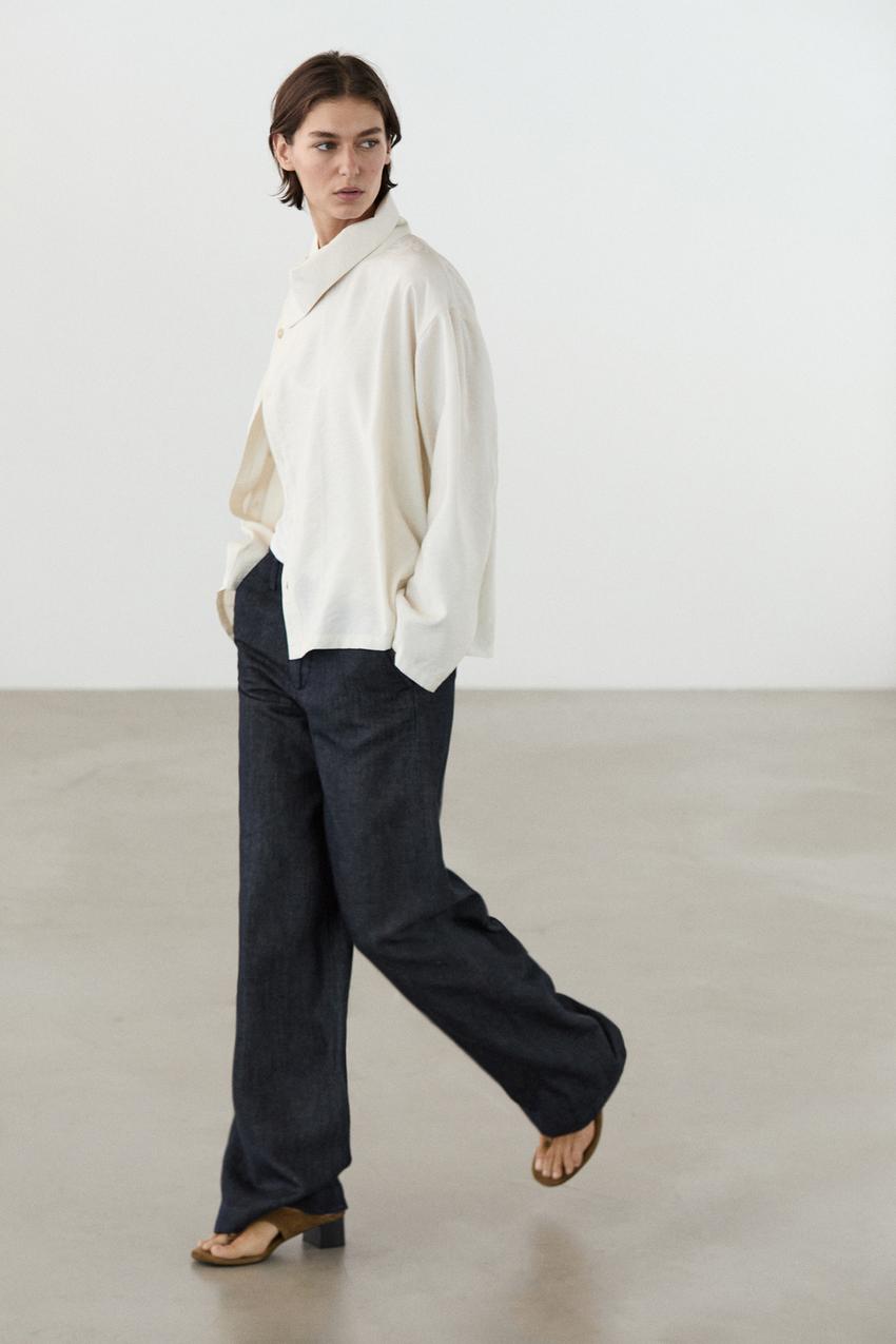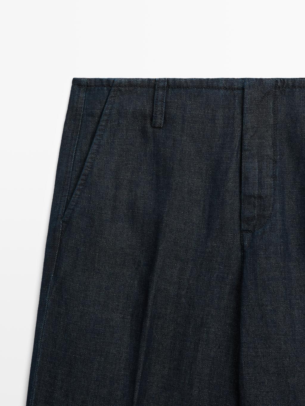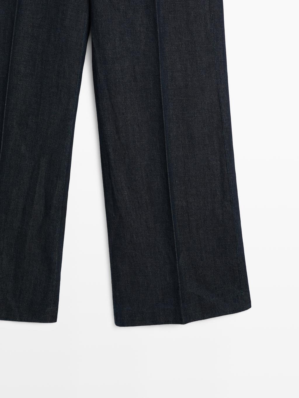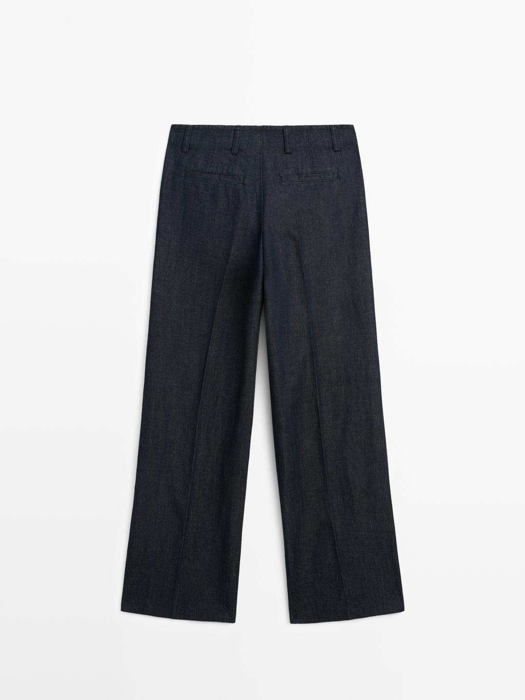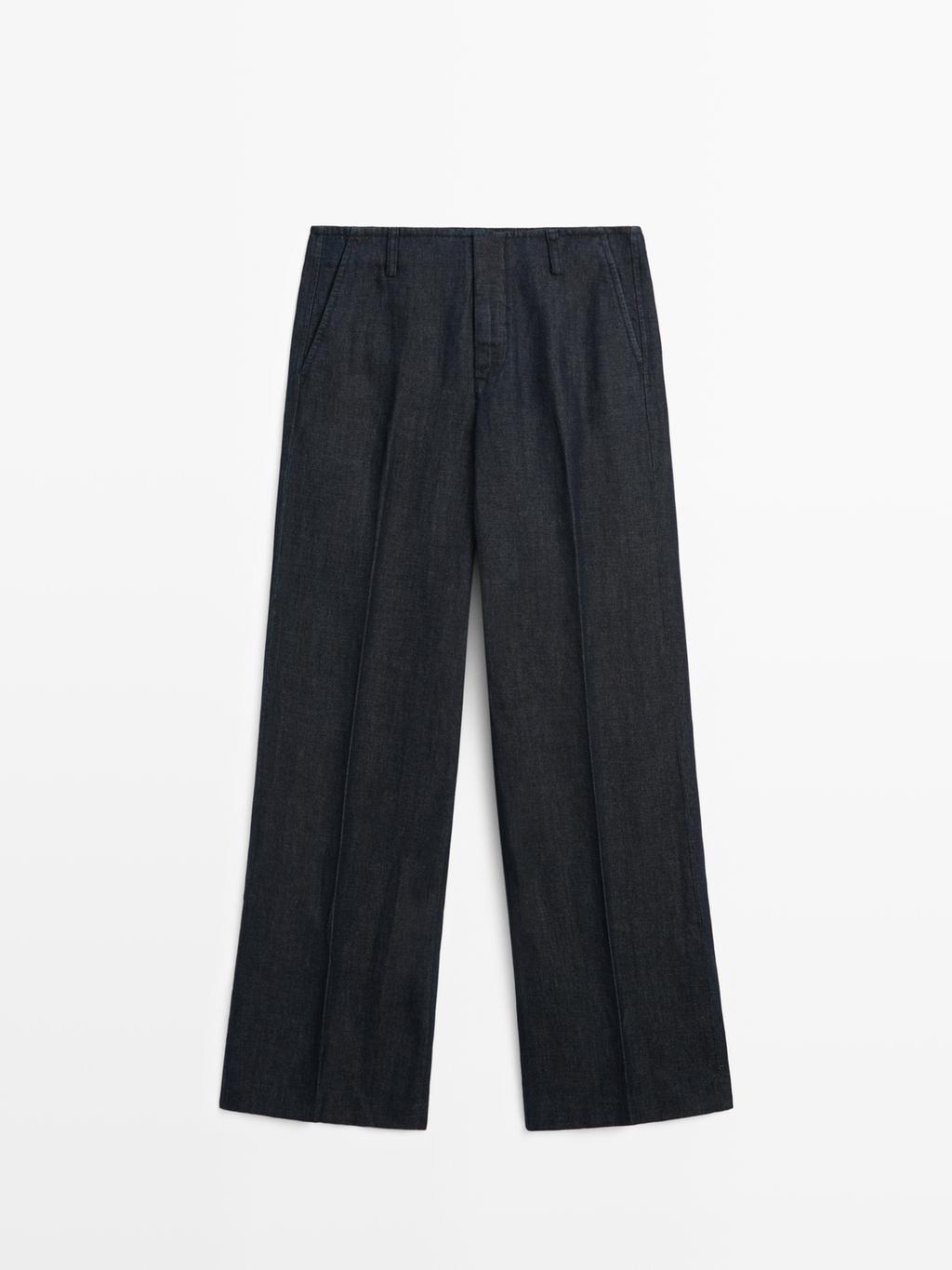Massimo Dutti Брюки с широкими штанинами из льняной смеси, темно-синий
