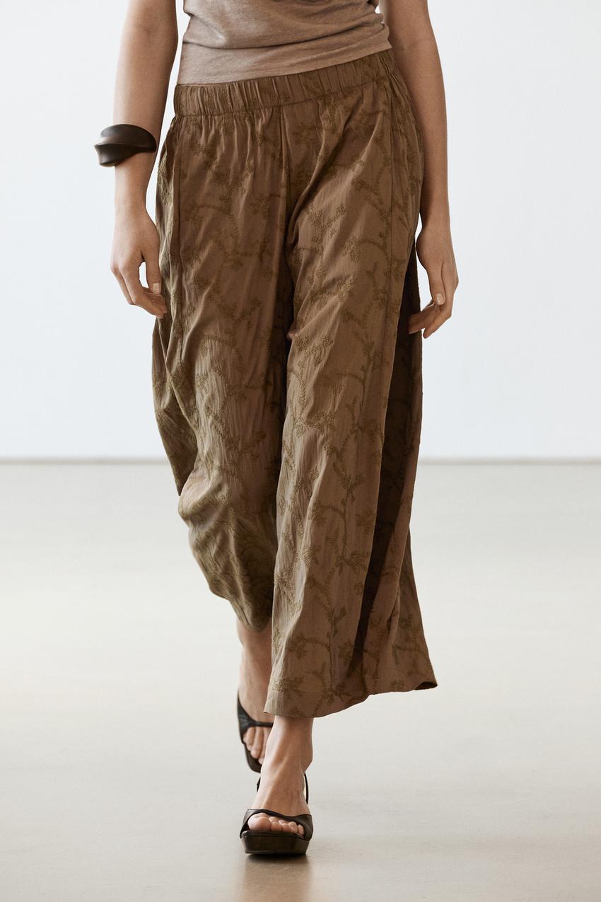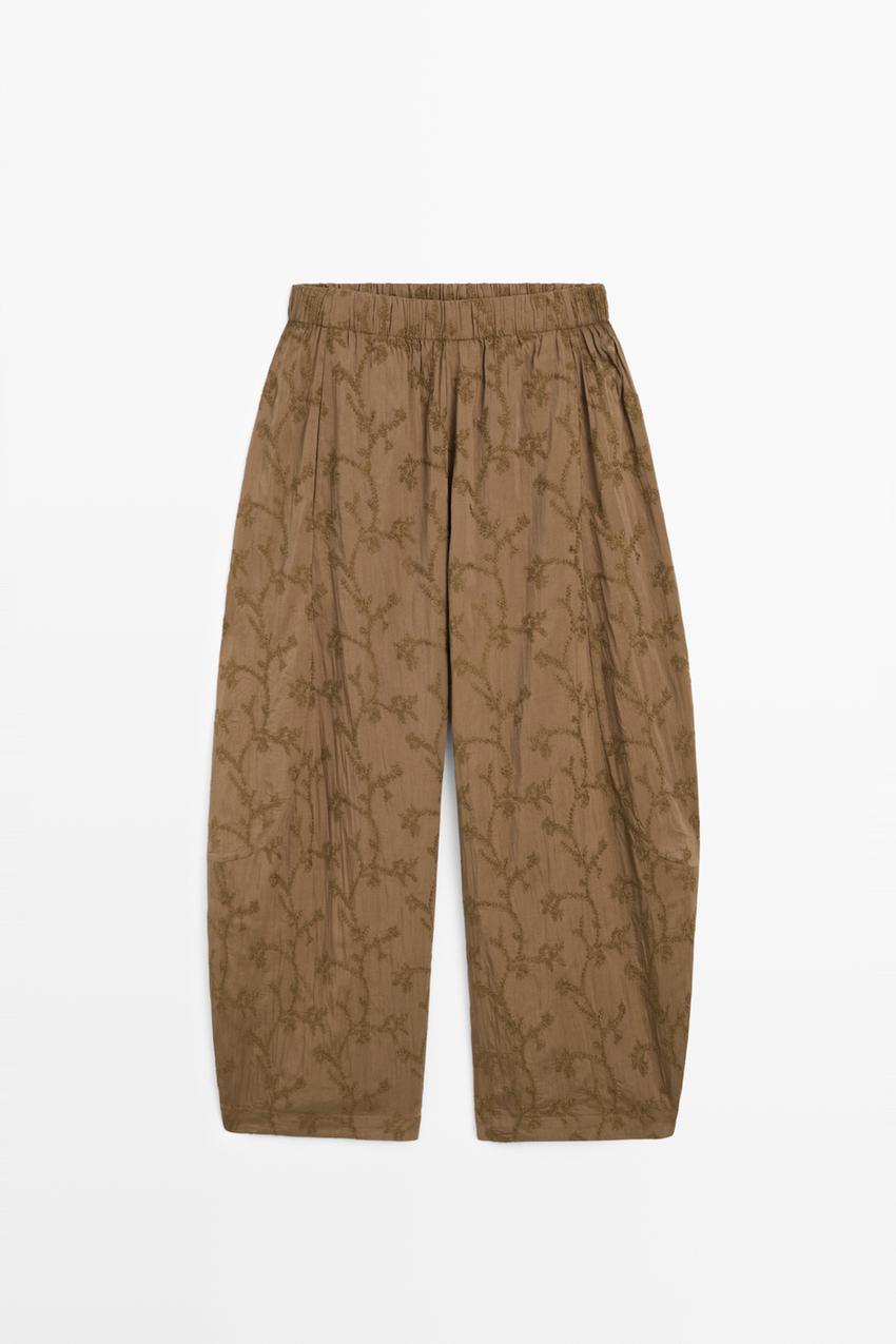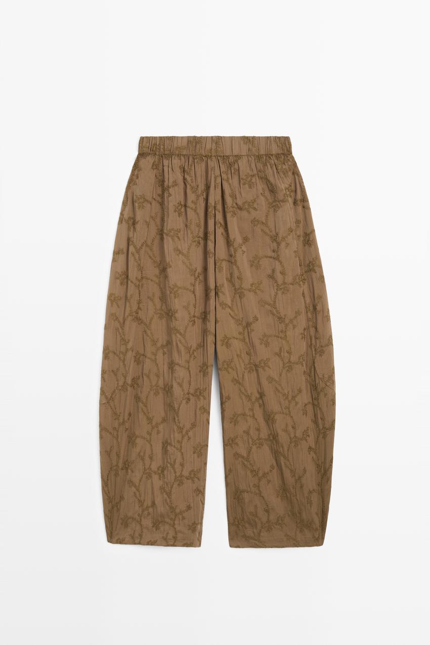 Massimo Dutti Брюки с вышивкой и эластичным поясом, хаки