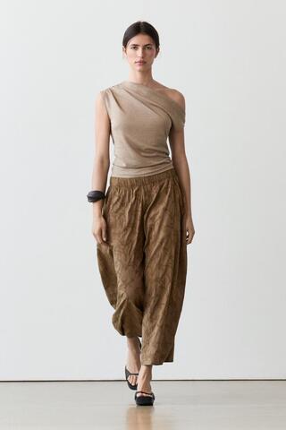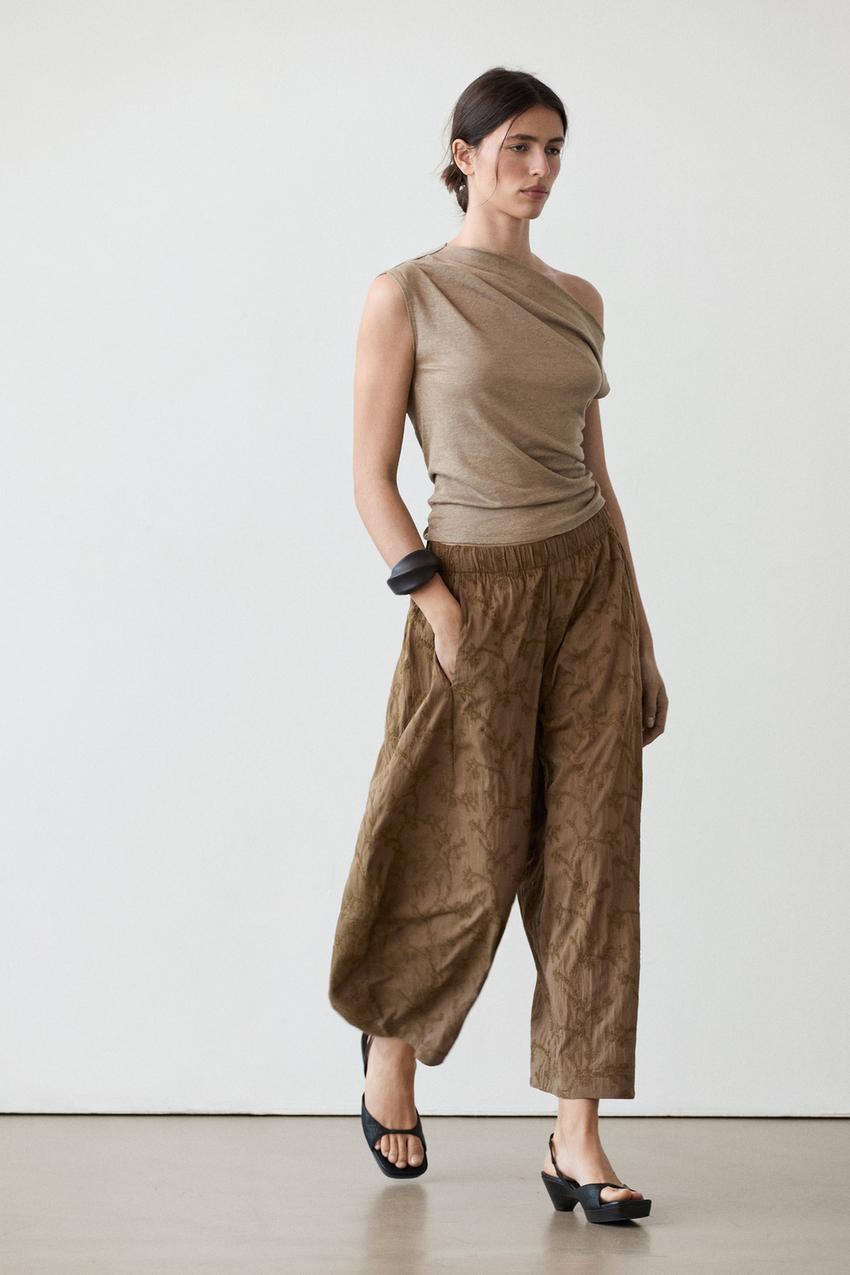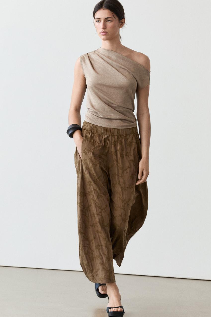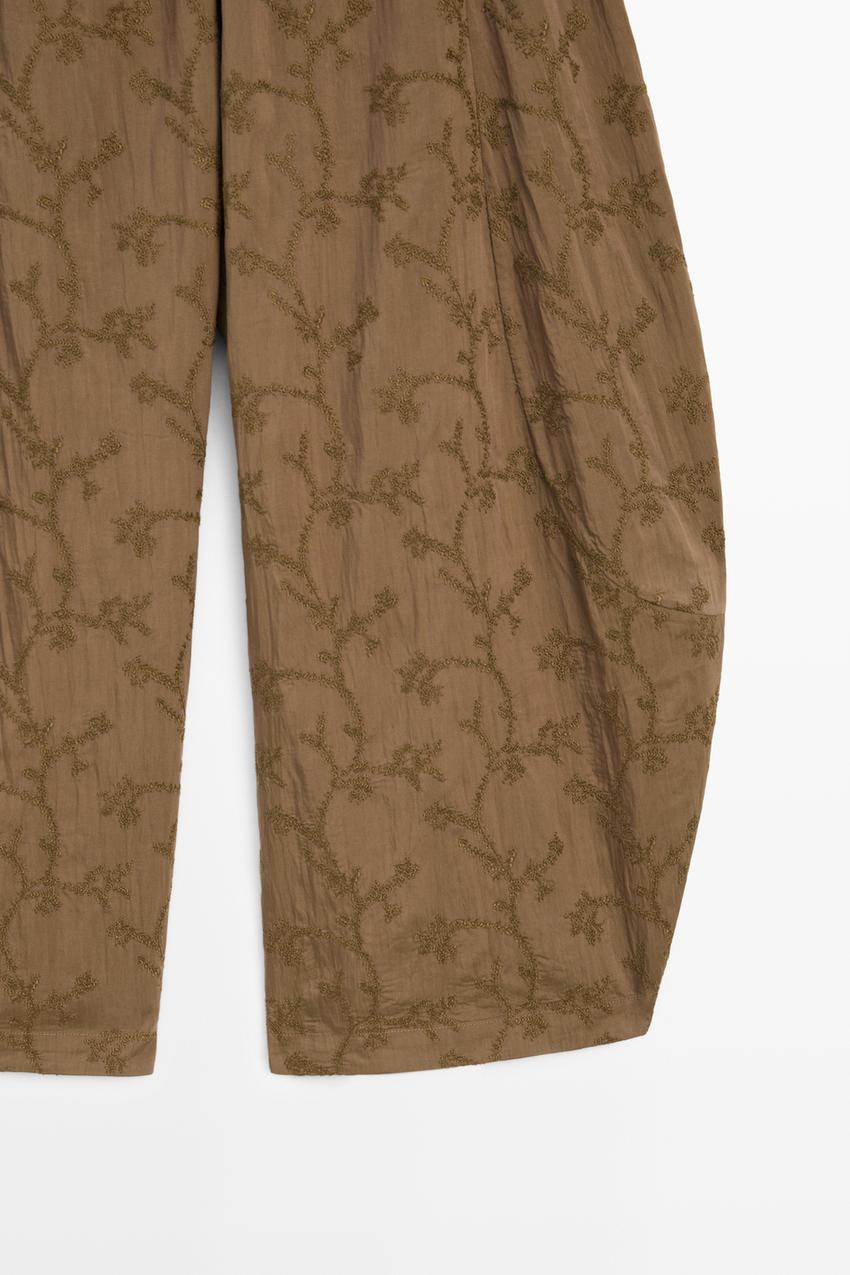 Massimo Dutti Брюки с вышивкой и эластичным поясом, хаки