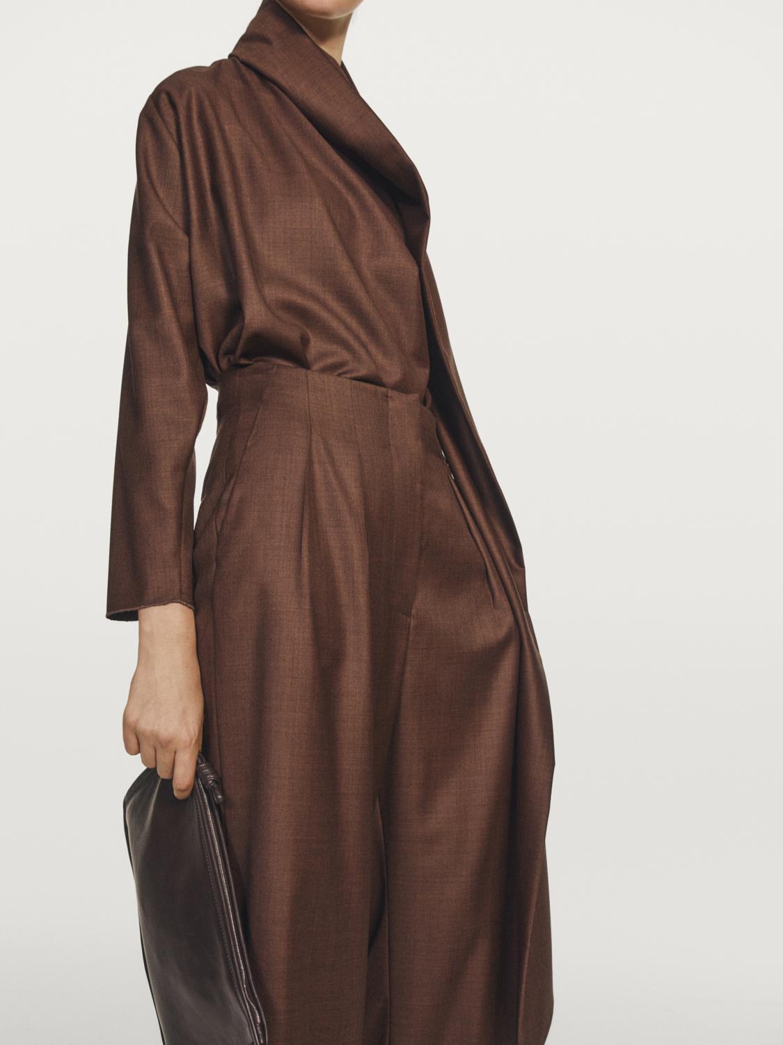 Massimo Dutti Брюки с вытачками из 100% шерсти - Studio, терракотовый