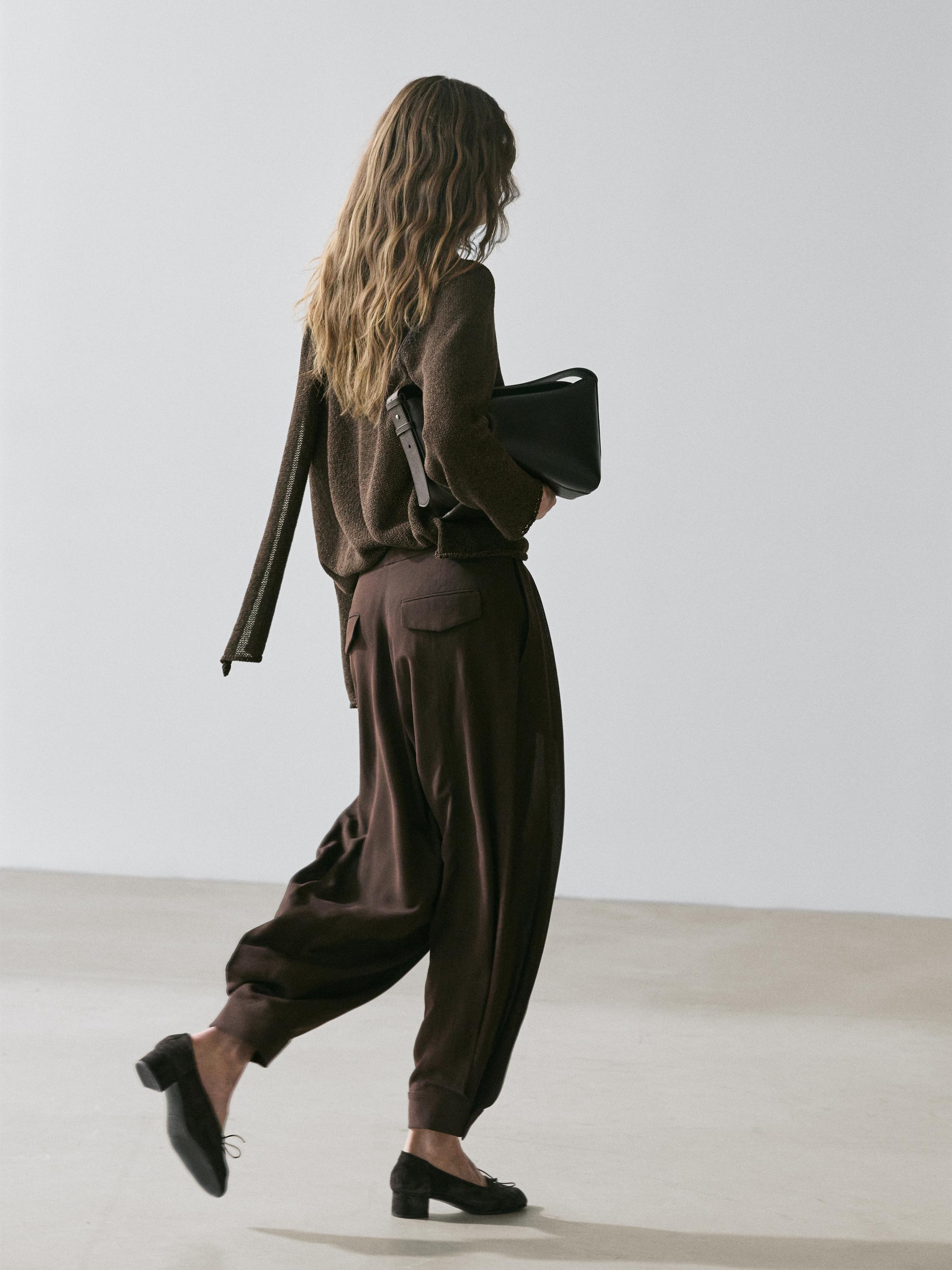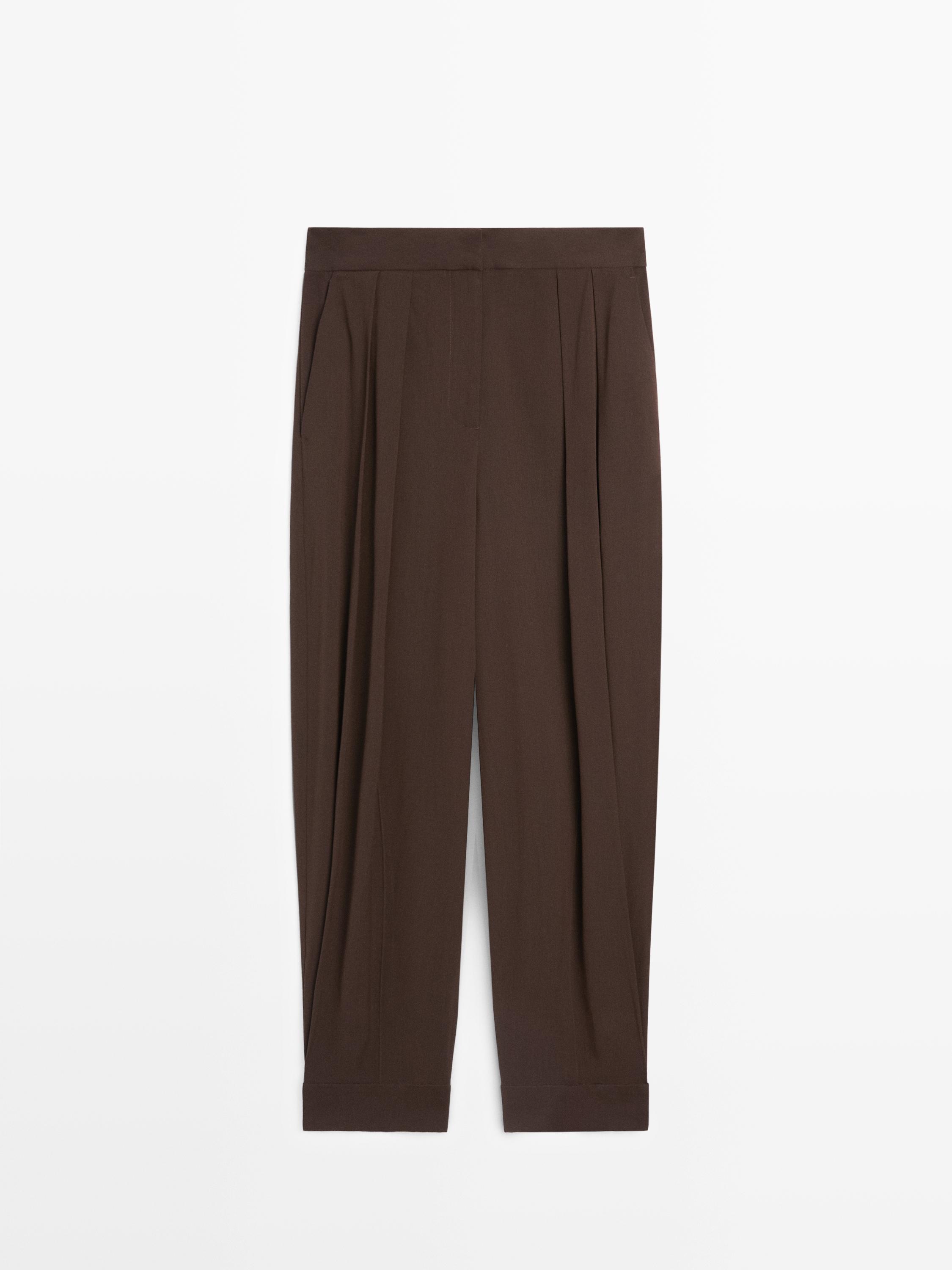 Massimo Dutti Брюки-саруэль с пуговицами, коричневый