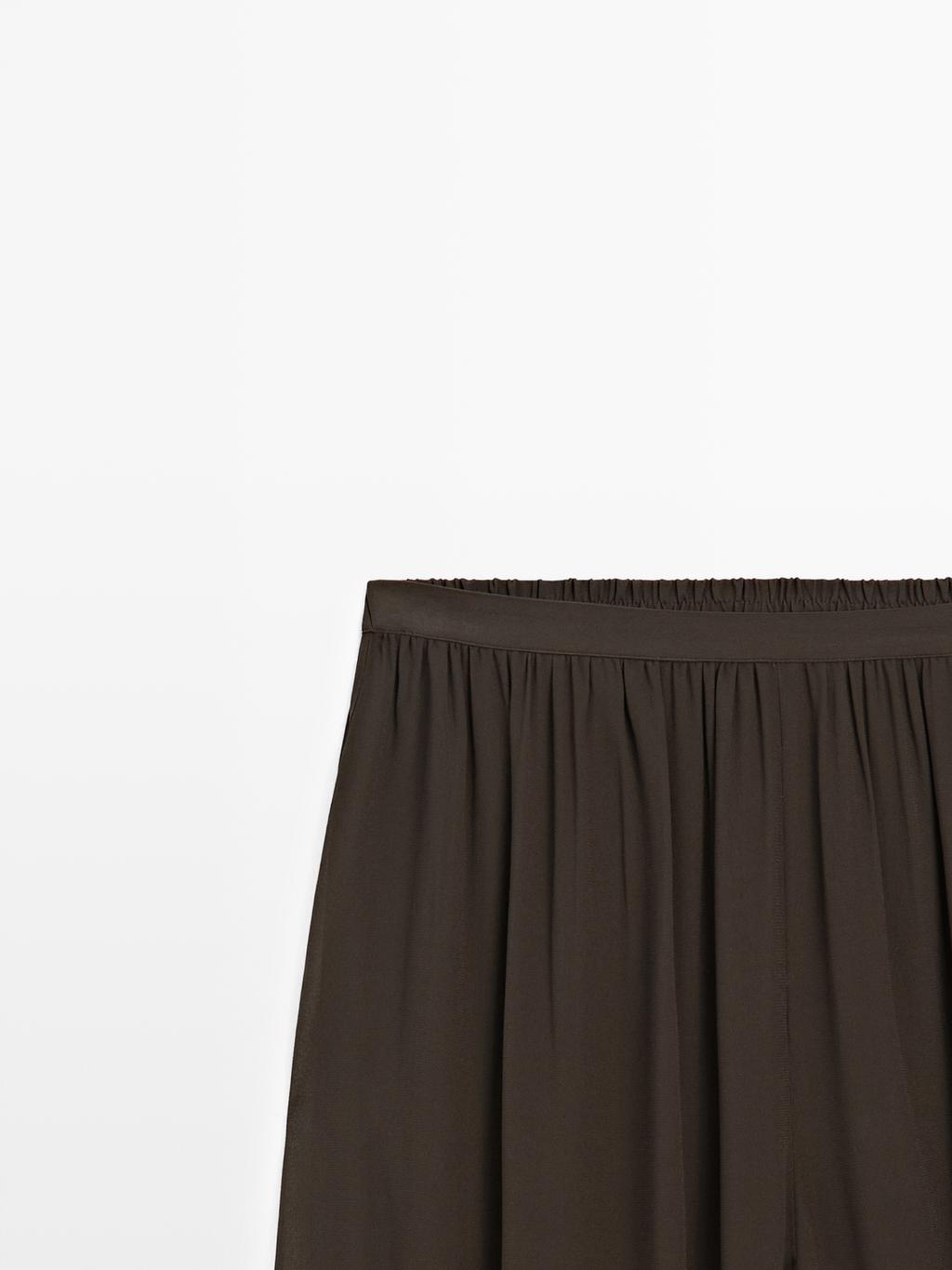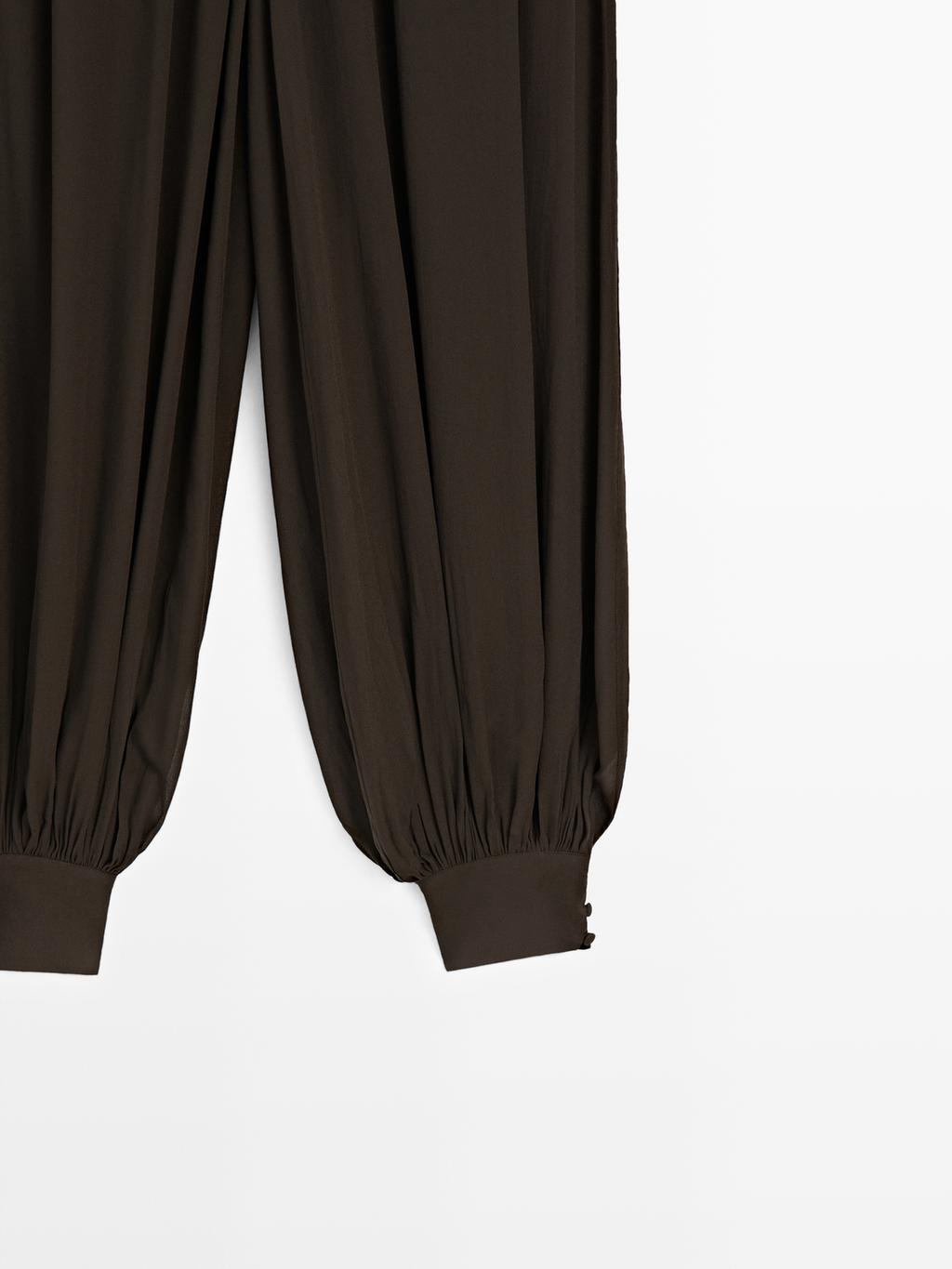 Massimo Dutti Брюки-саруэль с пуговицами, шоколадный