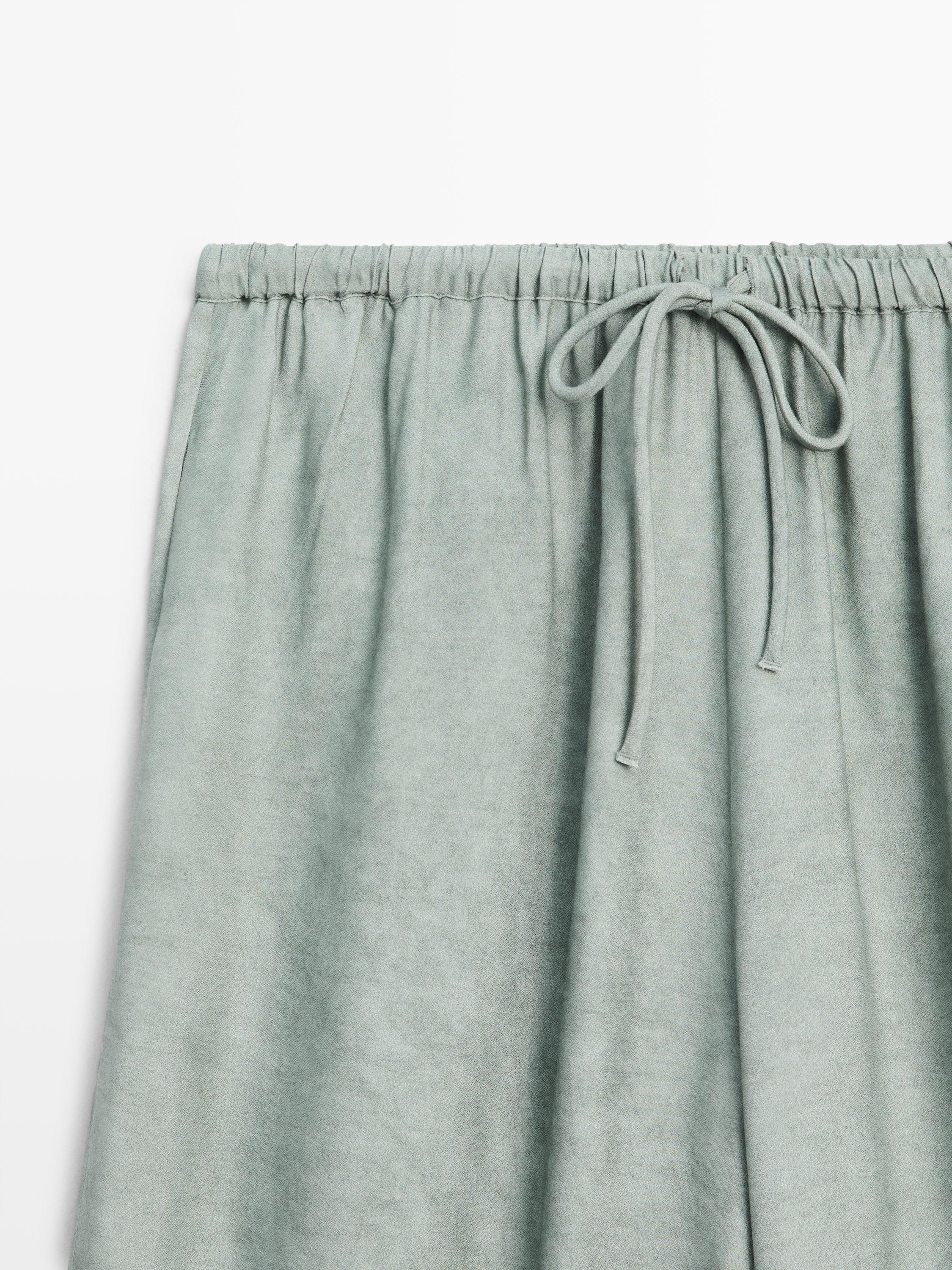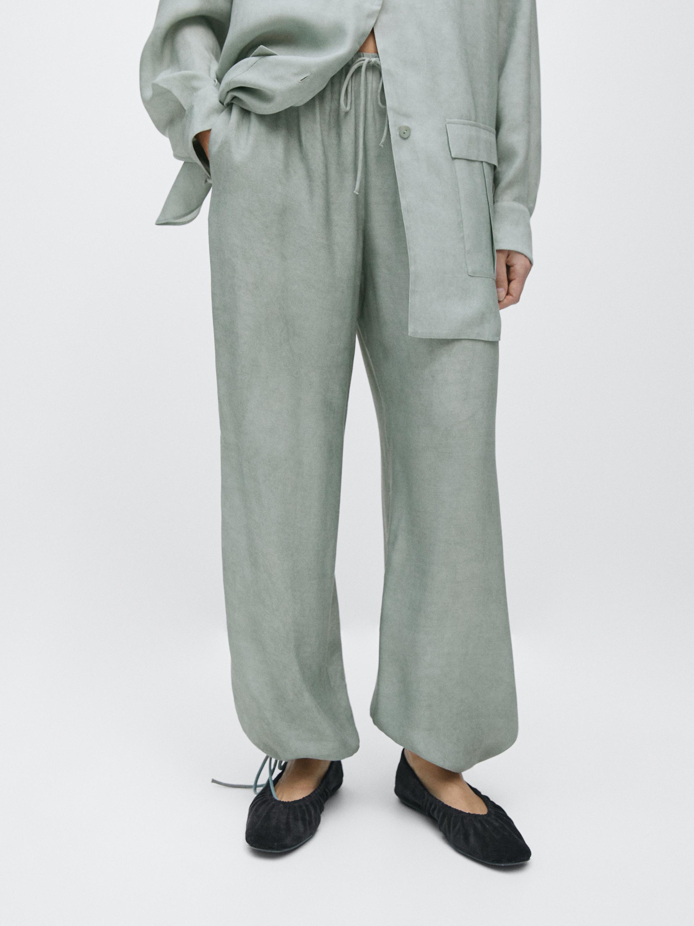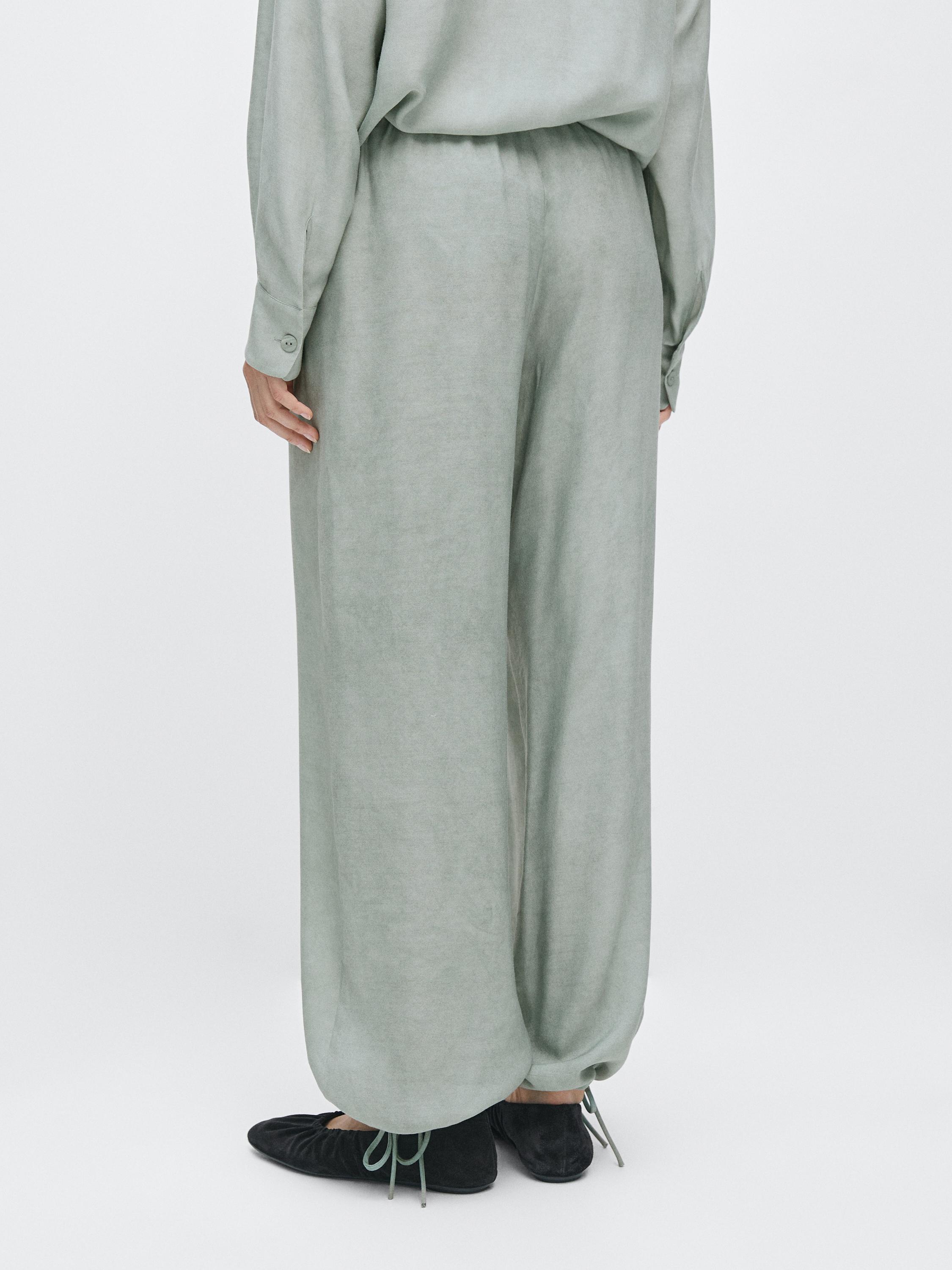 Massimo Dutti Брюки Саруэль с завязками, фисташковый