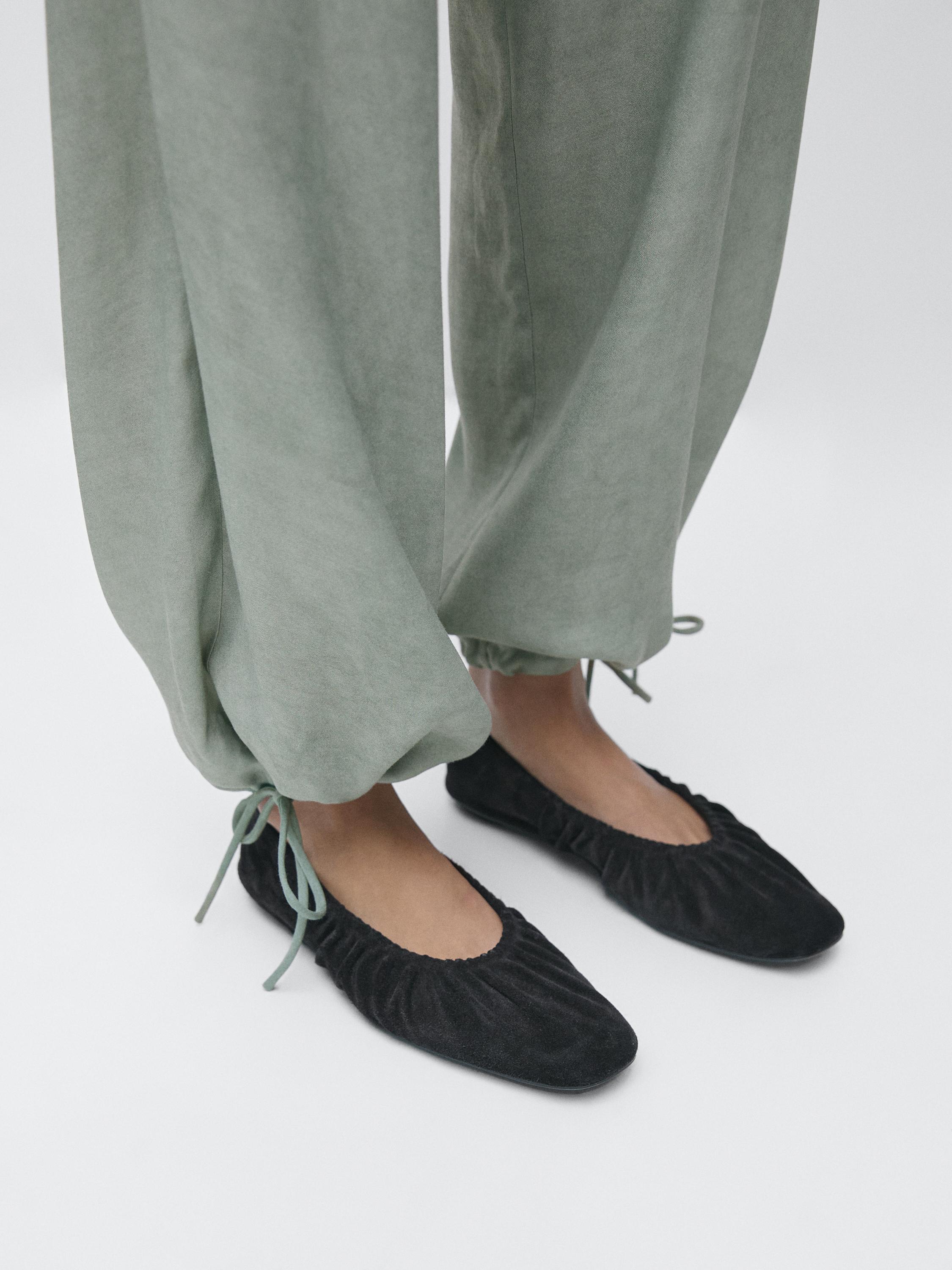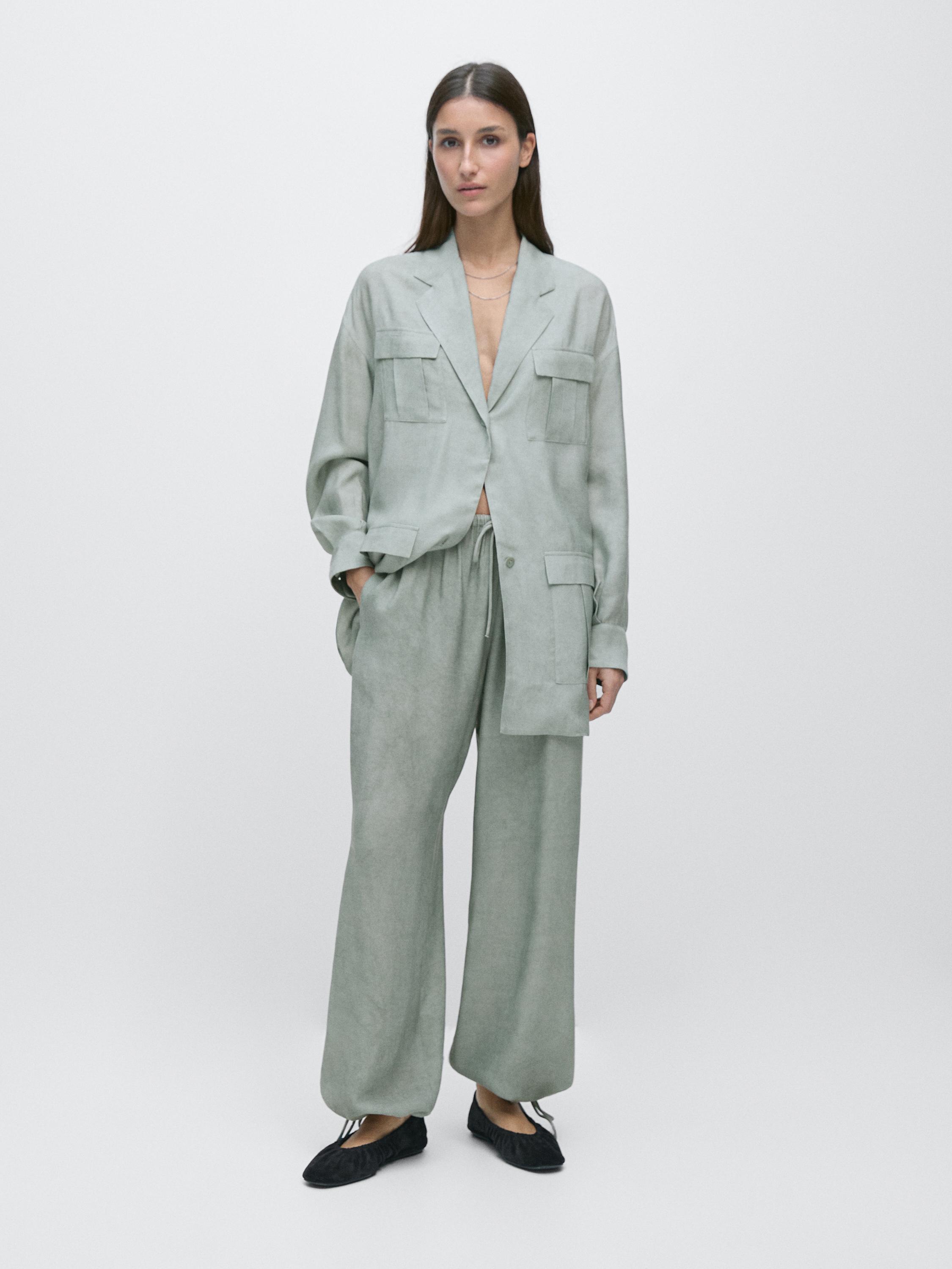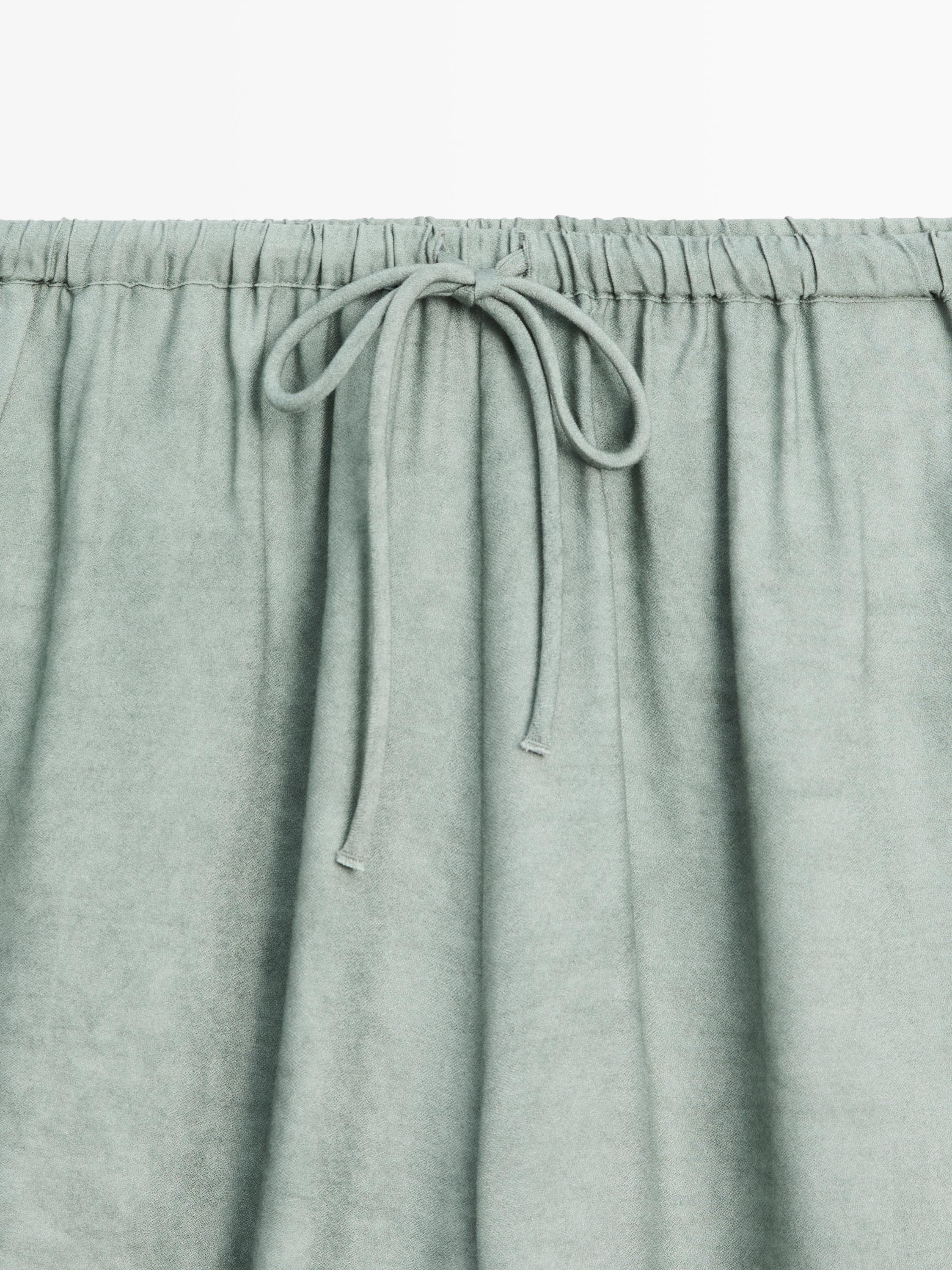Massimo Dutti Брюки Саруэль с завязками, фисташковый