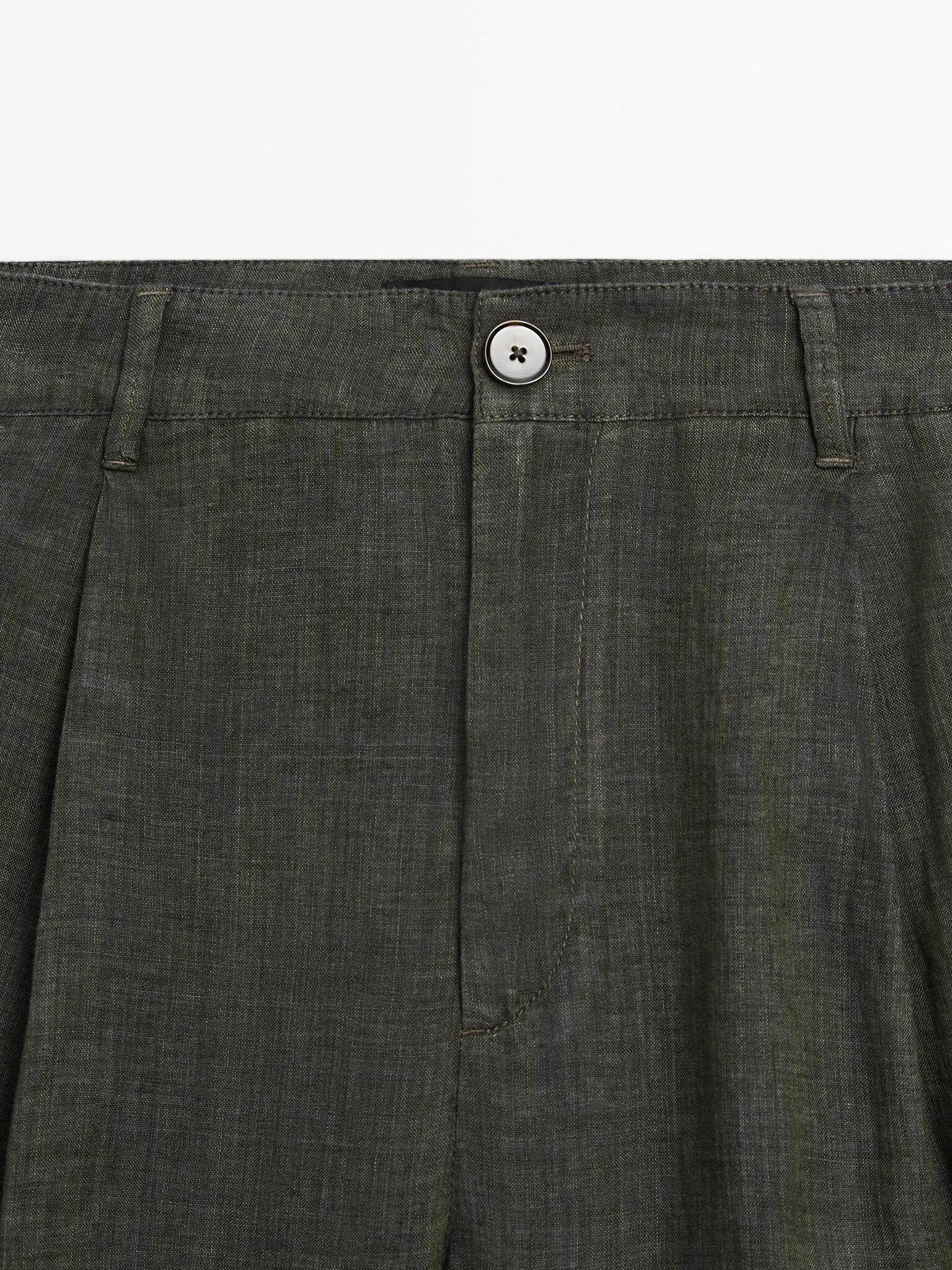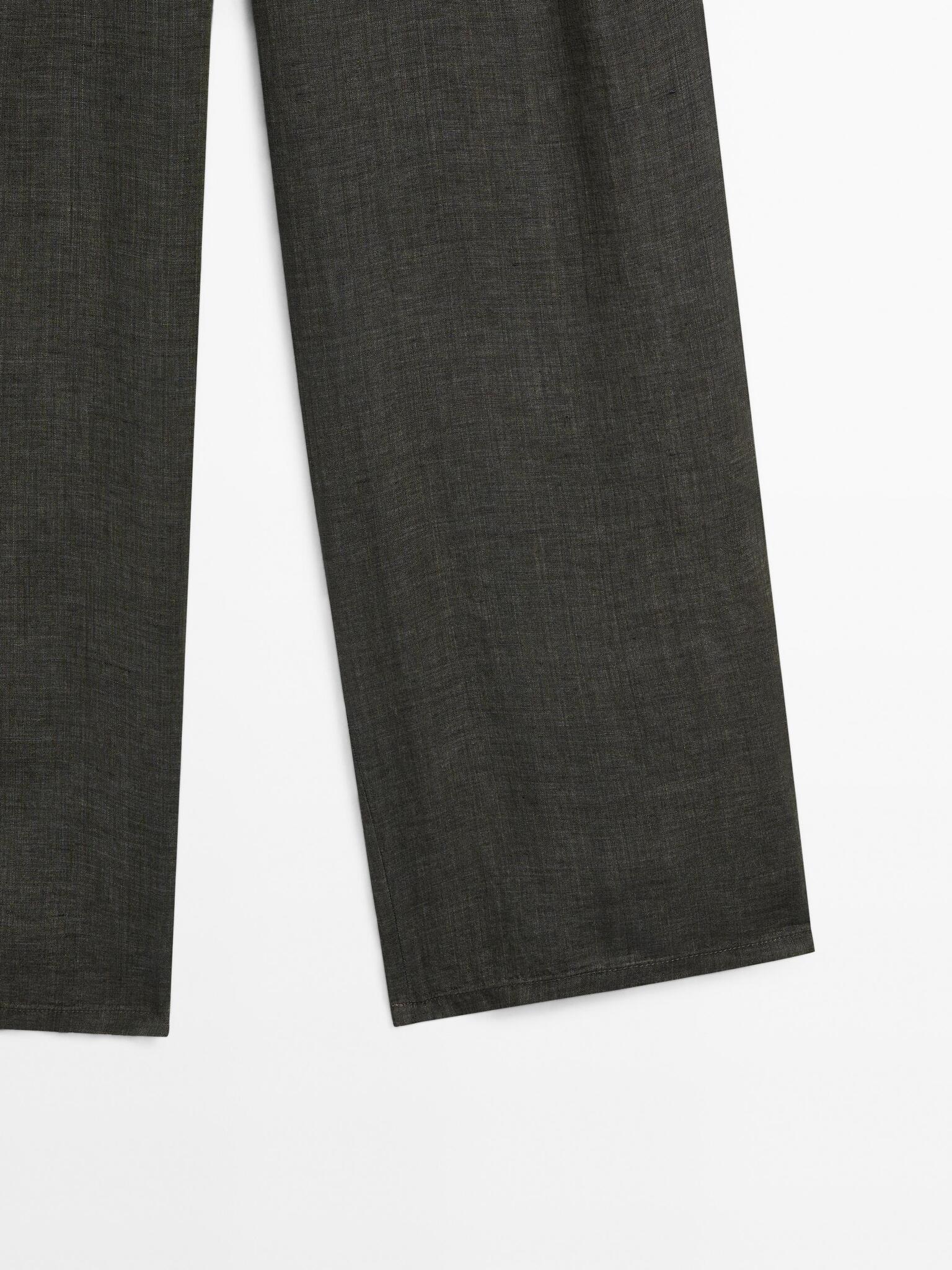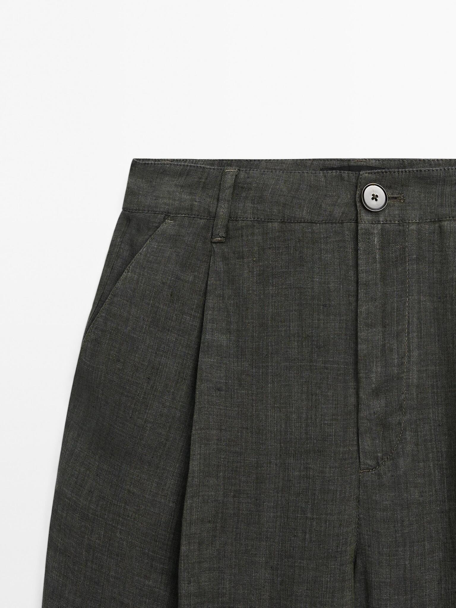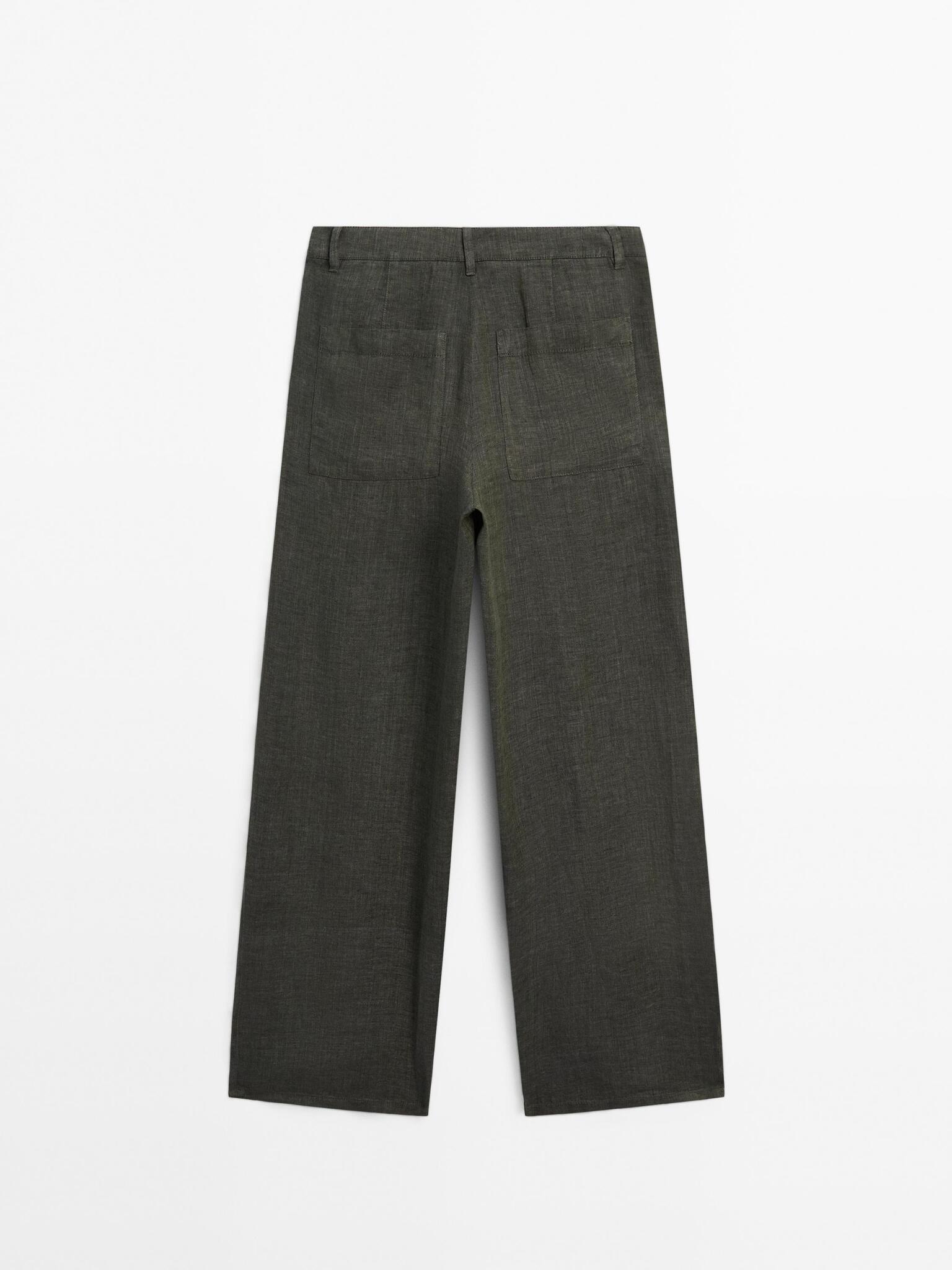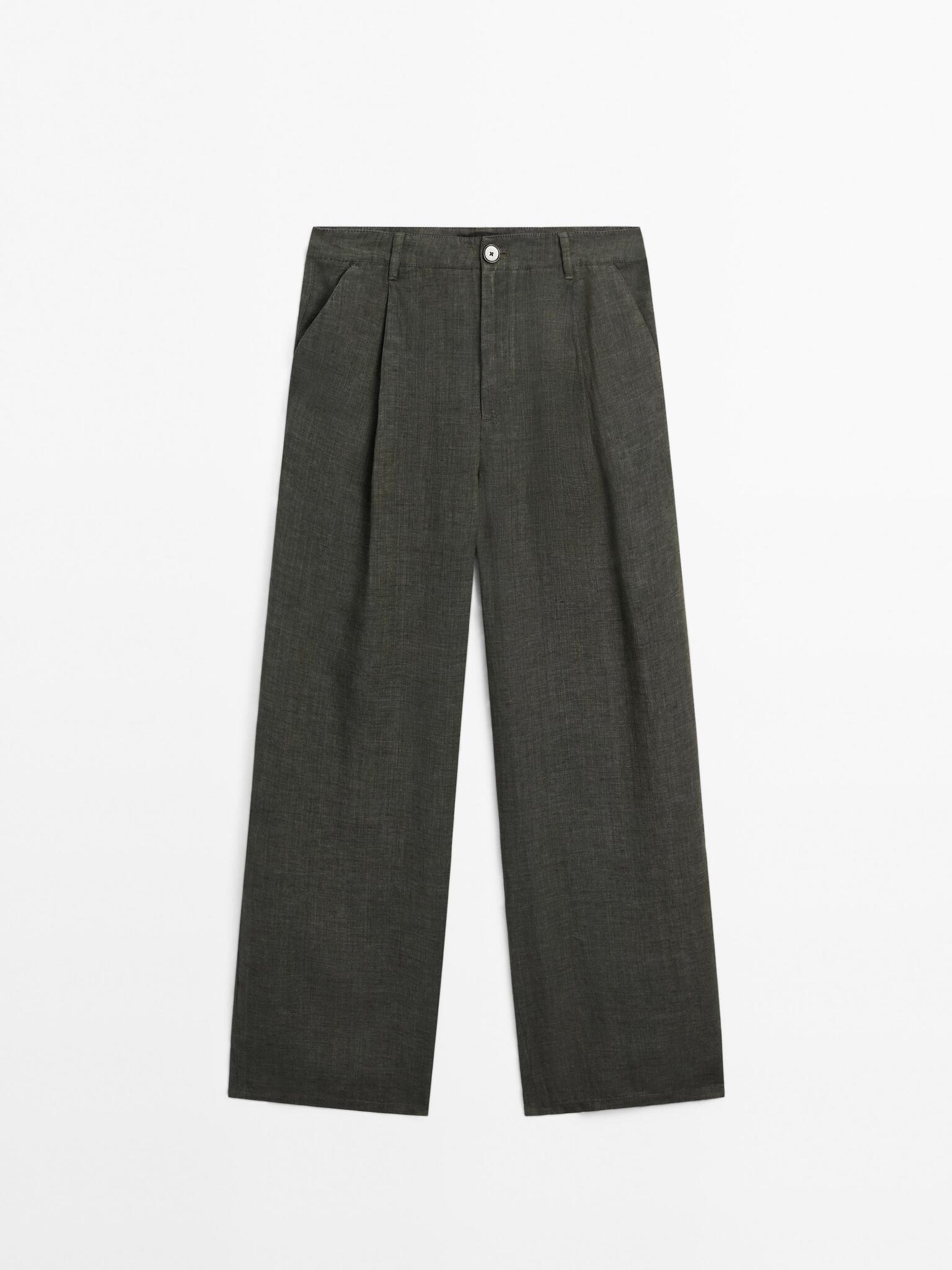 Massimo Dutti Брюки широкие из 100% льна, серовато-зеленый