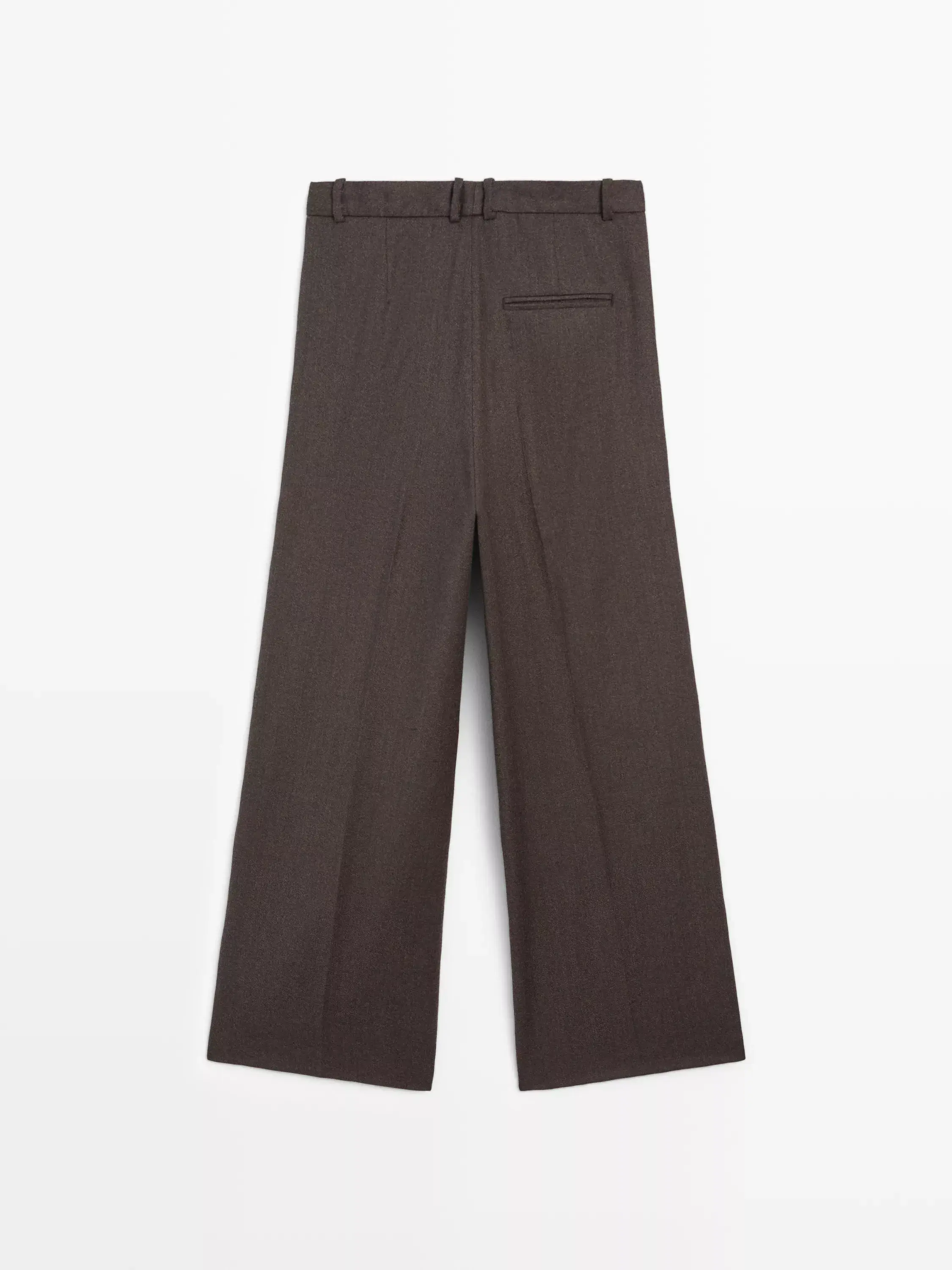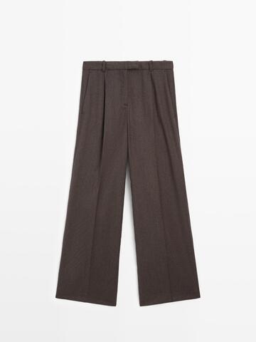 Massimo Dutti Брюки широкие с вытачками из 100% шерсти, шоколадный