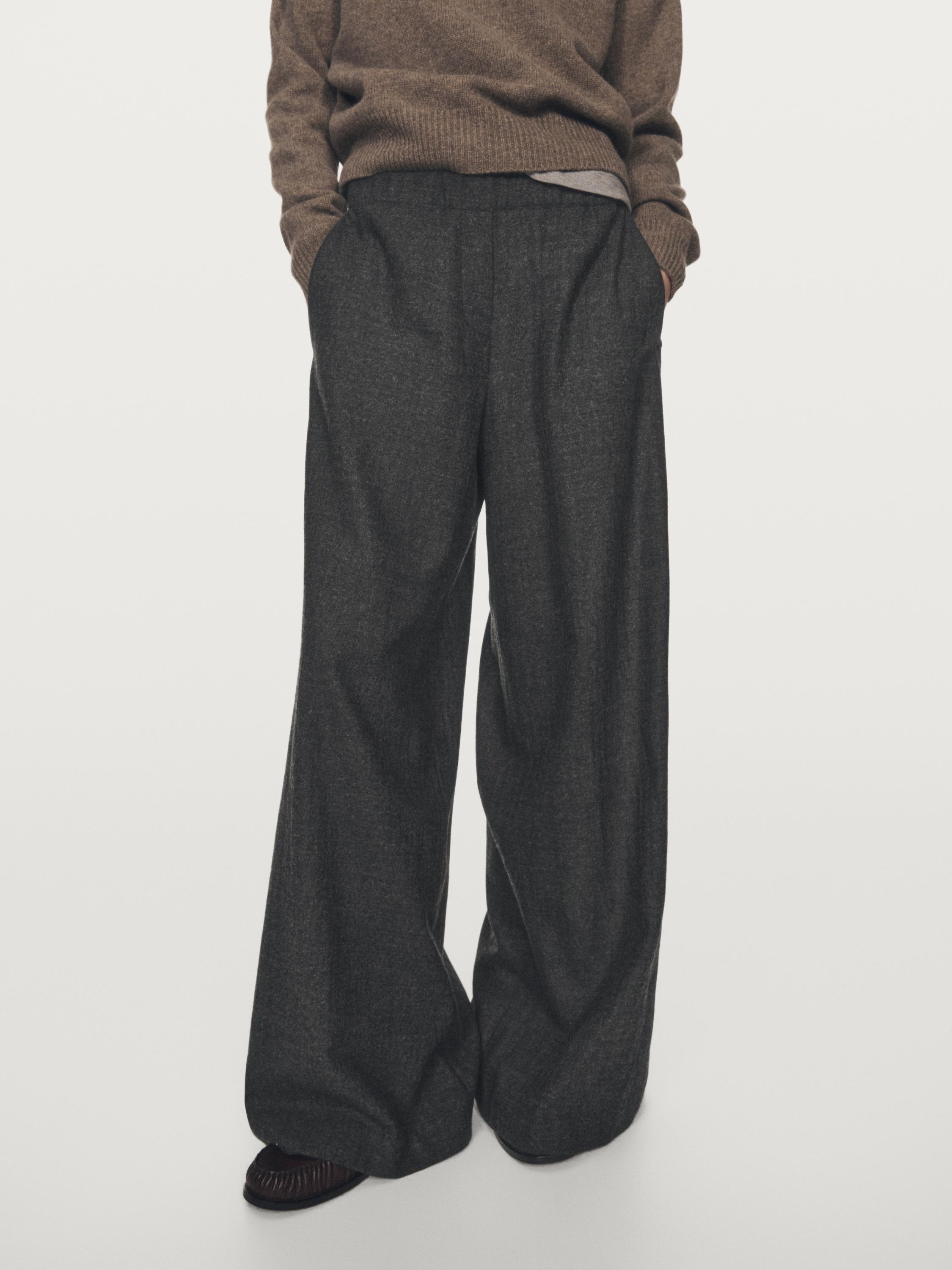 Massimo Dutti Брюки широкие, текстурированные, из 100% шерсти, темно-серый