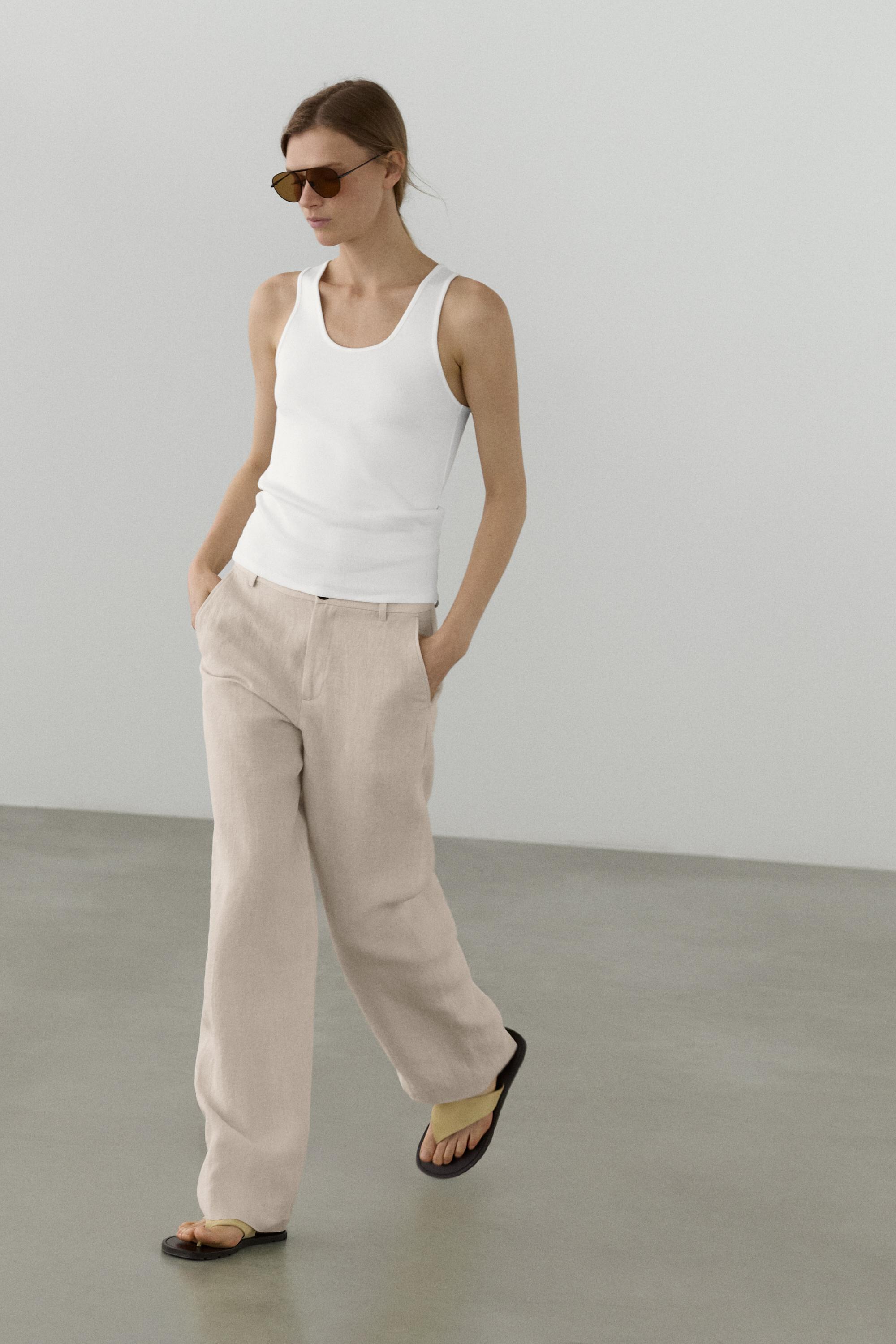 Massimo Dutti Брюки свободного кроя из 100% льна, экрю