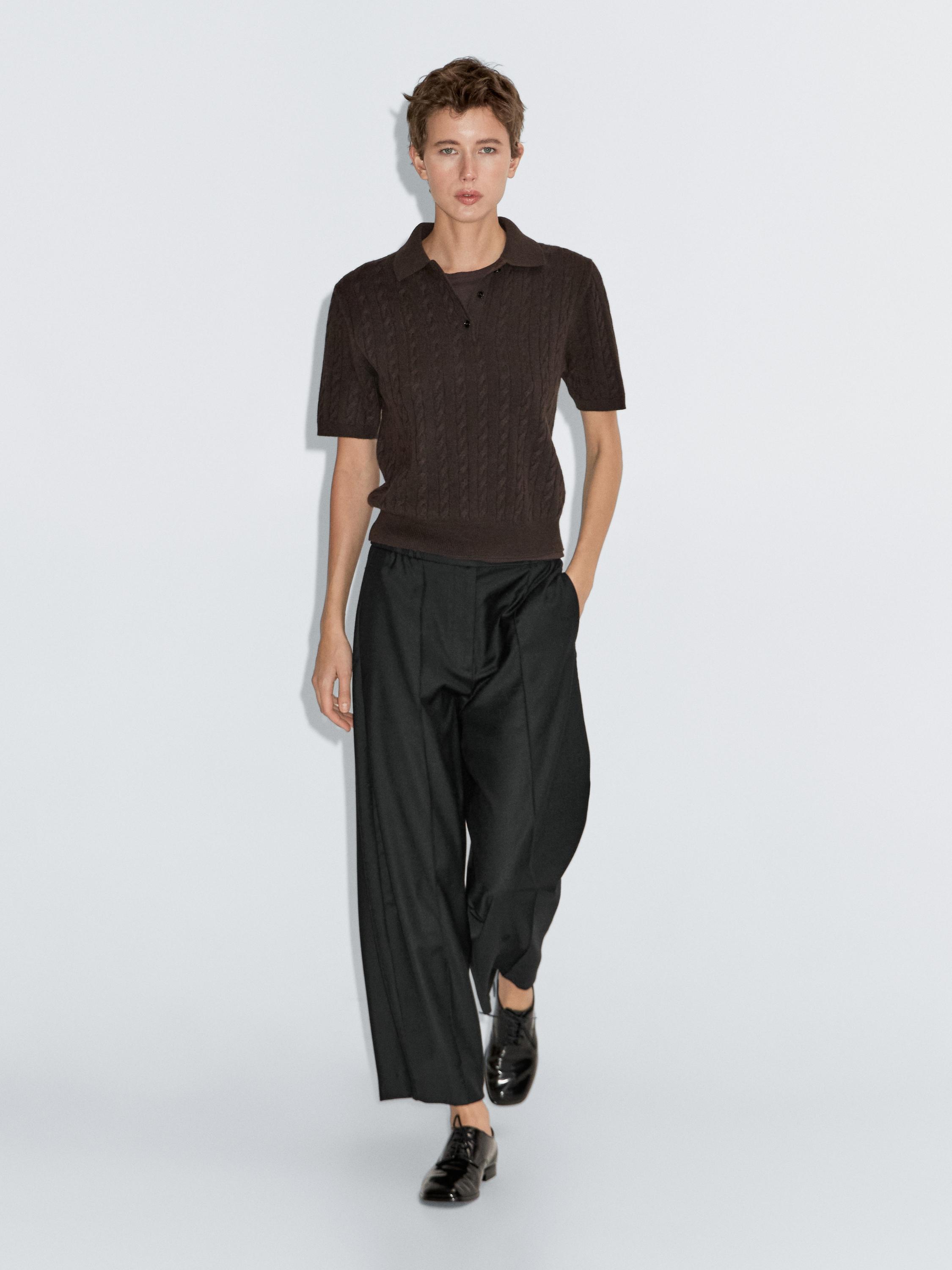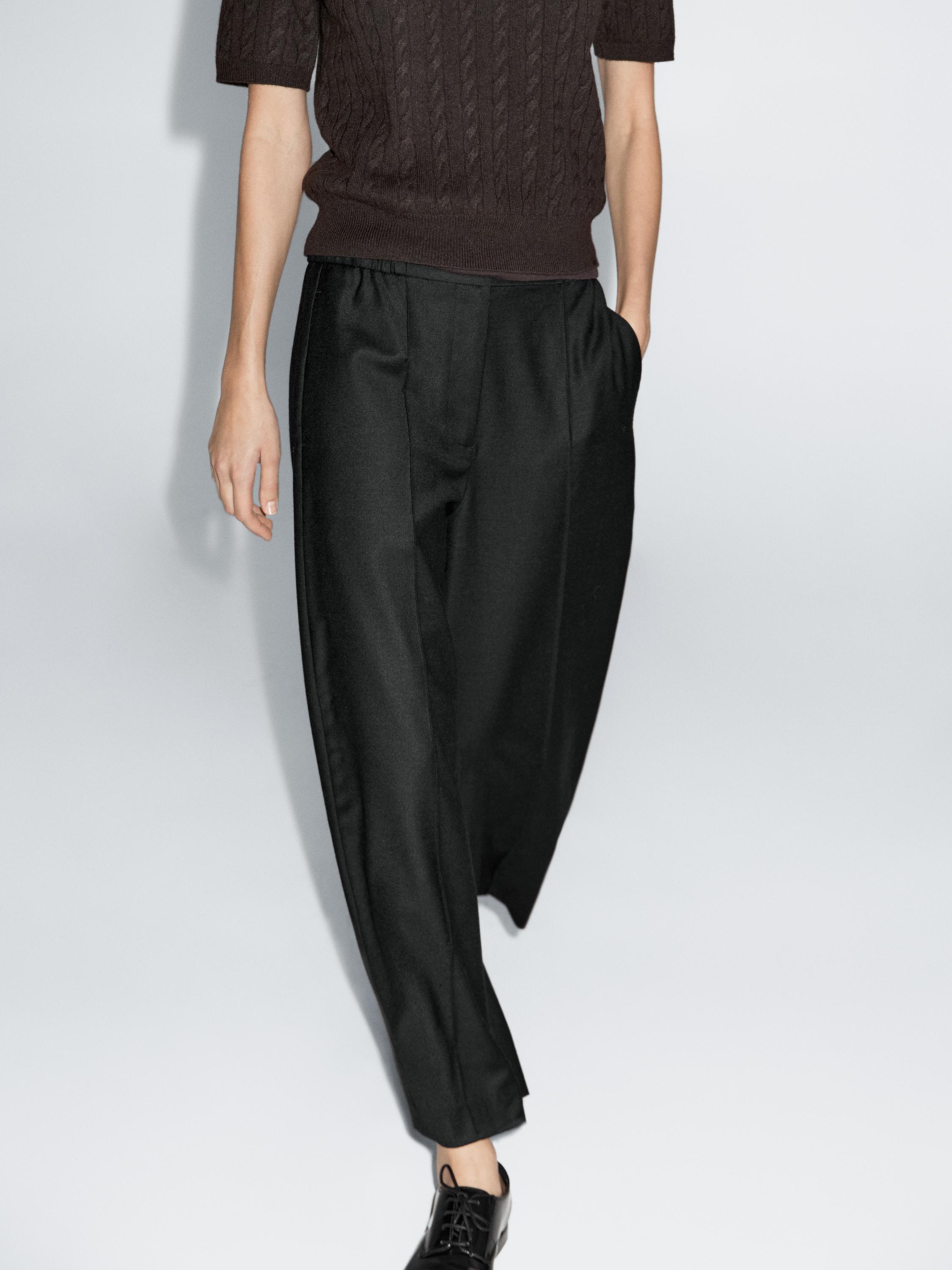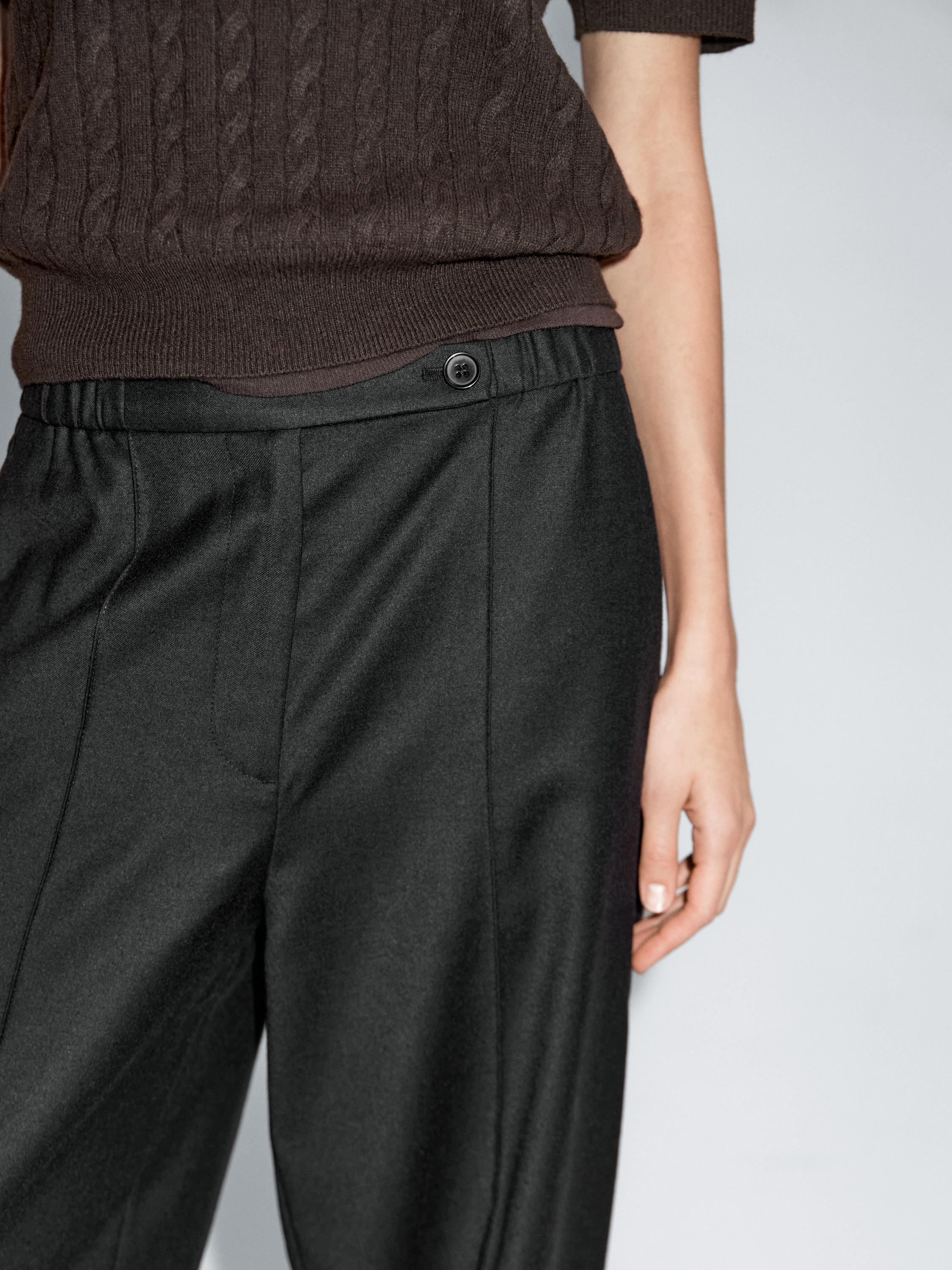 Брюки «бочка»: этот крой отличается широкими бедрами и более узкими штанинами к щиколотке, обеспечивая баланс комфорта и стиля. Идеально подходит для тех, кто ищет промежуточный вариант между облегающим и классическим. Застёжка-молния скрыта под планкой, пуговицей и ремнём на пуговицах. Эластичный пояс. Два боковых кармана. Изготовлены из смесовой шерсти.