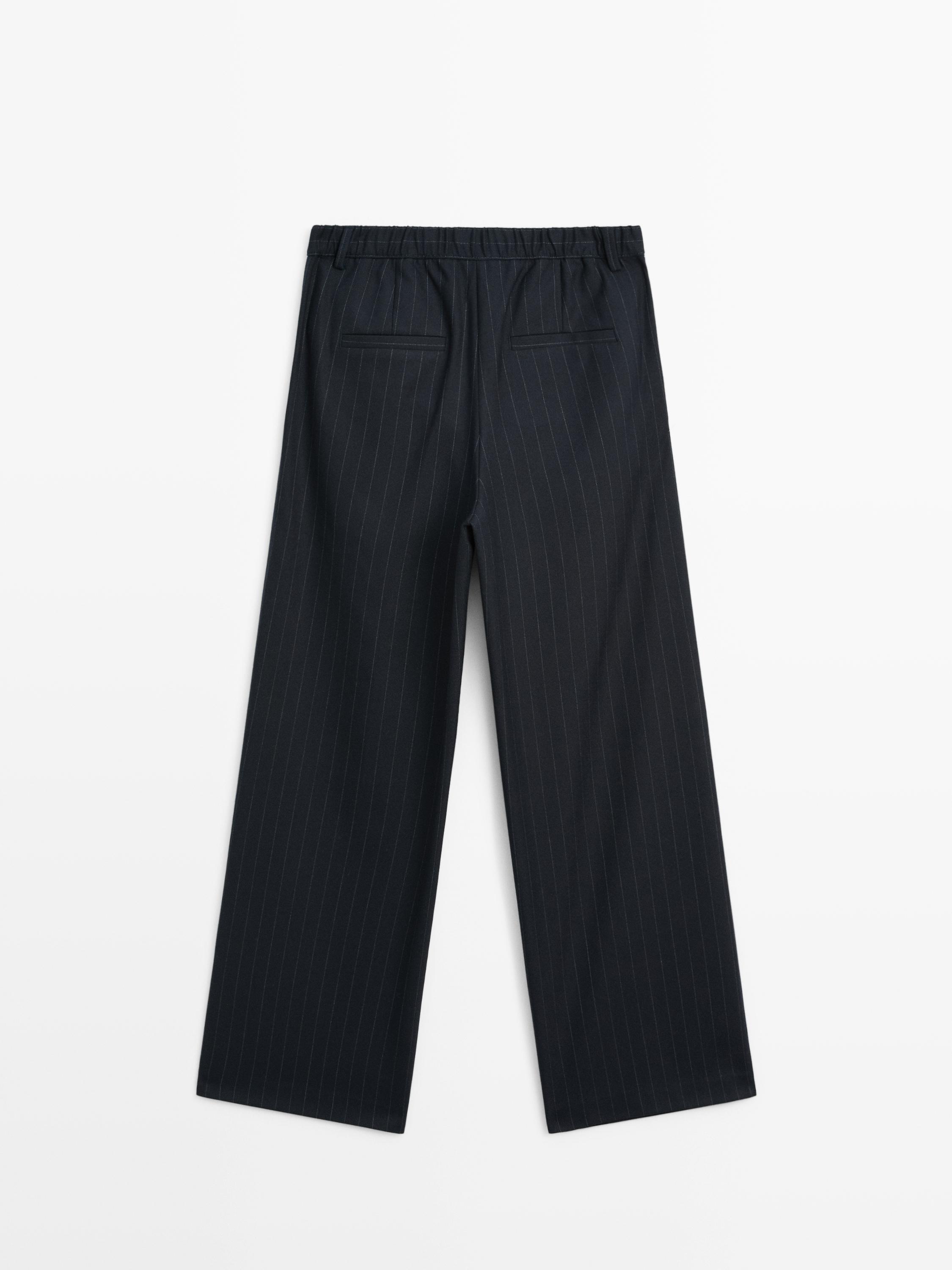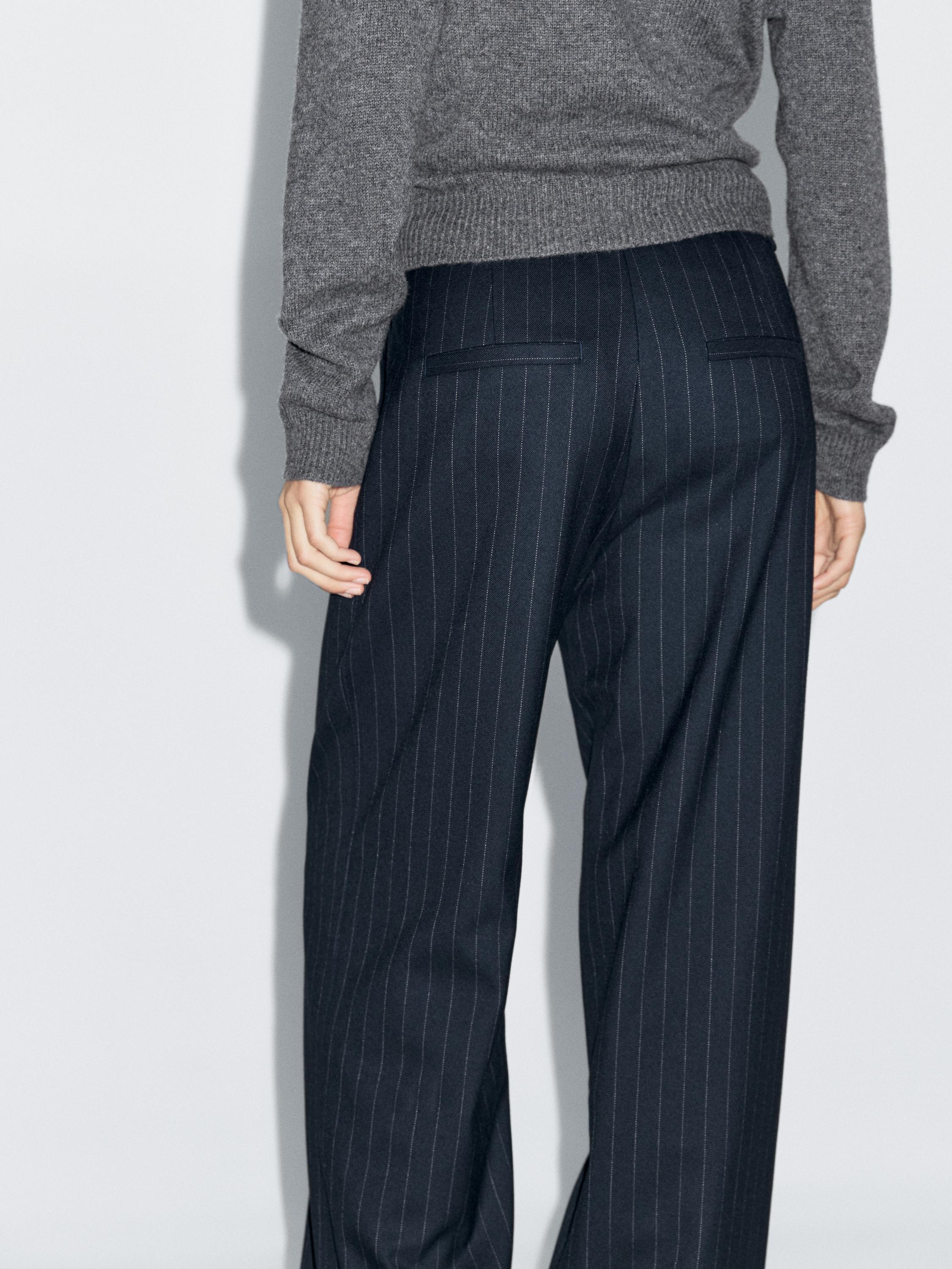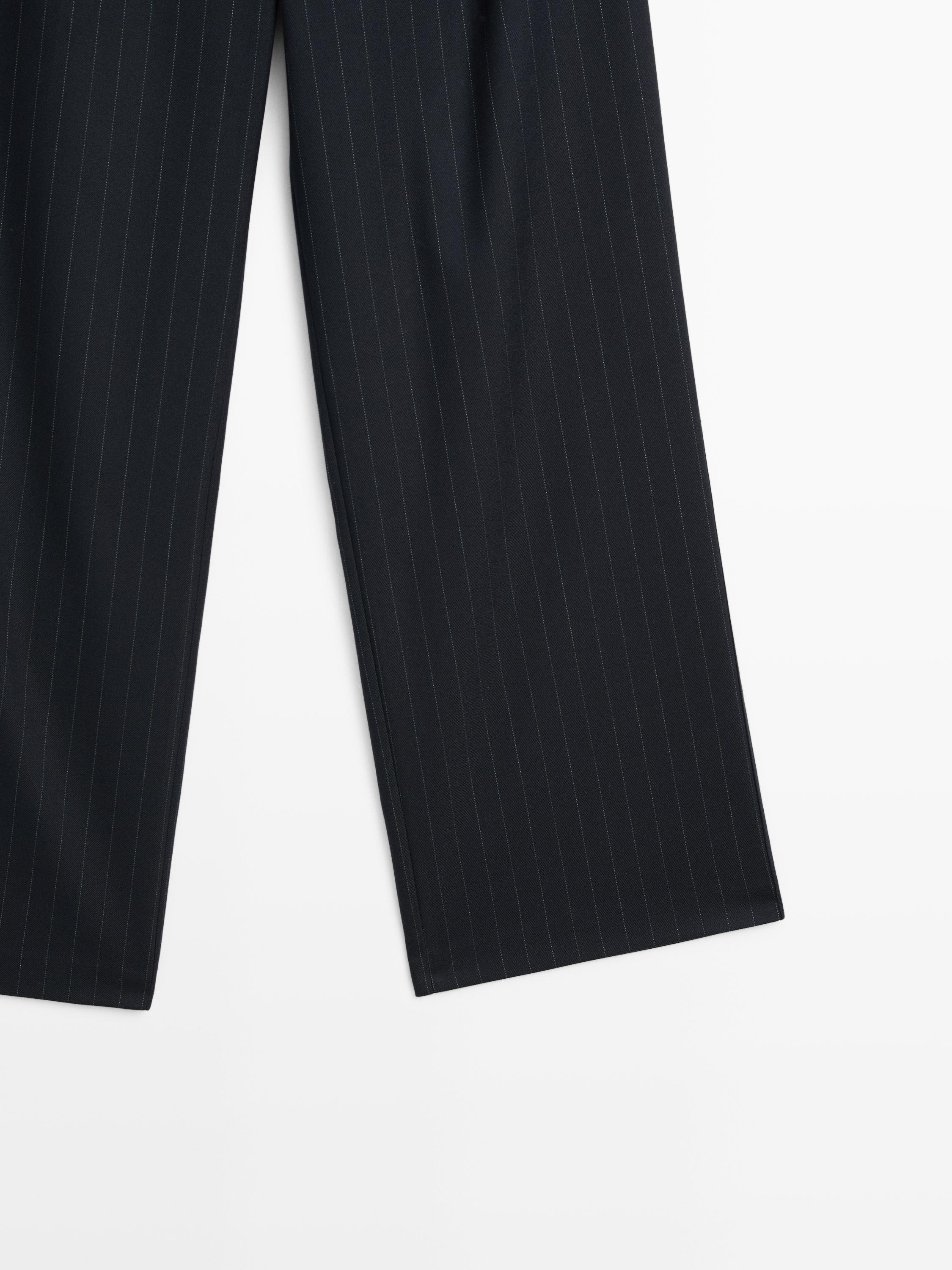 Massimo Dutti Брюки в тонкую полоску с широкими штанинами, темно-синий