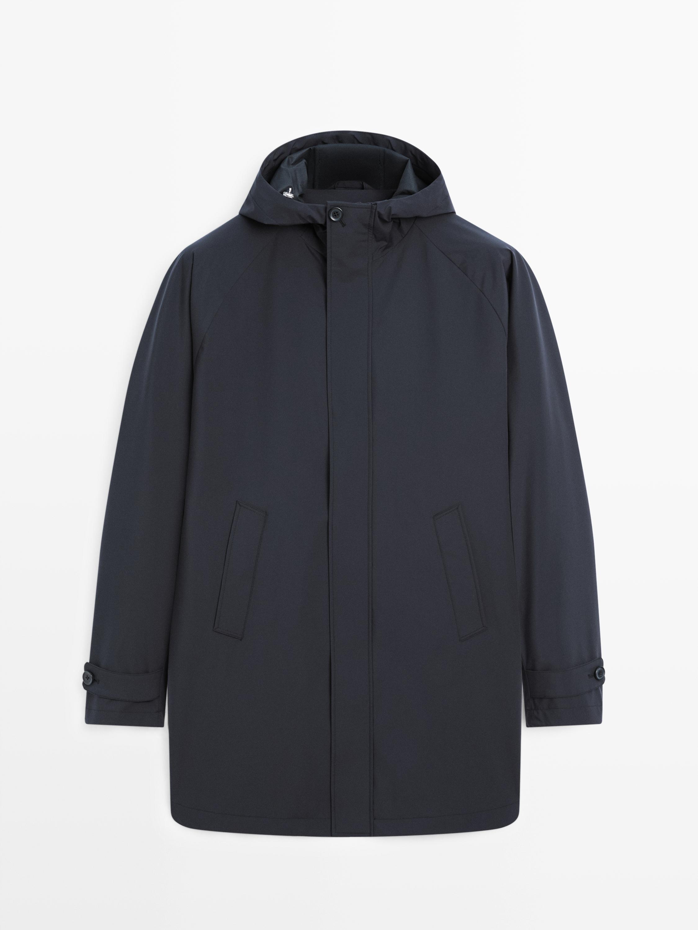 Massimo Dutti Длинная парка с капюшоном, темно-синий