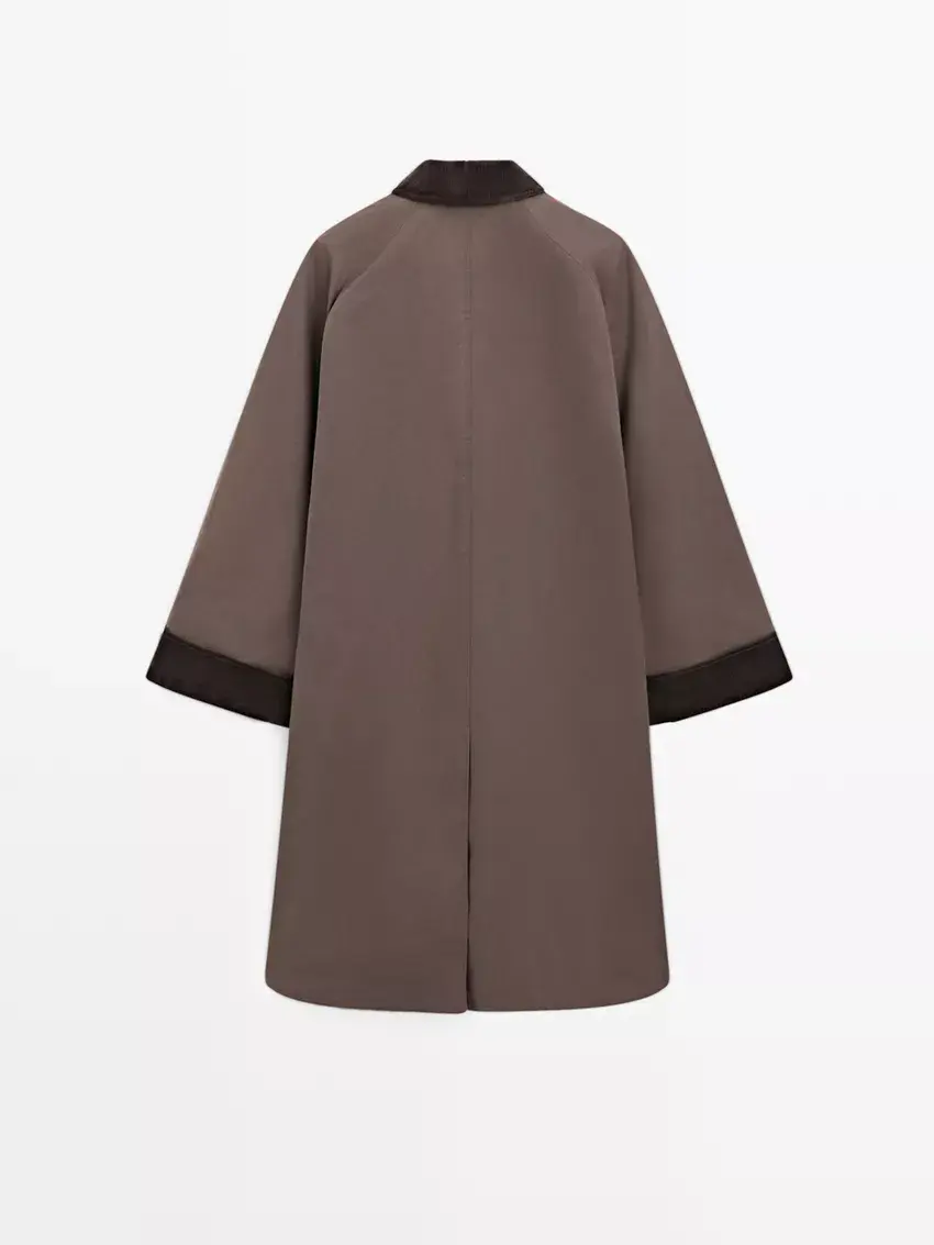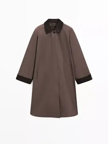 Massimo Dutti Длинная парка с вощеным покрытием и вельветовыми деталями, коричневый