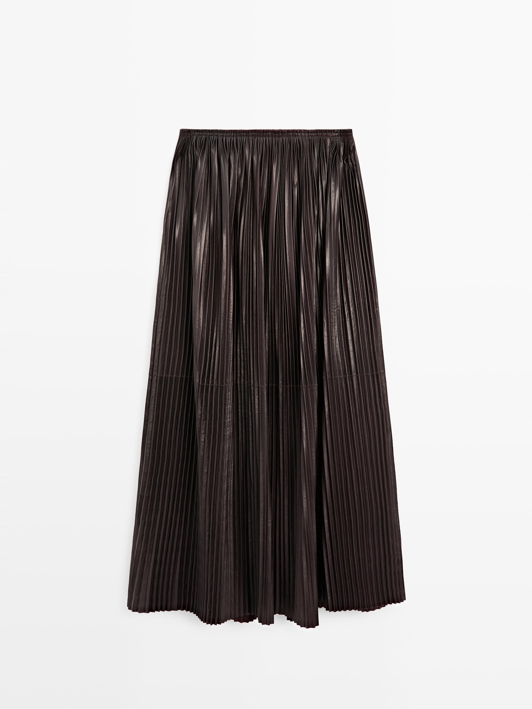 Massimo Dutti Длинная плиссированная юбка из кожи наппа - Limited Edition, коричневый