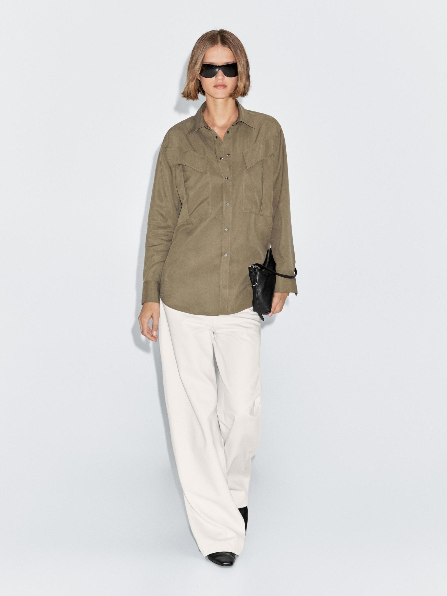 Massimo Dutti Длинная рубашка с карманами, хаки