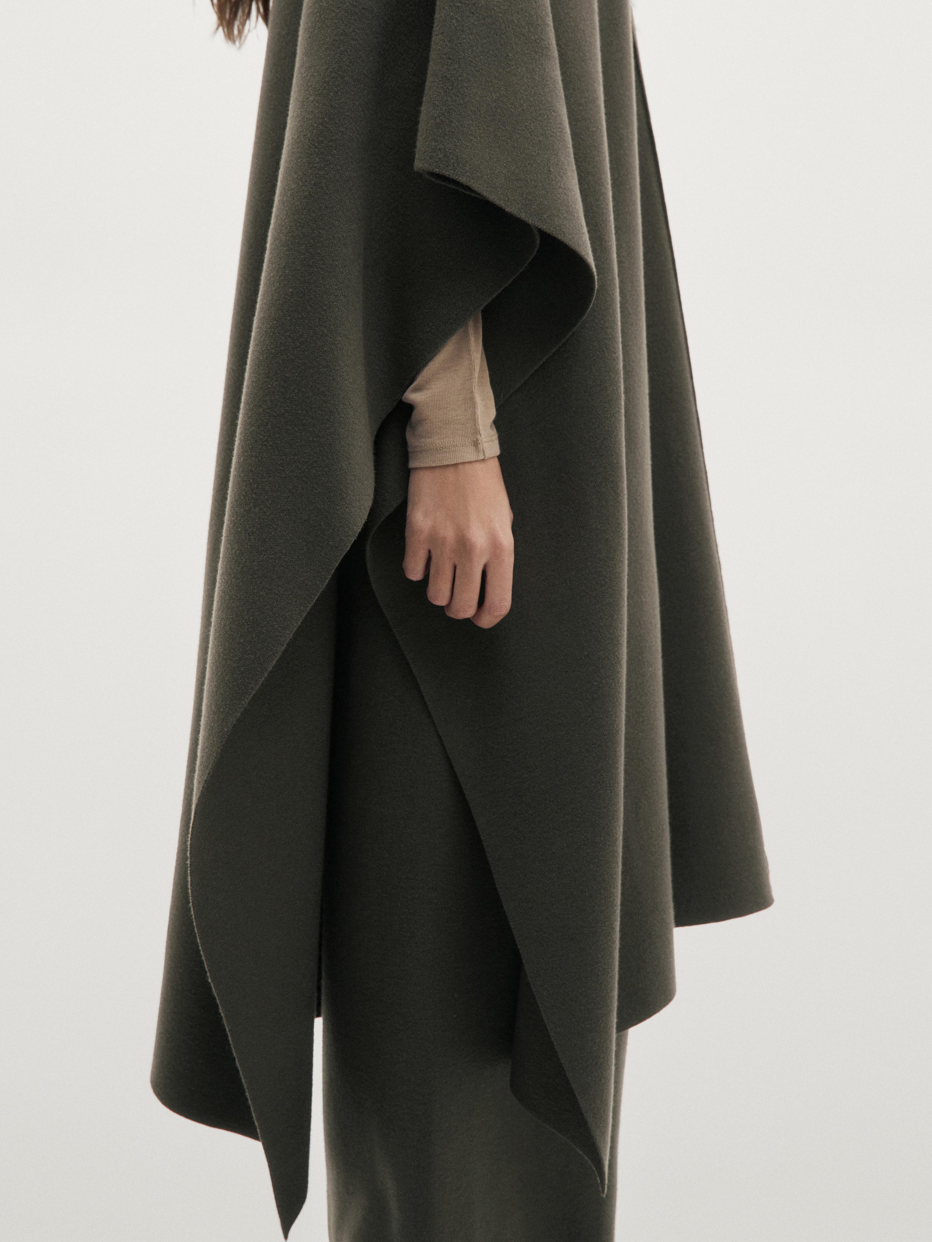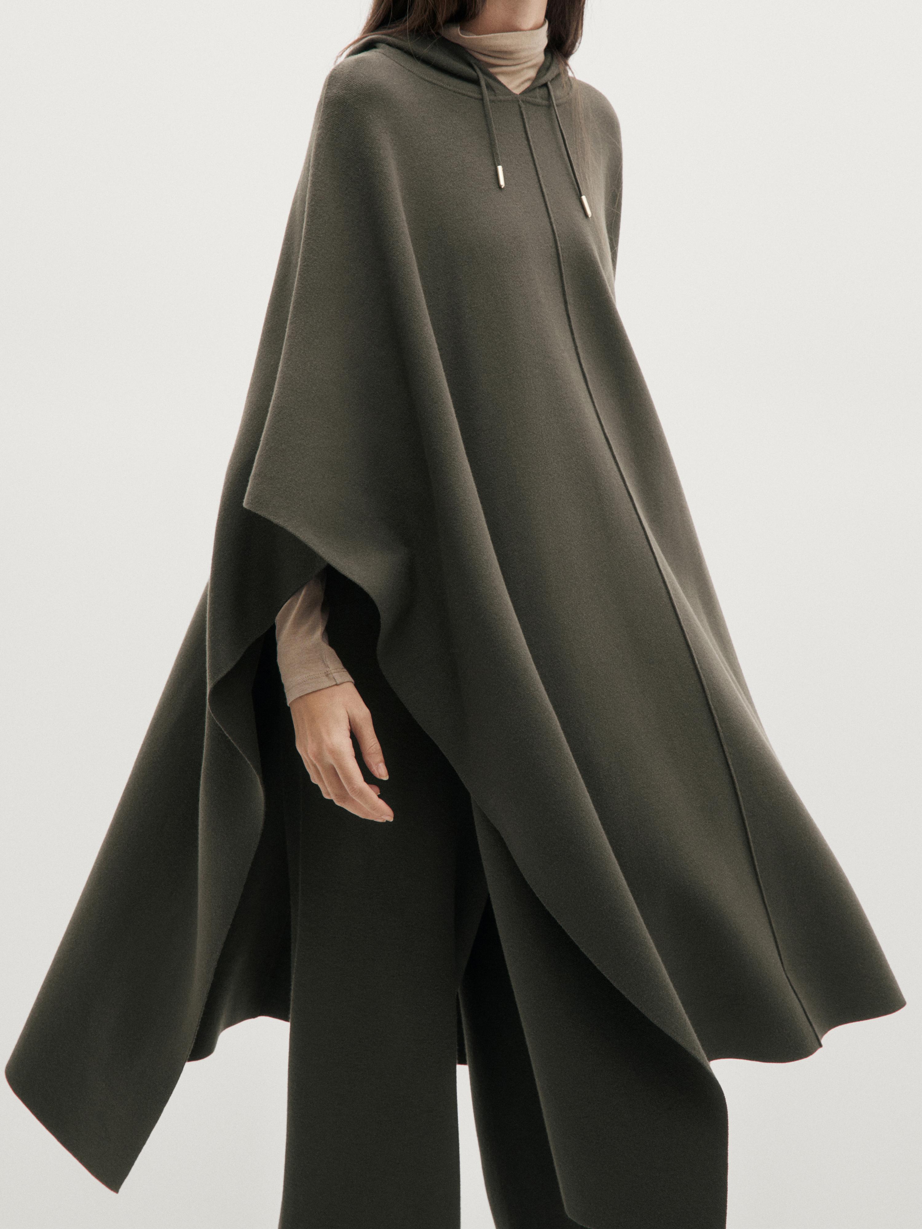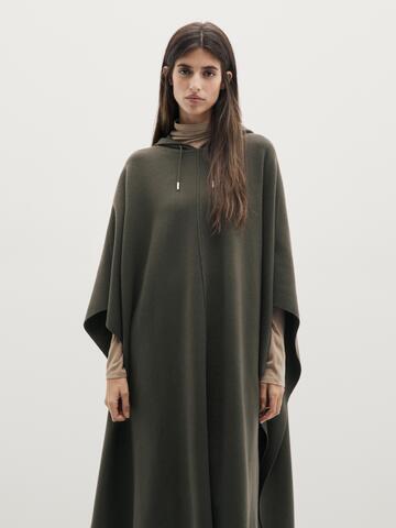 Massimo Dutti Длинная вязаная накидка с регулируемым капюшоном, серовато-зеленый