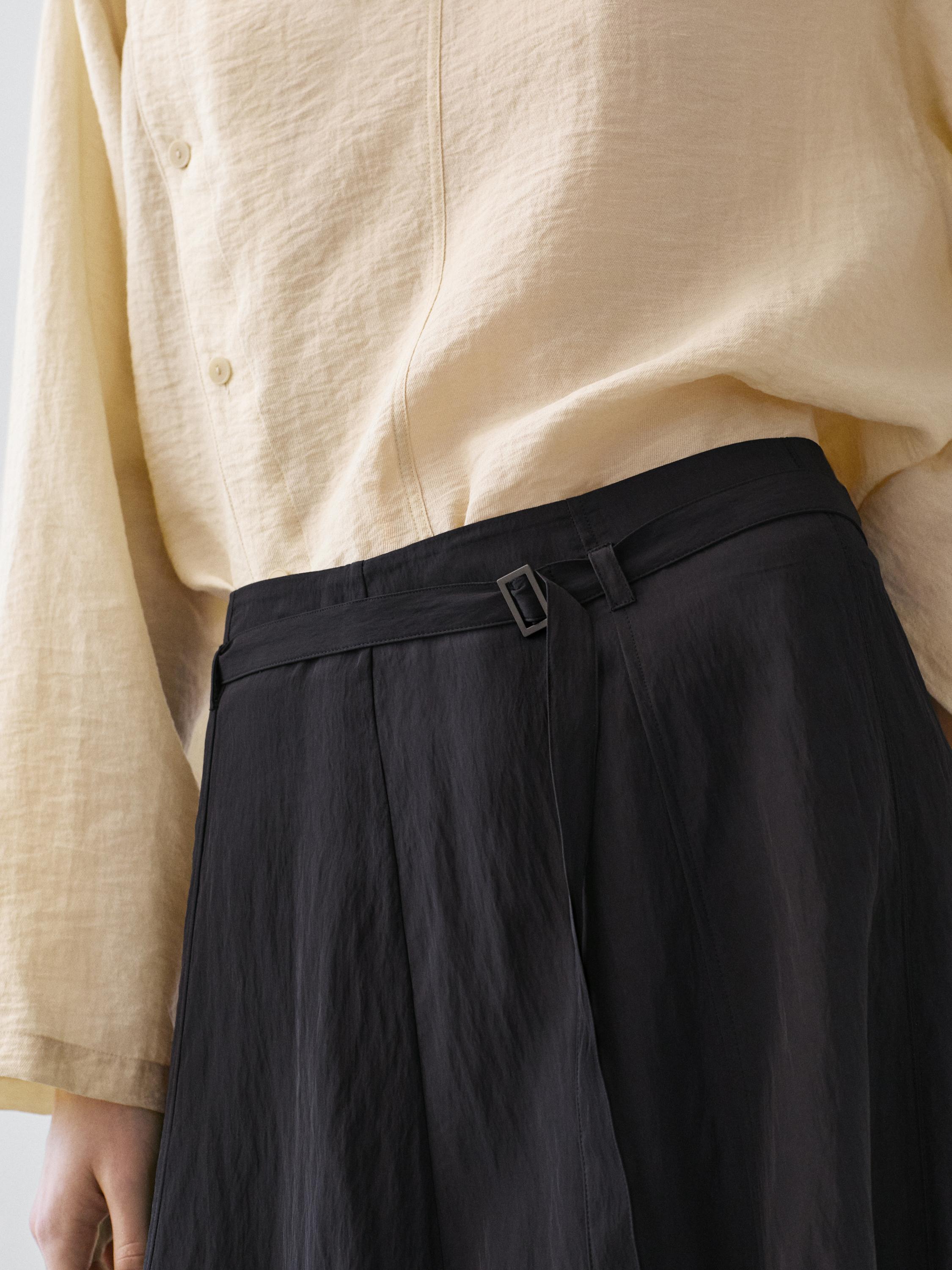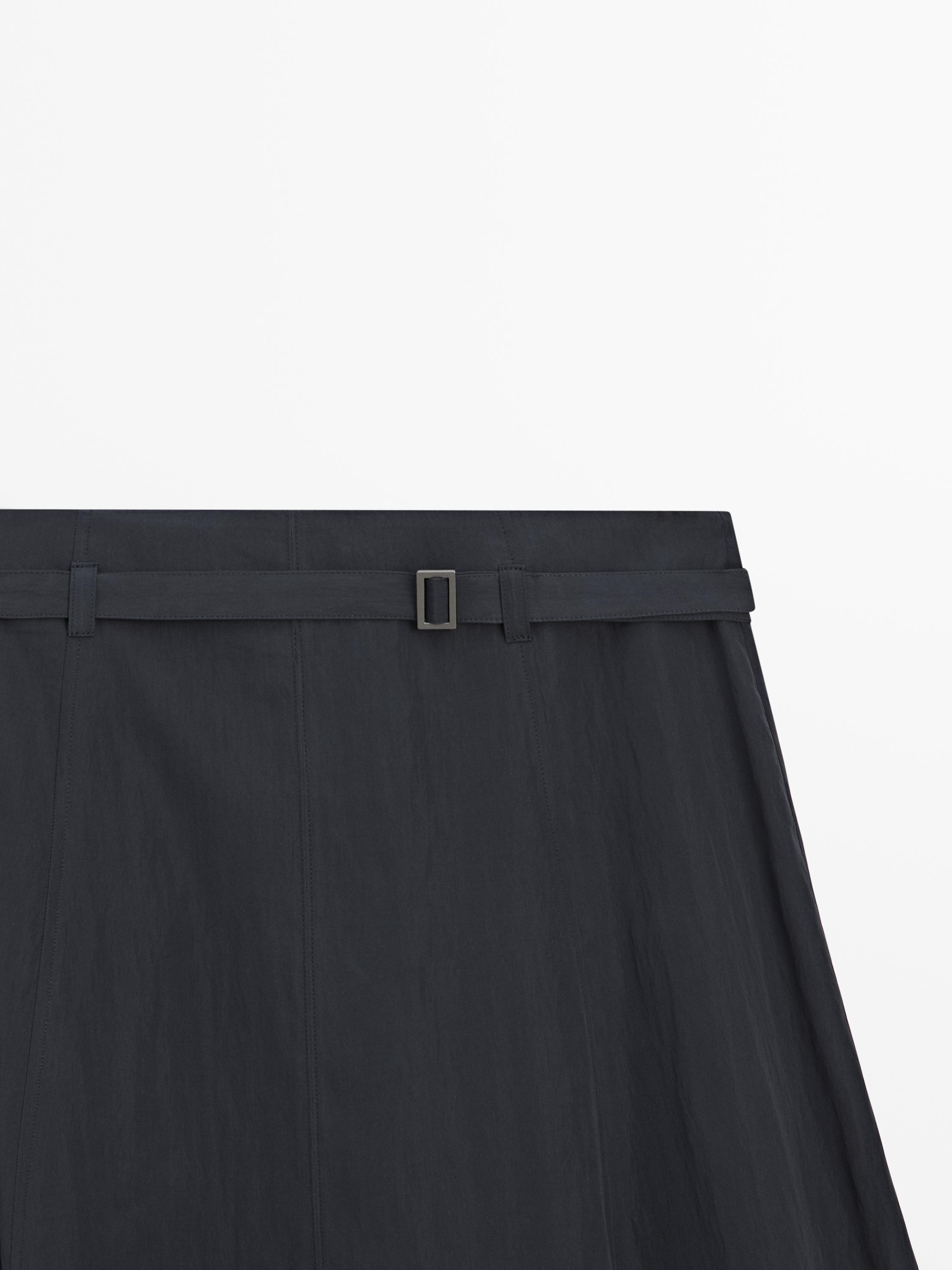 Massimo Dutti Длинная юбка с поясом, серо-синий