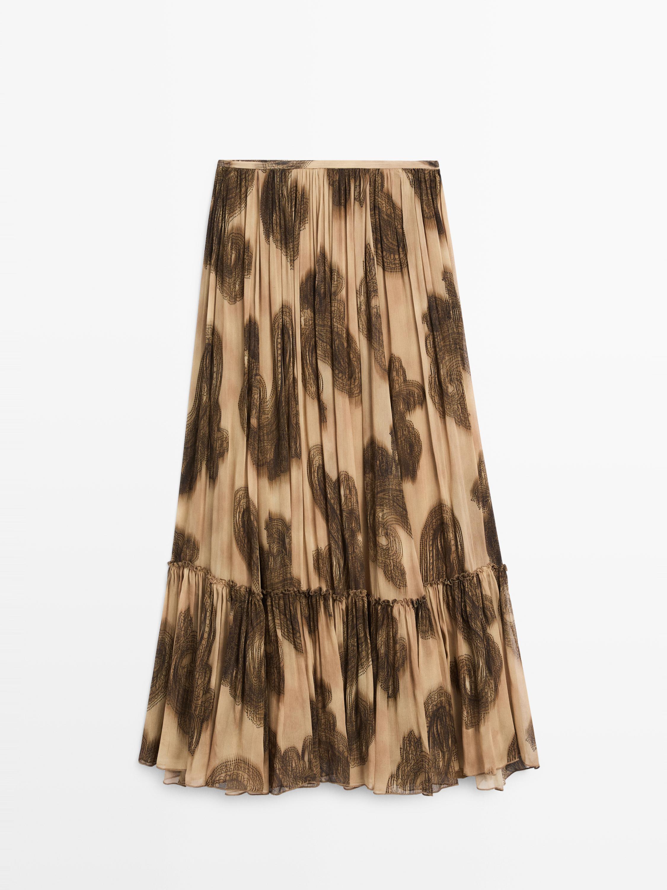 Длинная плиссированная юбка из струящейся ткани. Узор «пейсли».