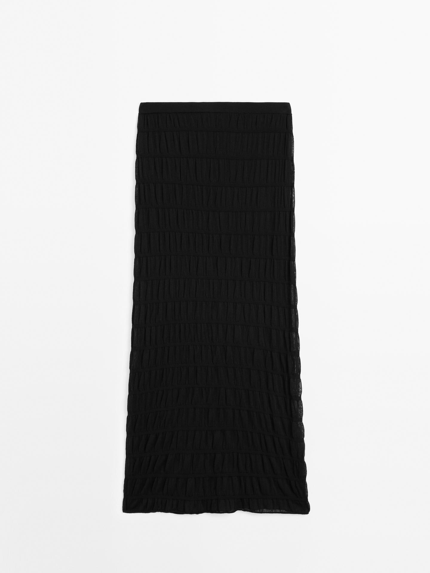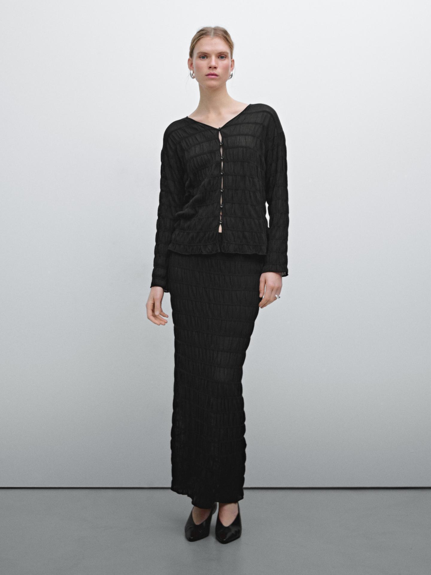 Эластичная деталь на поясе. С подкладкой. Эластичная ткань. Со сборками.