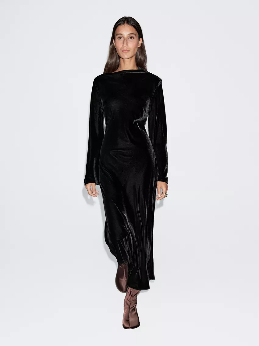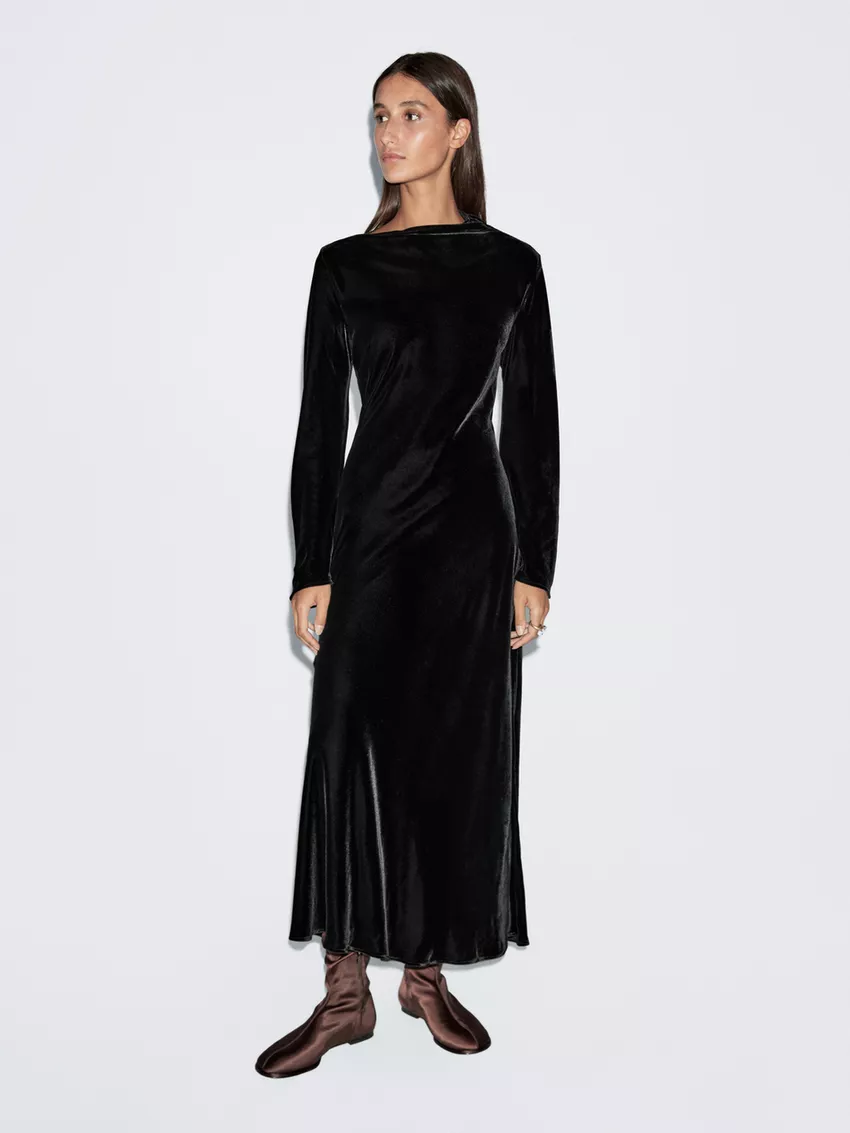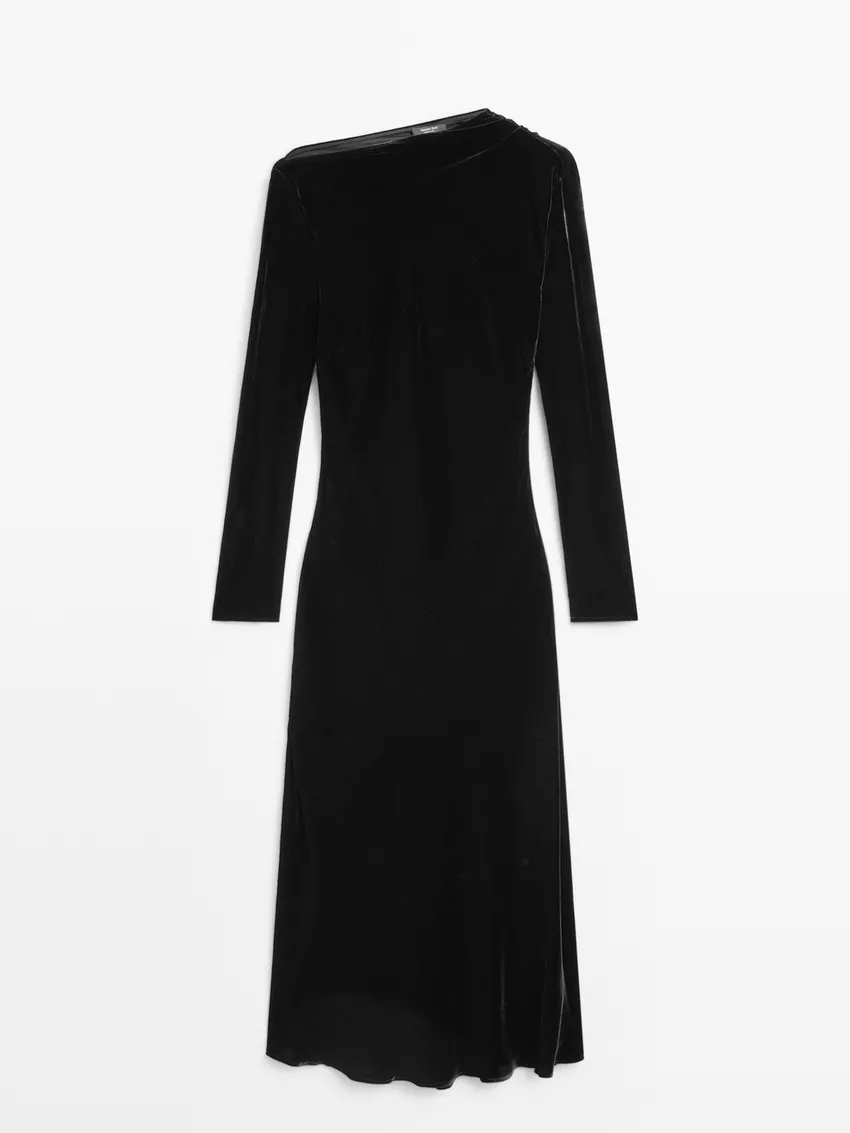 Massimo Dutti Длинное бархатное платье с вырезом-лодочкой, черный