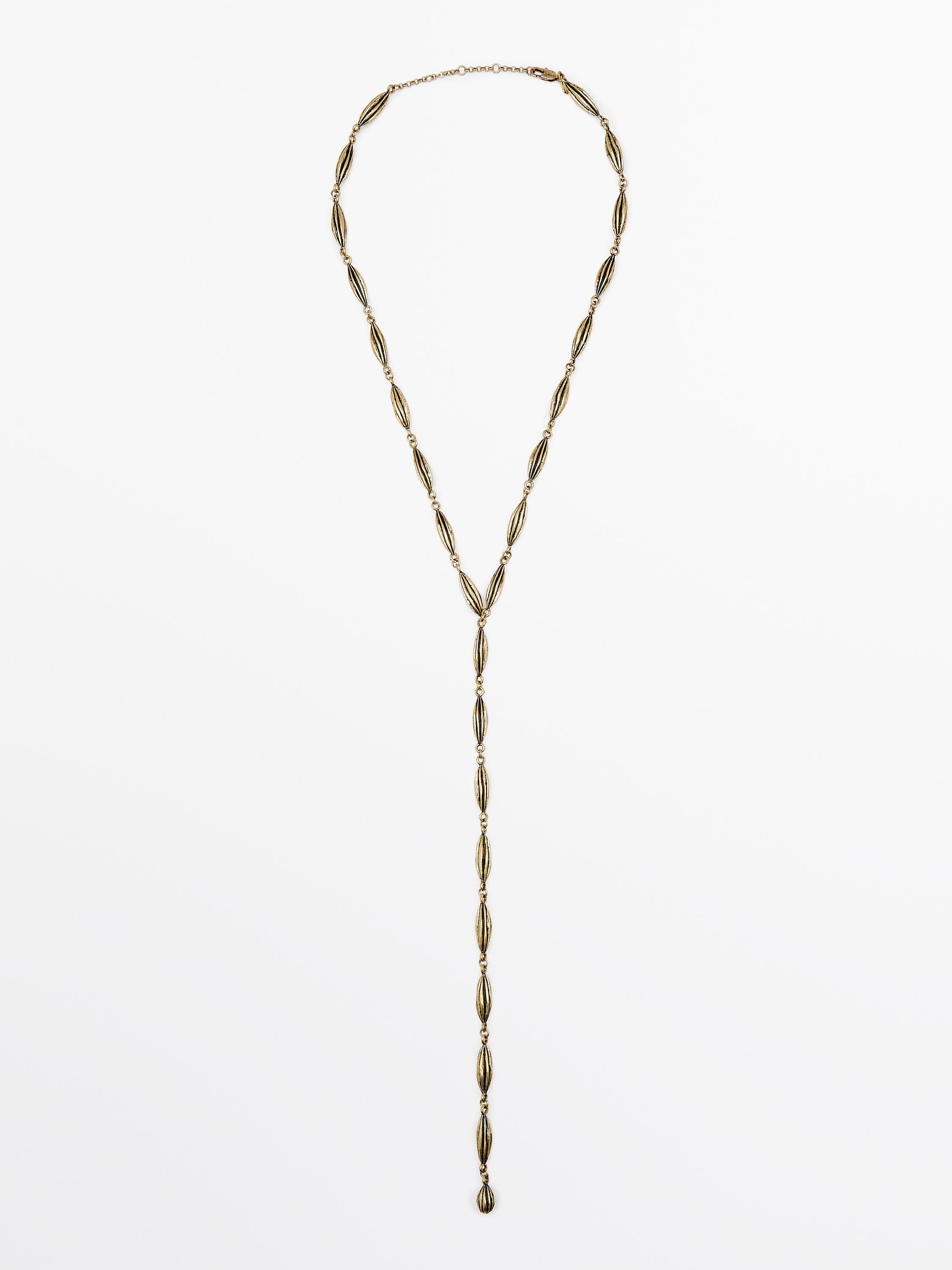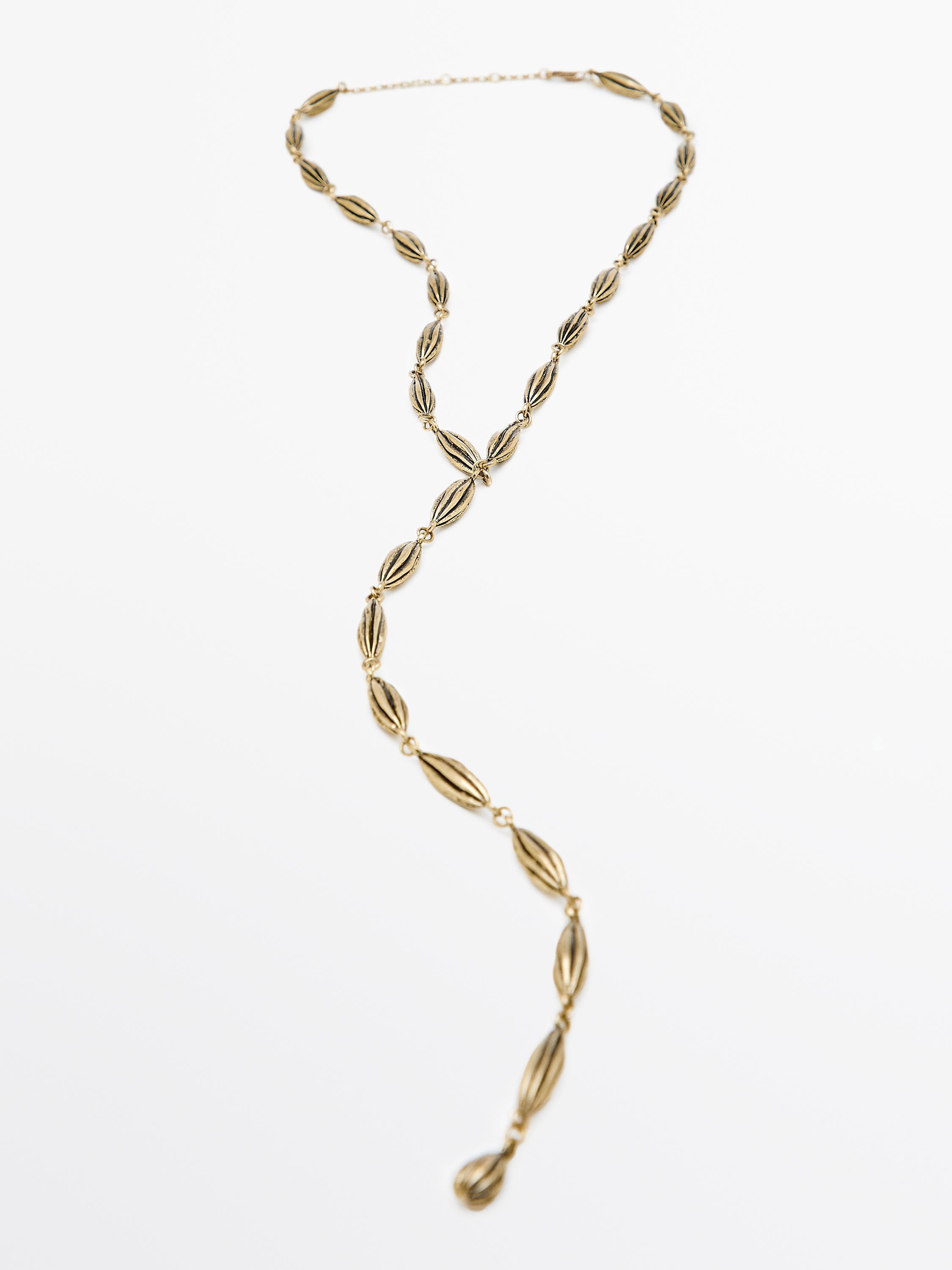 Massimo Dutti Длинное ожерелье с деталями в форме зерен какао, золотистый