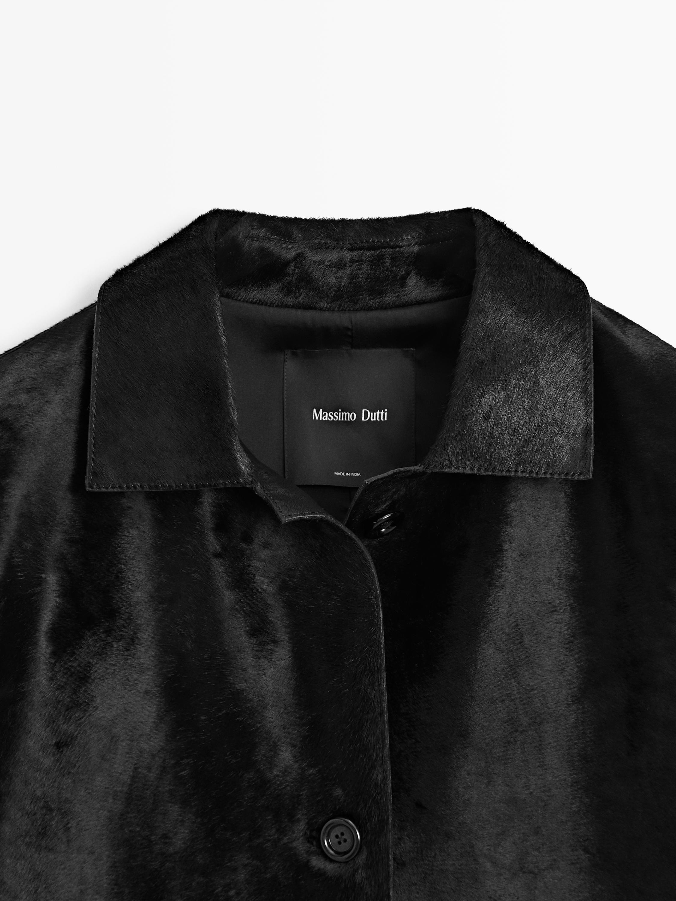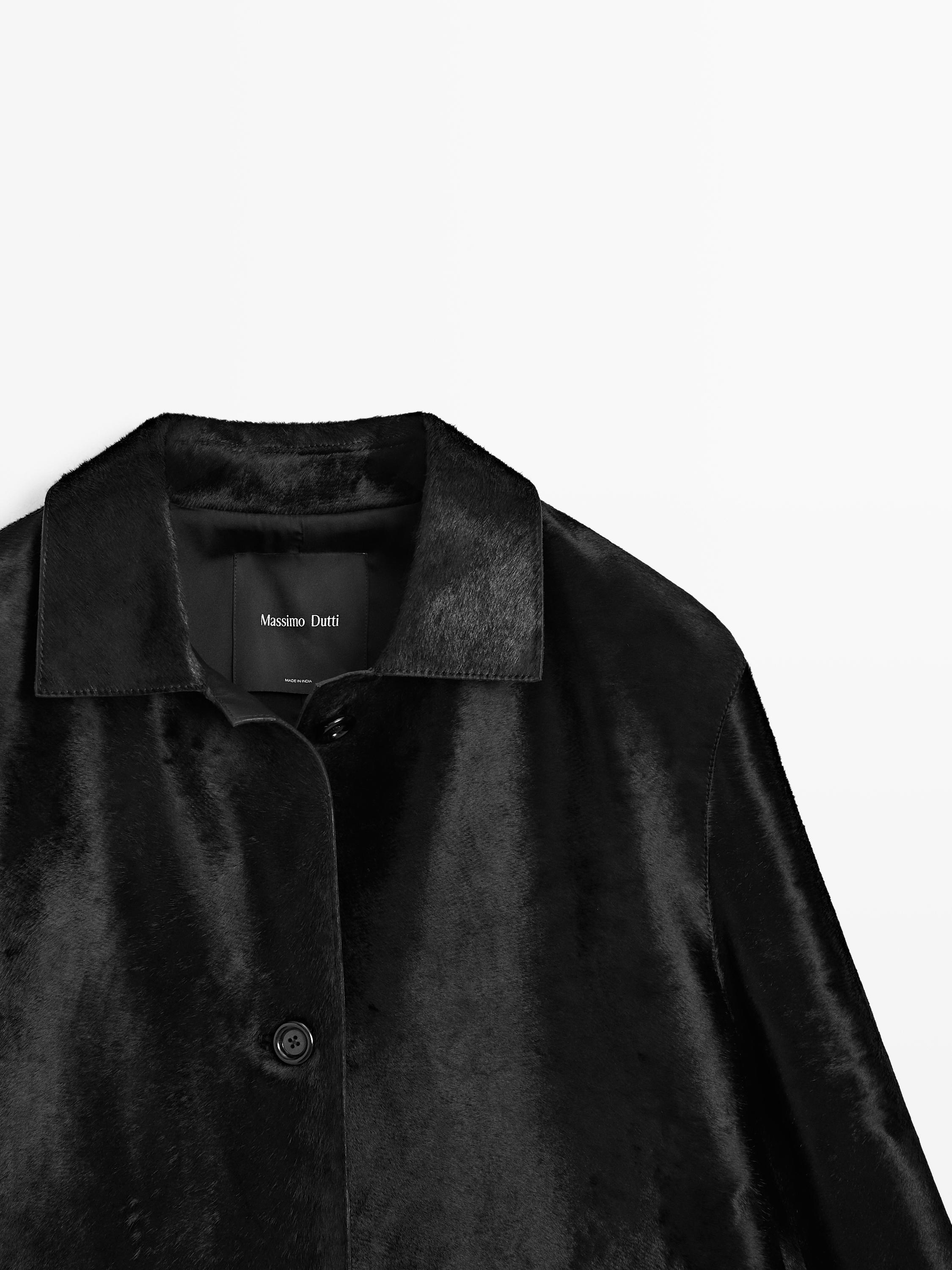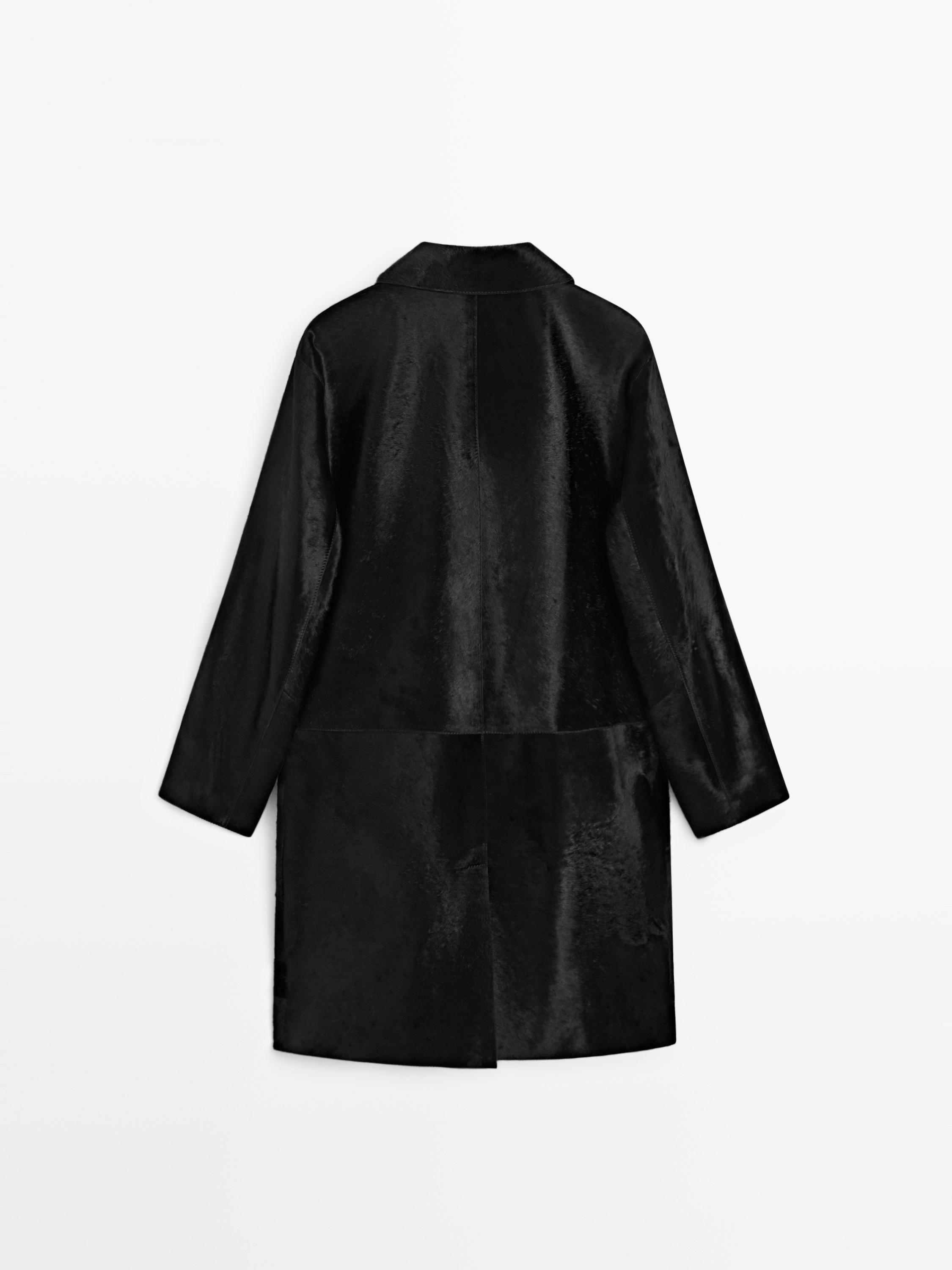 Massimo Dutti Длинное пальто из овечьей кожи, черный