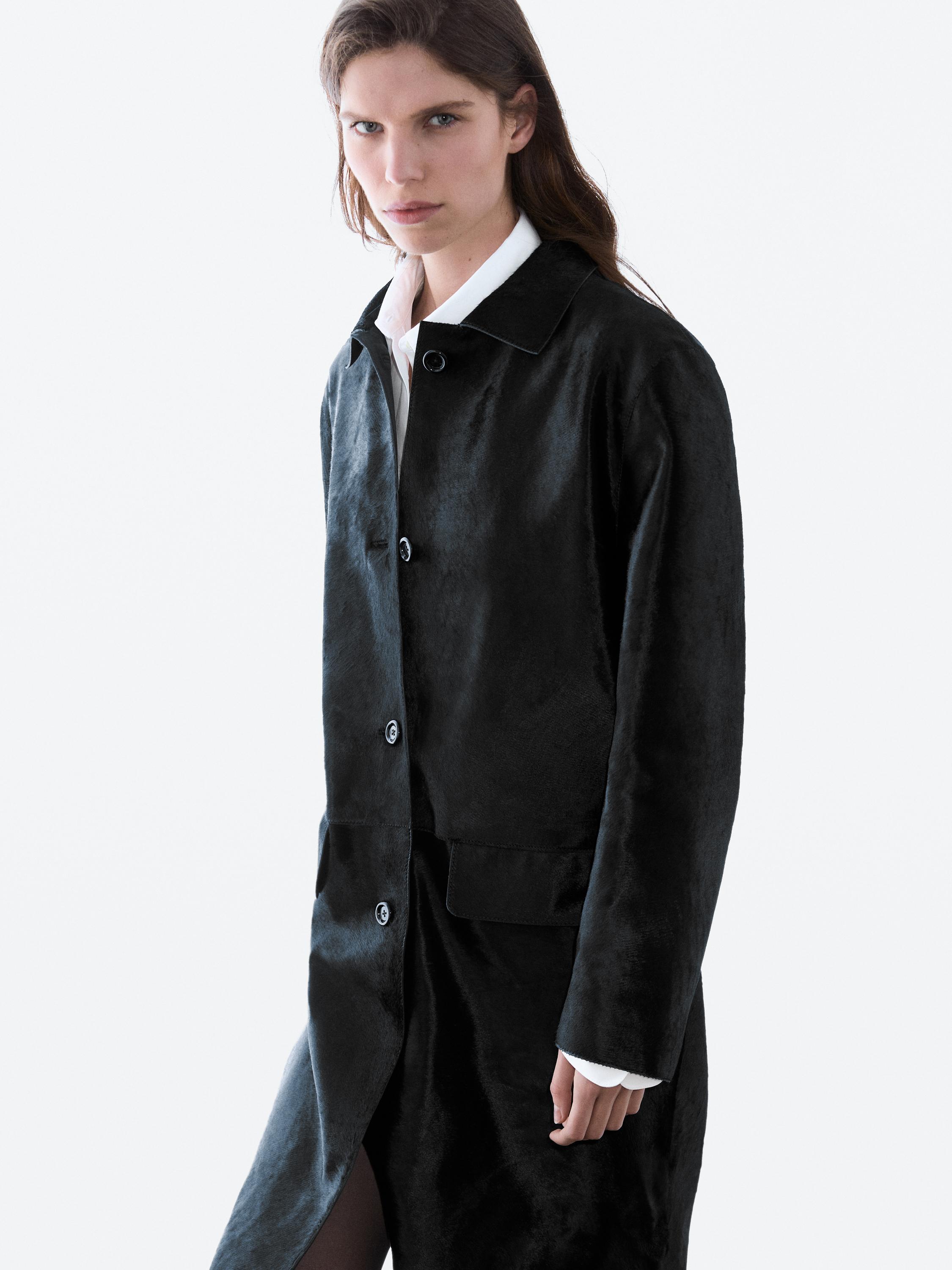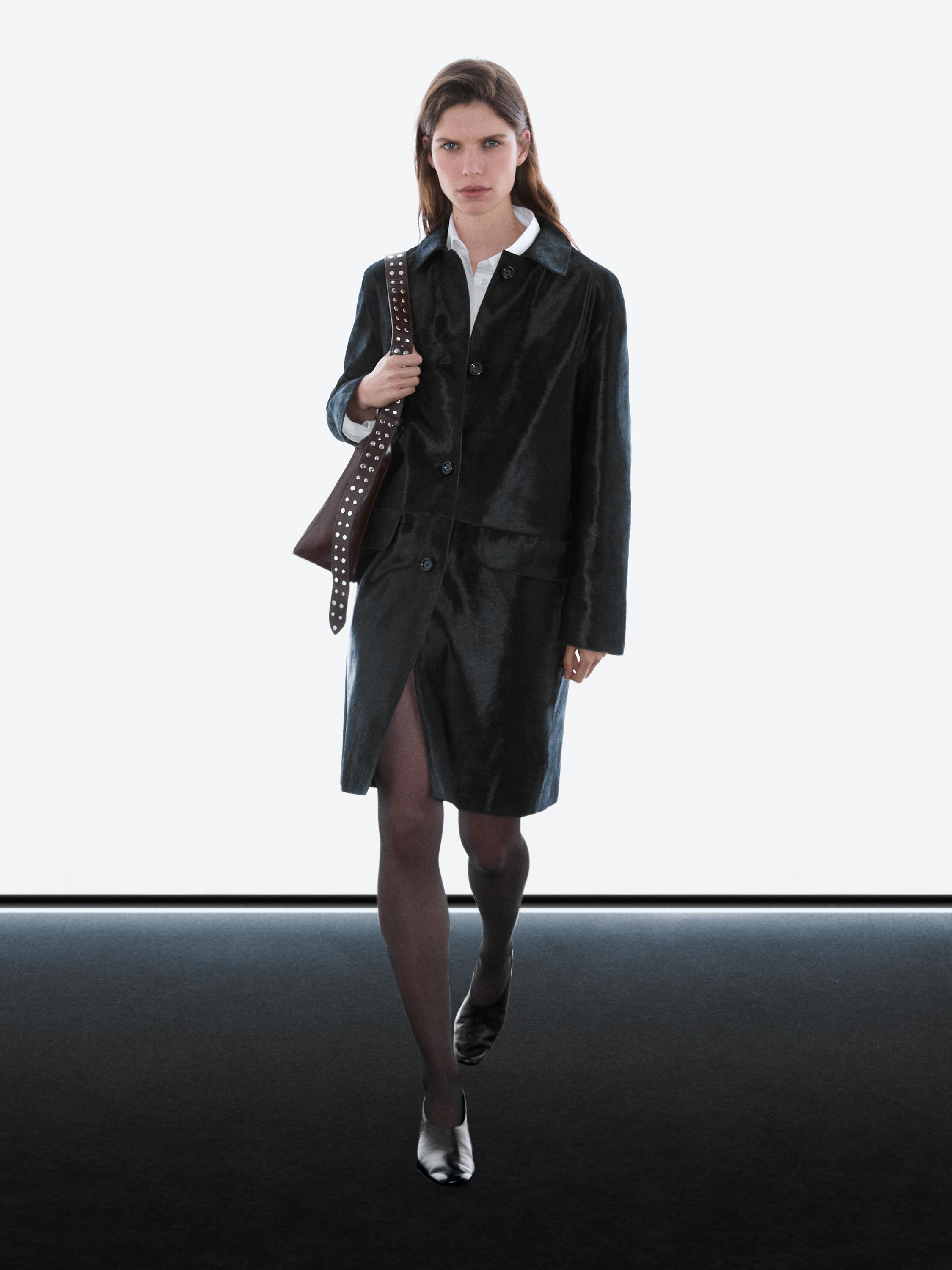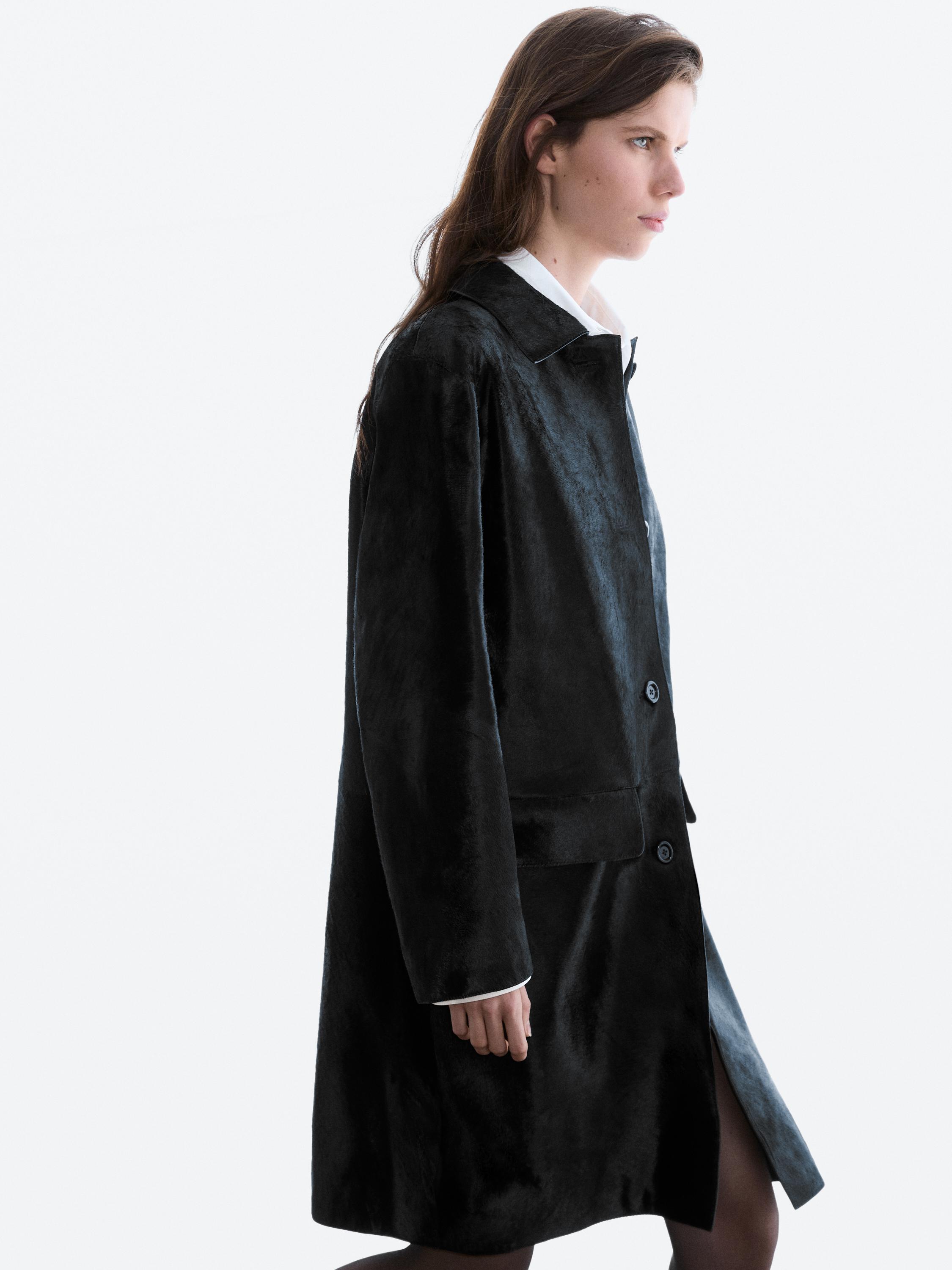 Massimo Dutti Длинное пальто из овечьей кожи, черный