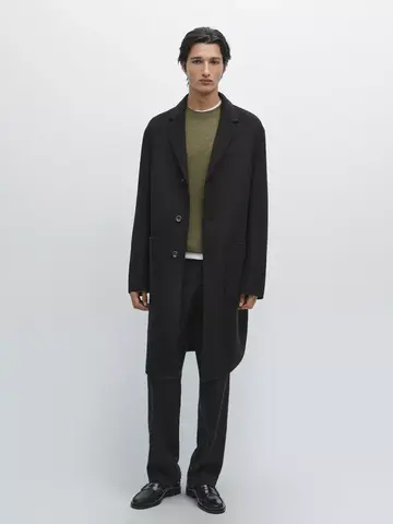 Massimo Dutti Длинное пальто из смесовой шерсти с воротником с лацканами, темно-серый