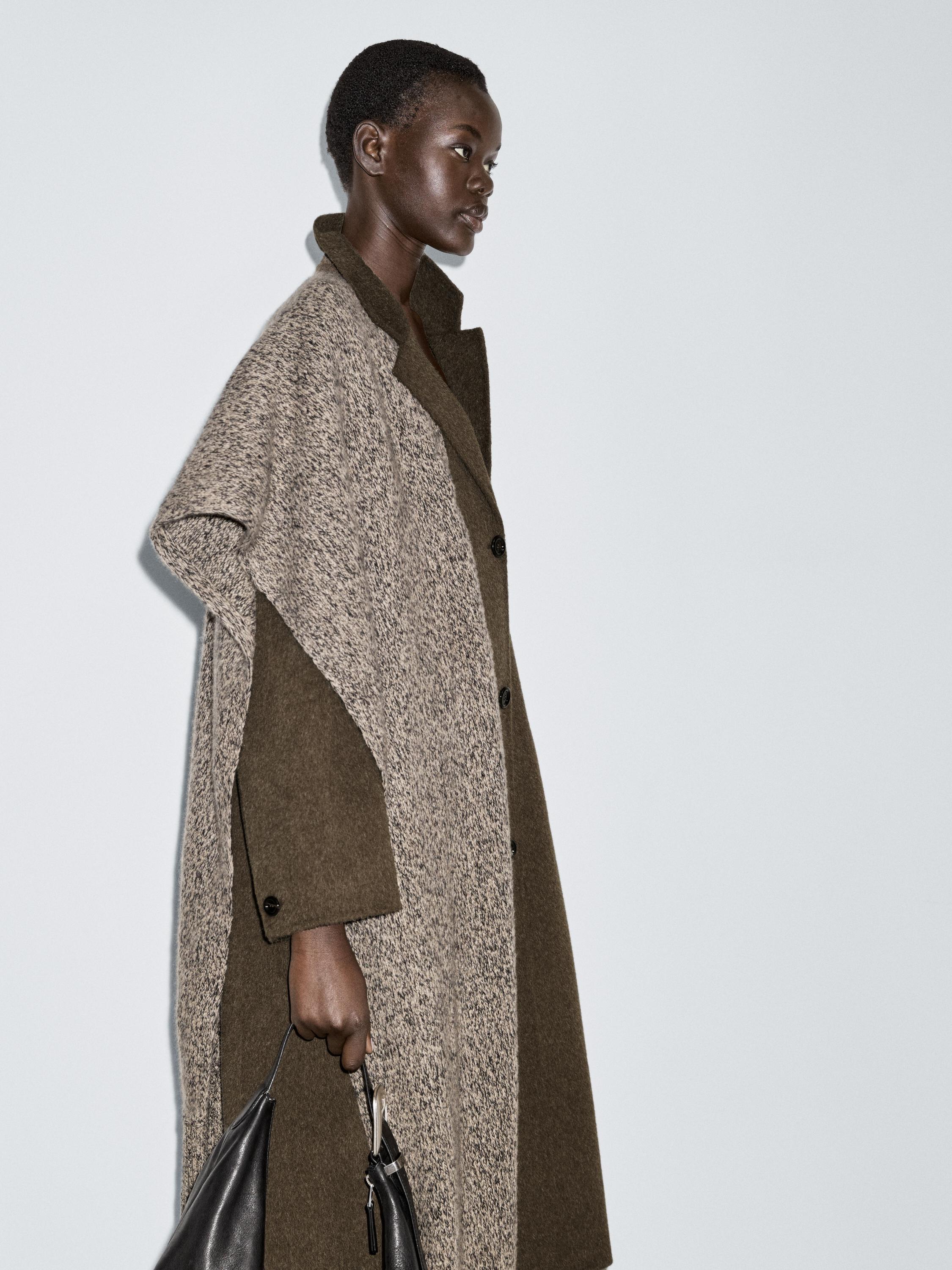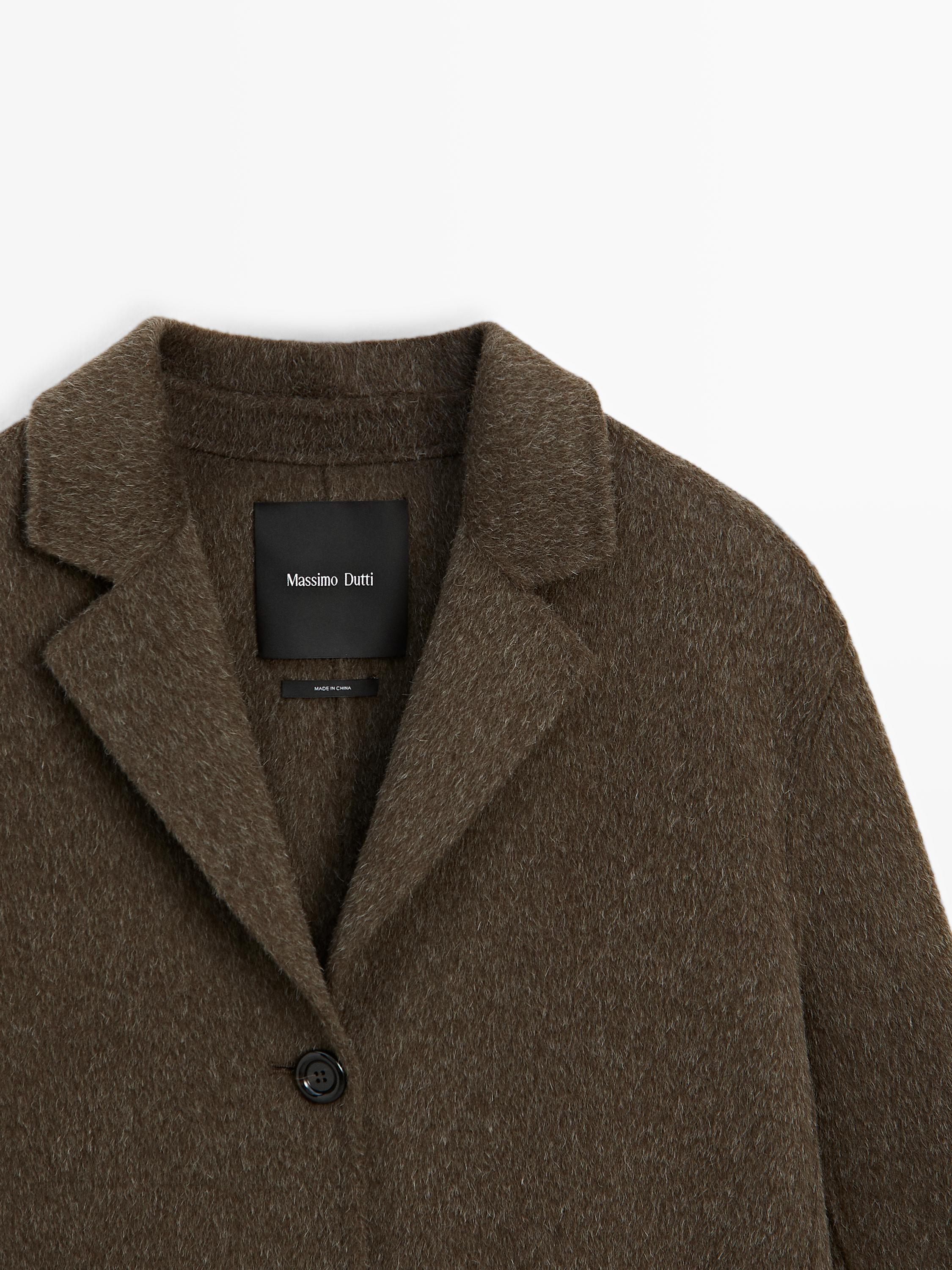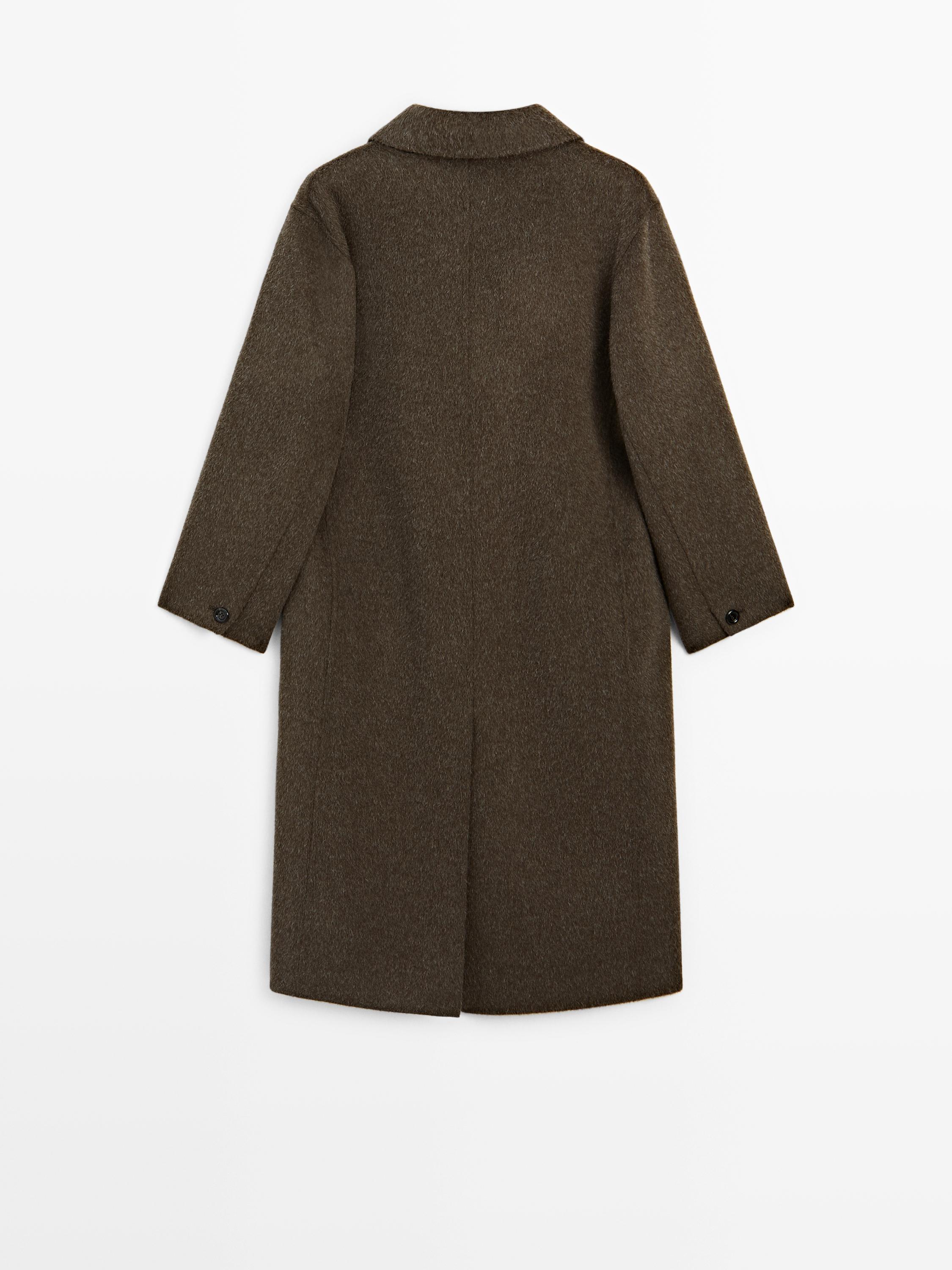 Massimo Dutti Длинное пальто из смесовой шерсти, темный хаки
