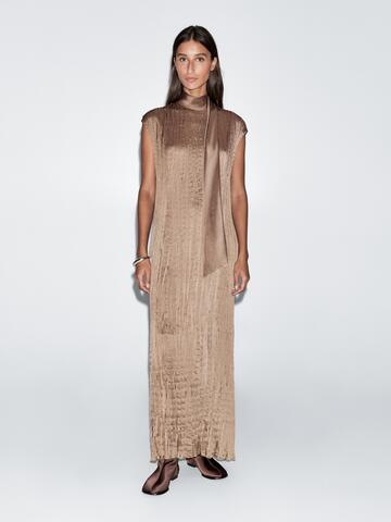 Massimo Dutti Длинное платье на шнуровке с воротником, коричневый