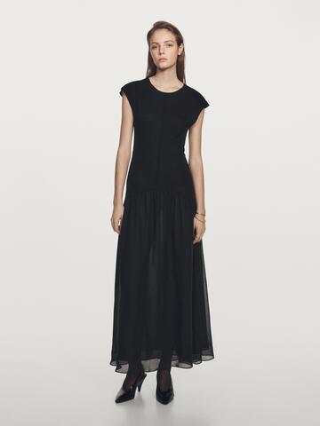 Massimo Dutti Длинное платье с контрастной отделкой, черный