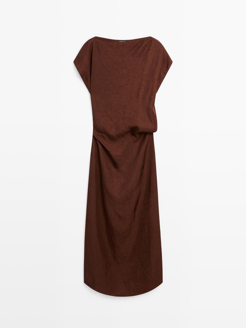 Massimo Dutti Длинное платье со сборкой на поясе, бордо