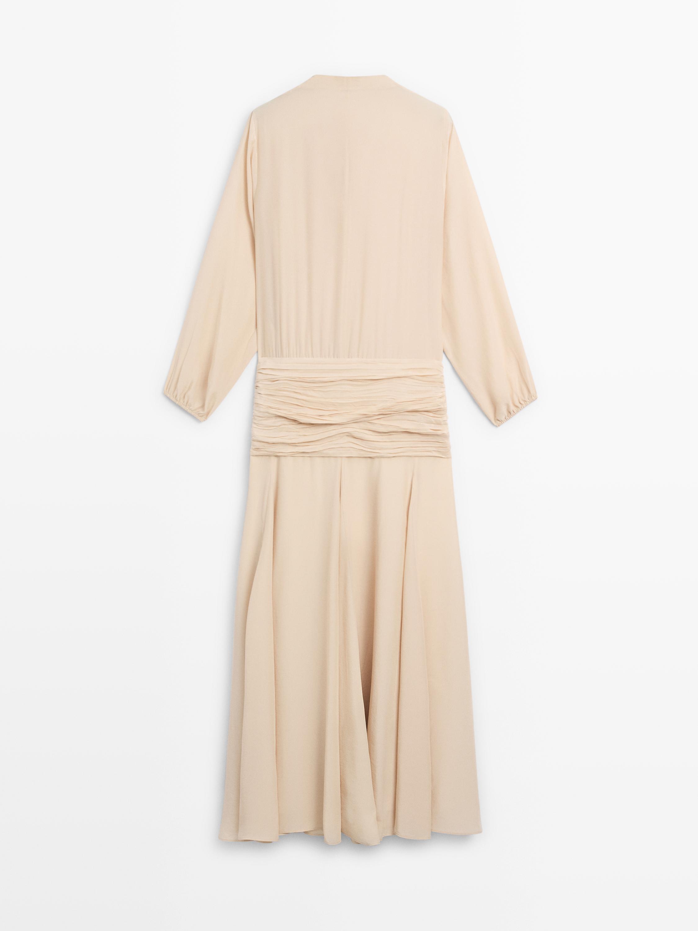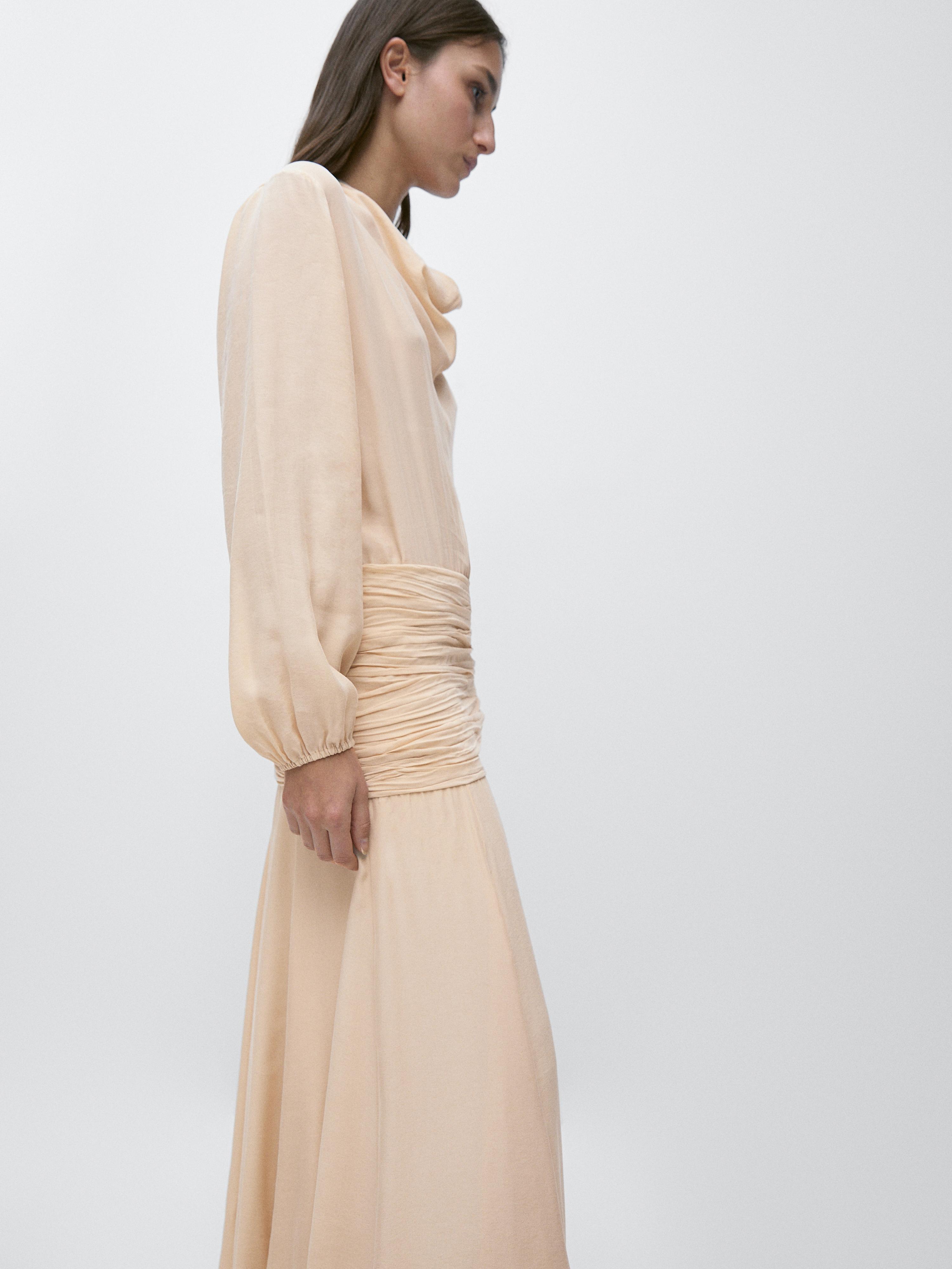 Massimo Dutti Длинное струящееся платье с оборками, цвет шампанского