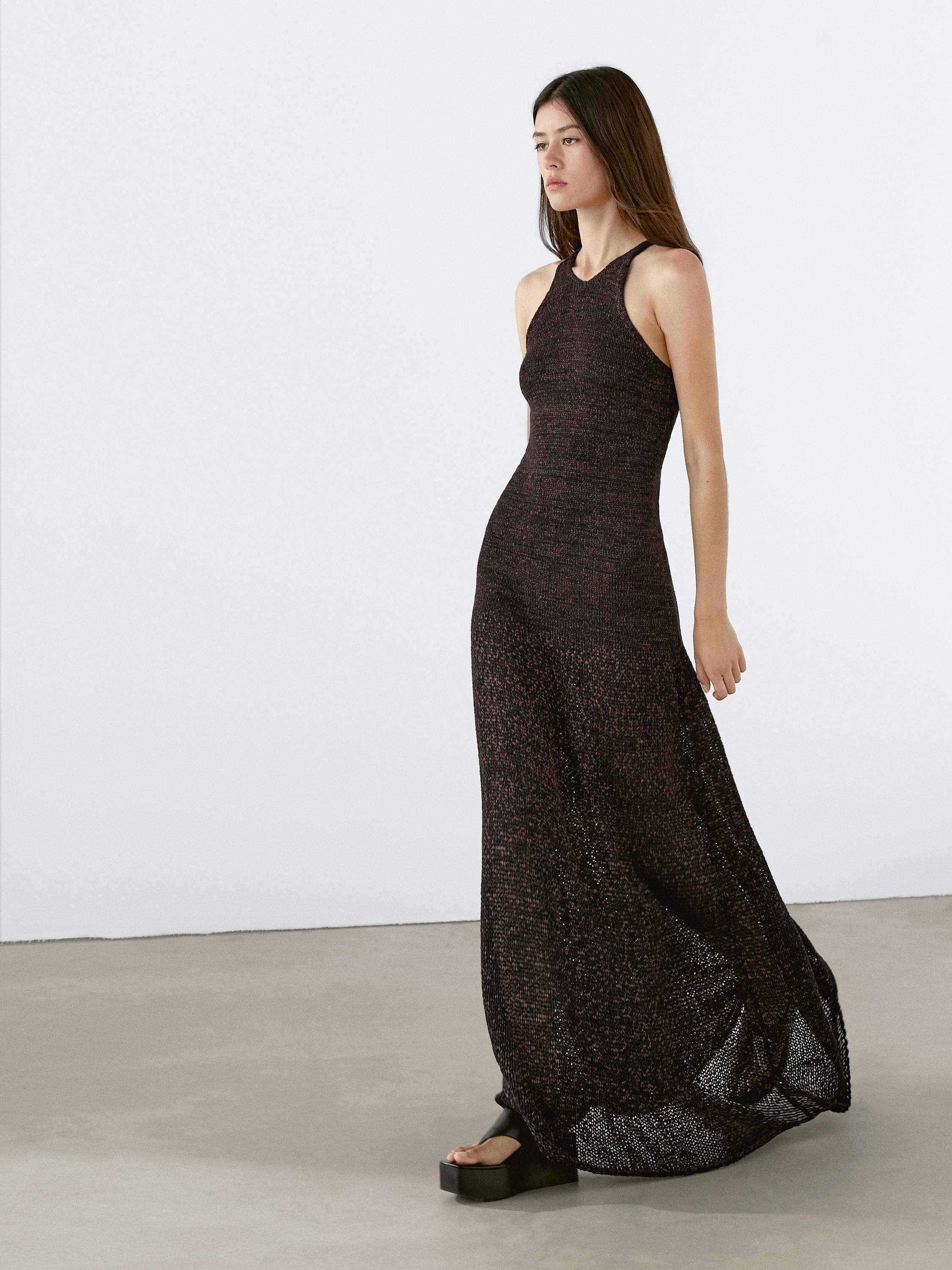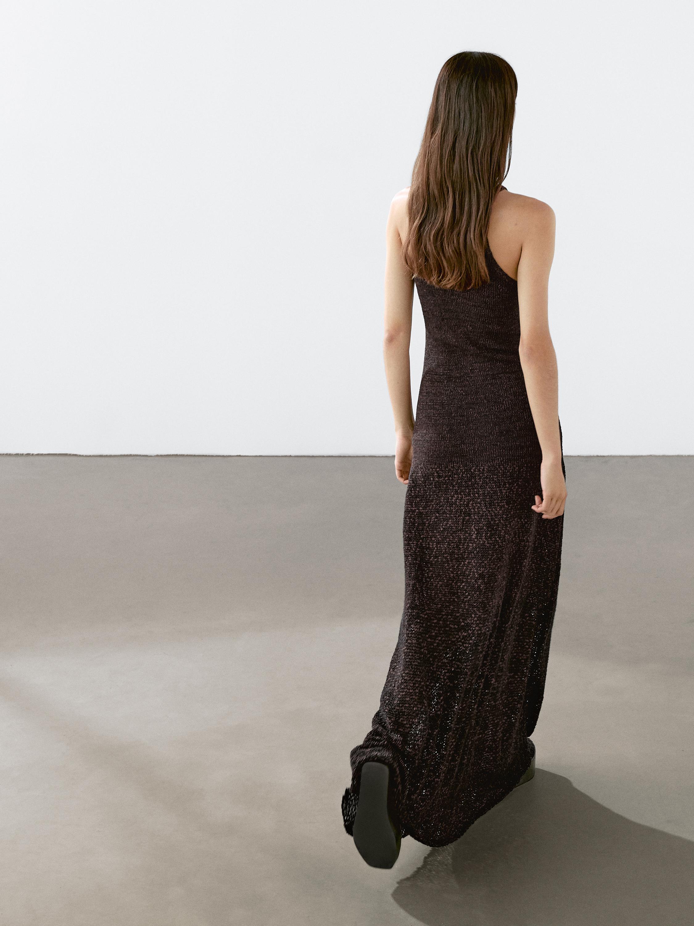 Massimo Dutti Длинное вязаное платье из смесовой хлопковой ткани, коричневый