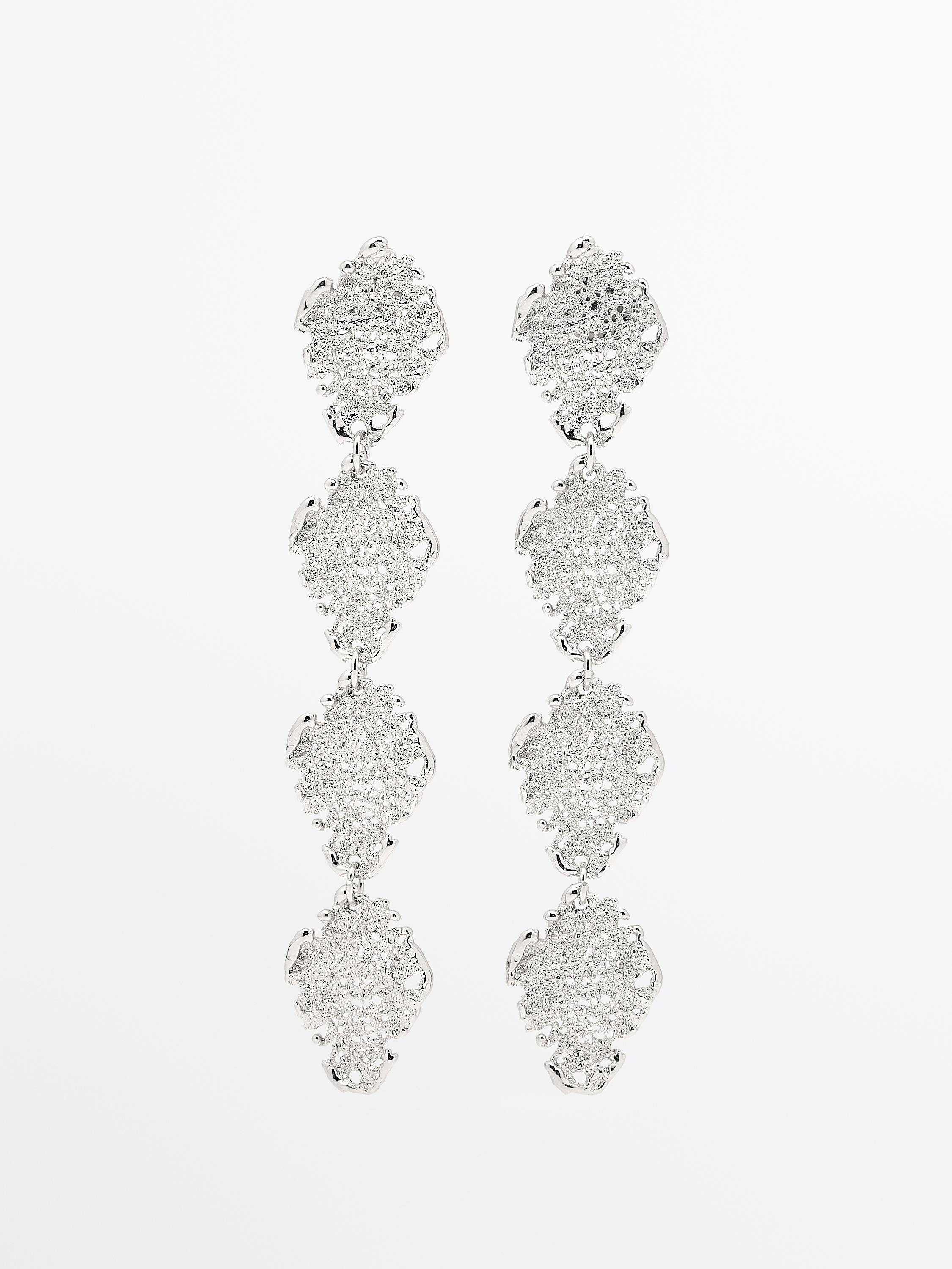 Massimo Dutti Длинные кружевные серьги, серебряный