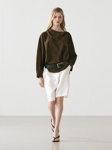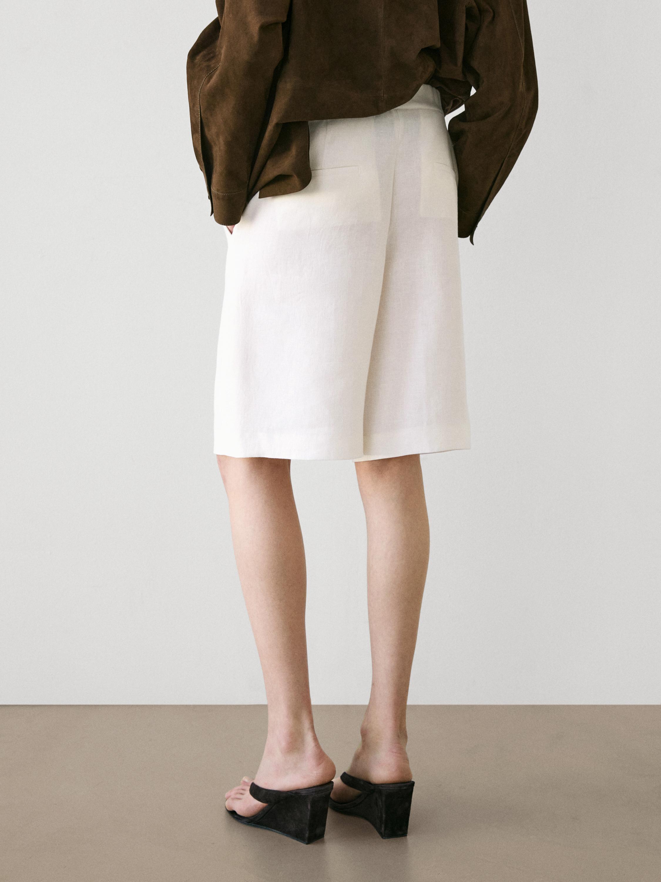Massimo Dutti Длинные льняные бермуды, экрю
