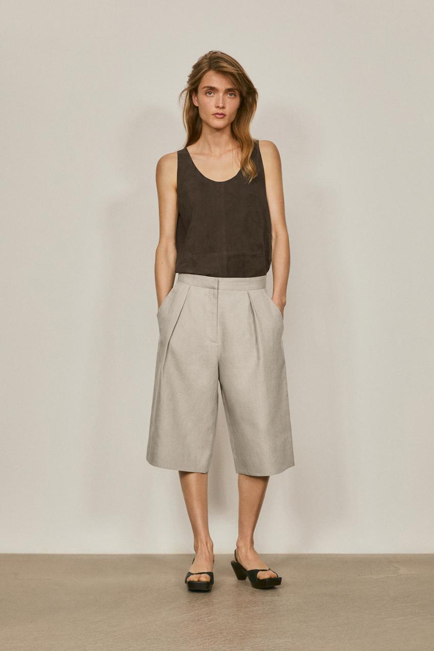 Massimo Dutti Длинные льняные шорты-бермуды Pens Detailed - Limited Edition, серый