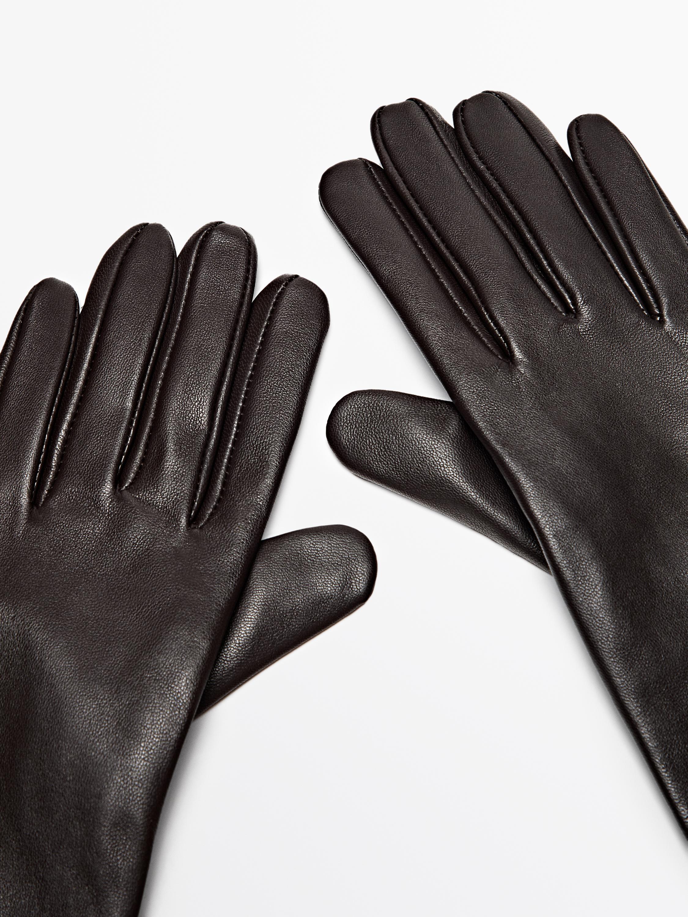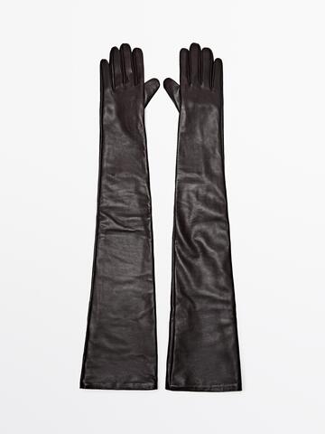 Massimo Dutti Длинные перчатки из кожи наппа - Limited Edition, коричневый