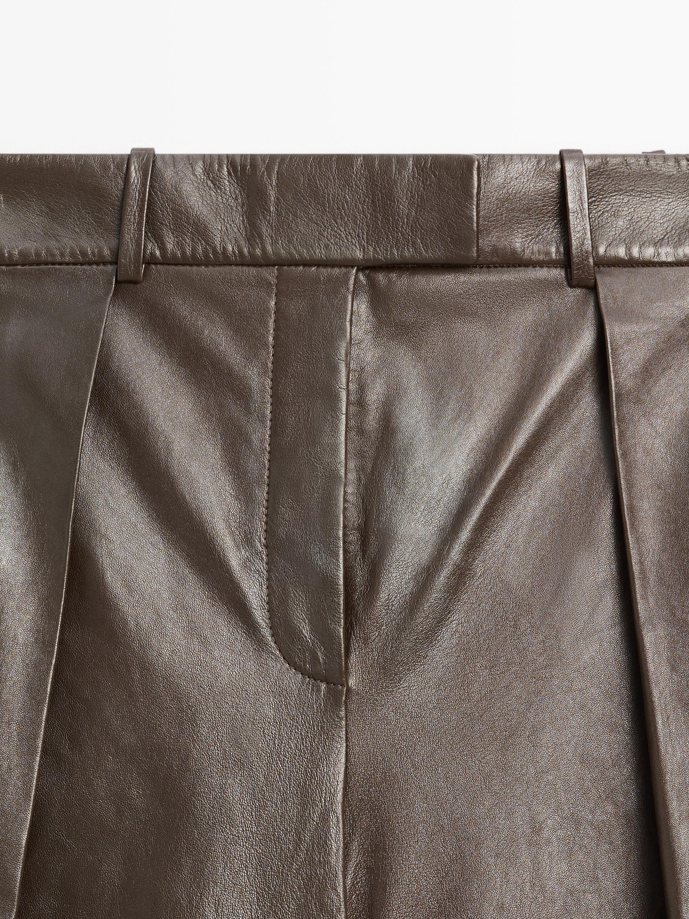 Massimo Dutti Длинные шорты-бермуды из кожи наппа с вытачками — STUDIO, темно-серый