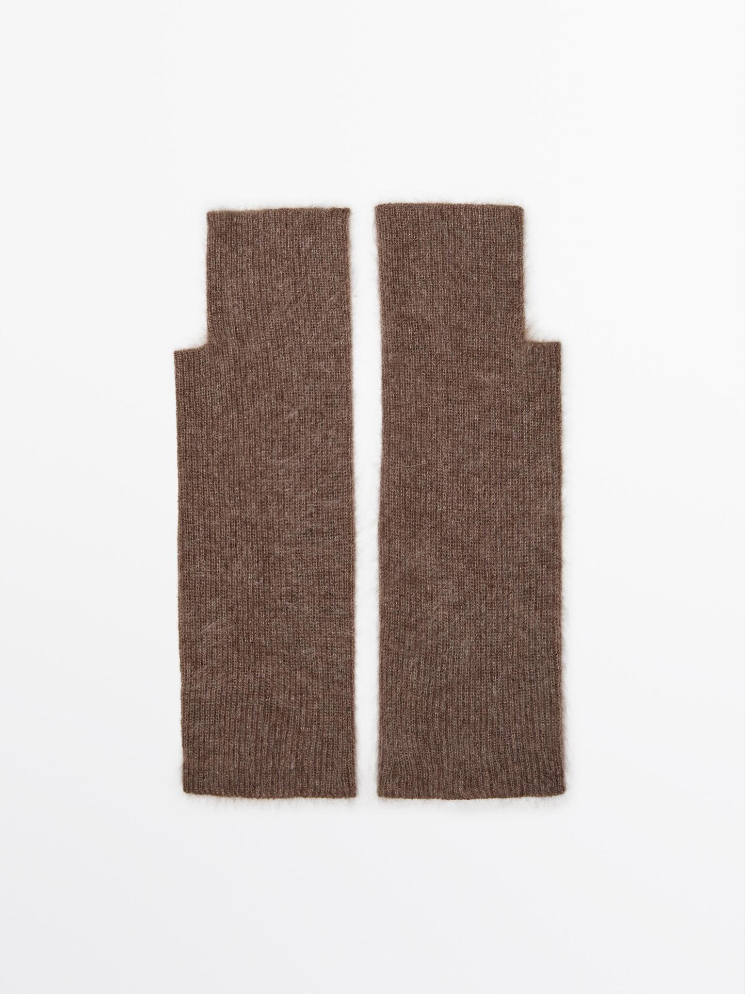 Massimo Dutti Длинные трикотажные варежки из 100% кашемира, песочный