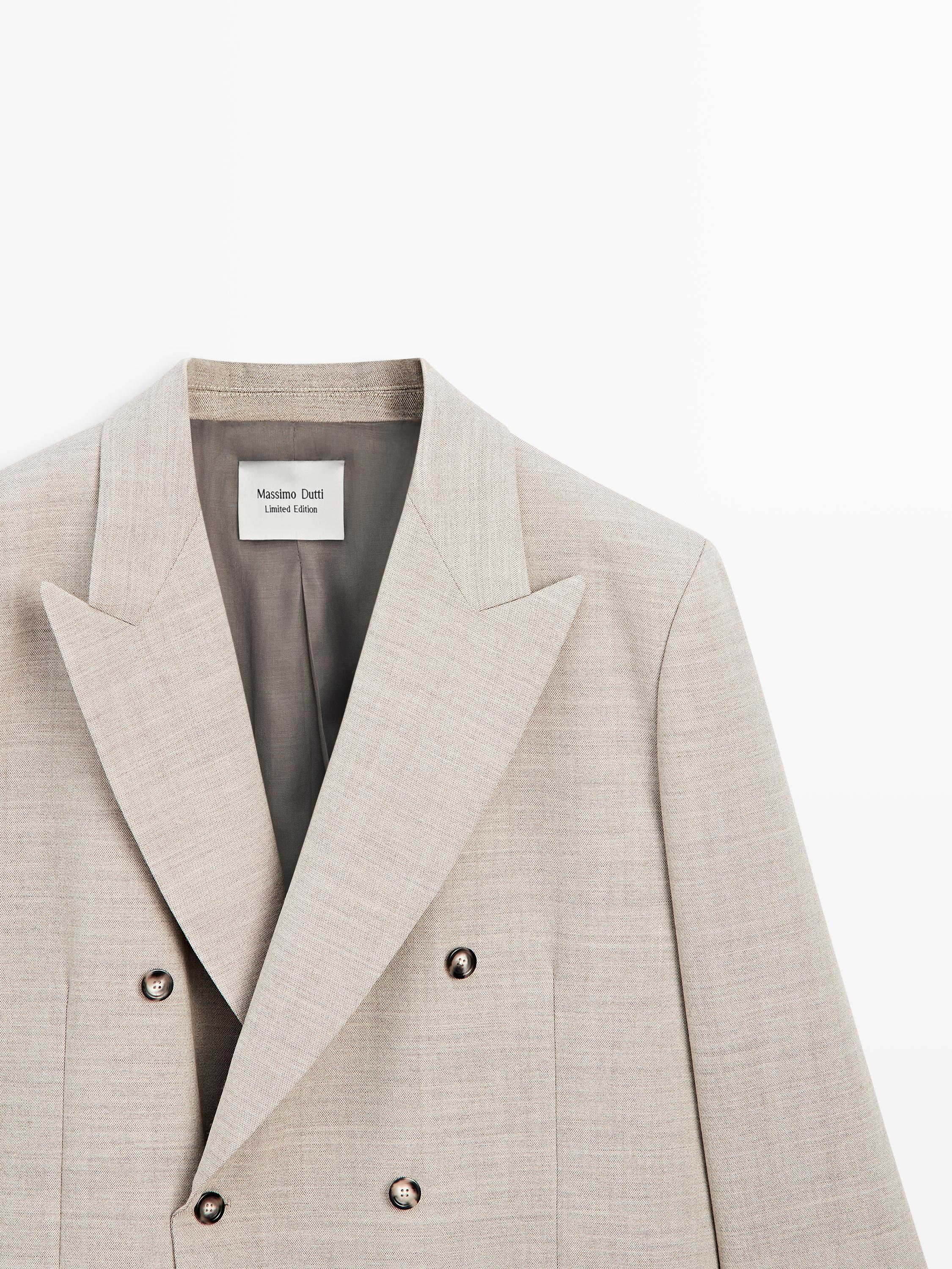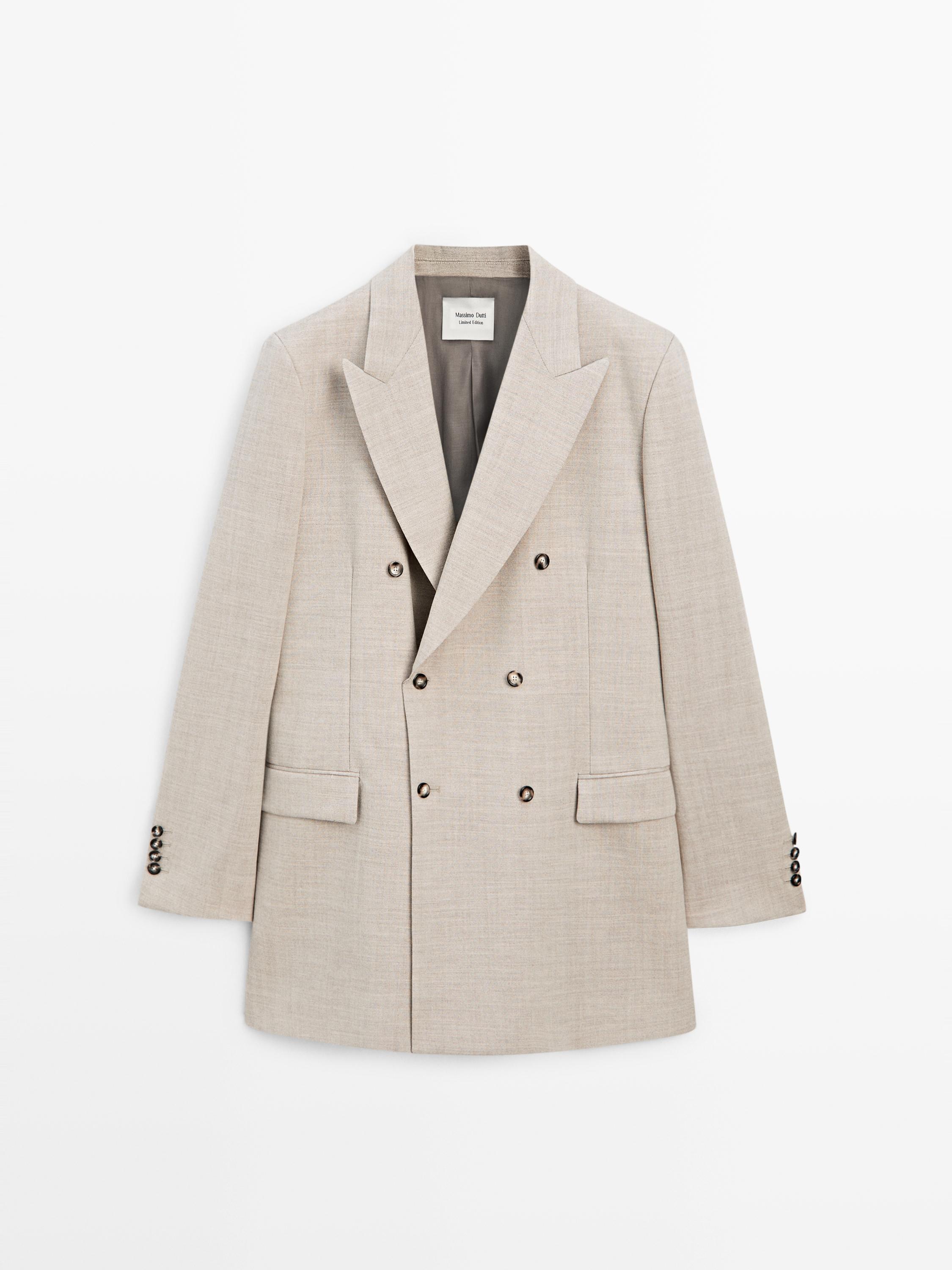 Massimo Dutti Длинный двубортный пиджак из 100% шерсти - Limited Edition, серый