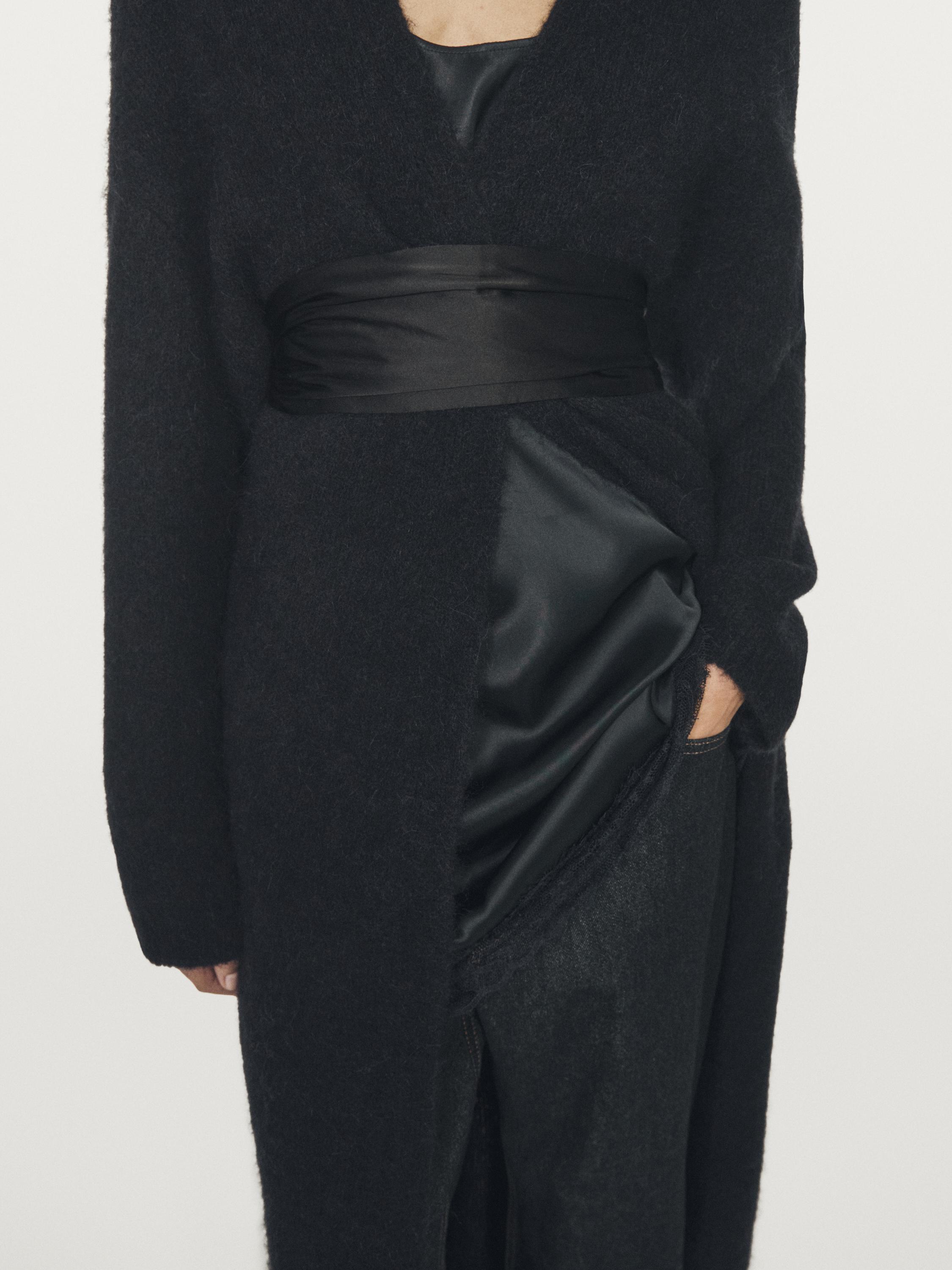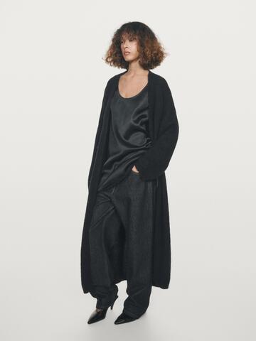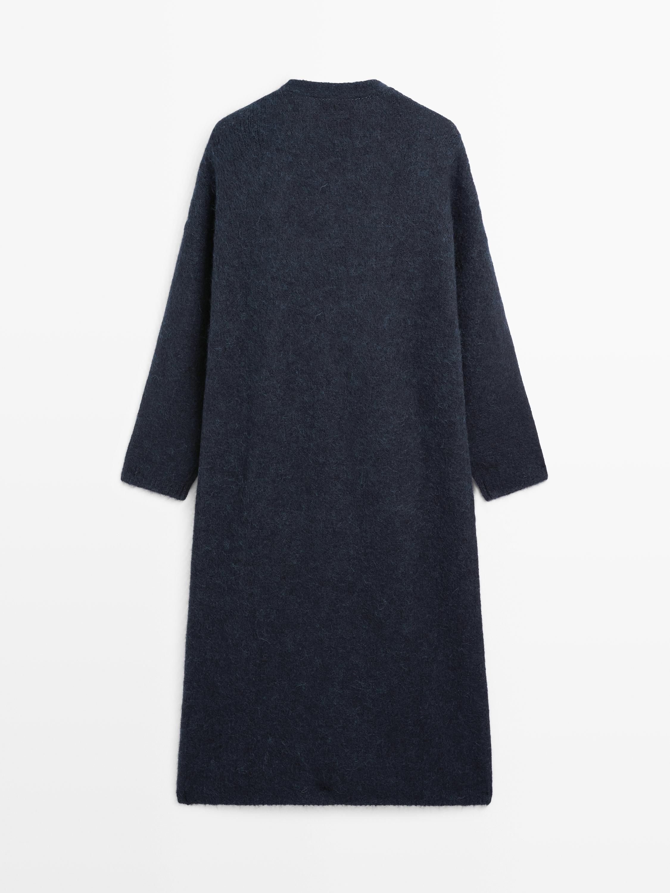 Massimo Dutti Длинный кардиган из ворсованной смесовой альпаки, темно-синий